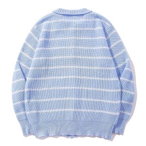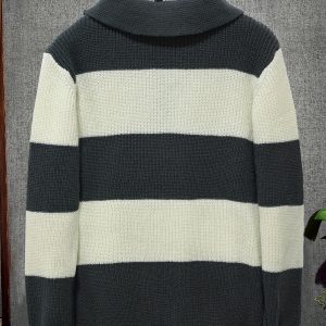 Casual Knit Pullover – Men’s Preppy Striped Zip-Up Sweater – Oversized Collar – Contrast Color Block Design – College Style Couple’s Top for Fallu002FWinter