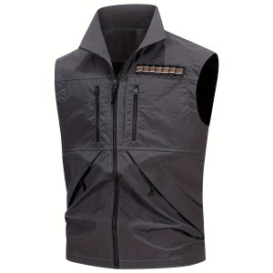 Men’S Casual Cargo Vest with Multiple Pockets – Sleeveless, Zip-Up, Non-Stretch Fabric for Spring & Fall, Ideal for Photography and Work, Photography Vest|Casual Style|Polyester Vest