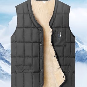 Men’S Autumnu002FWinter Fleece Vest | Comfortable and Warm, Versatile V-Neck Design with Practical Pockets, Fiber