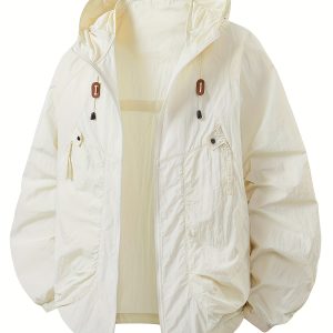 Men’s Springu002FSummer Jacket, Outdoor Casual Hooded Zip-Up Loose-Fit Hiking Jacket with Large Pockets for Camping and Versatile Wear