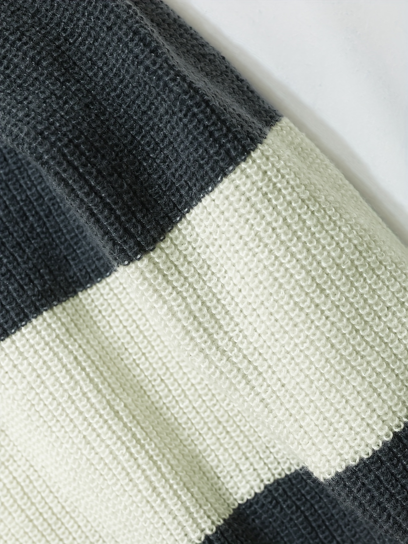 - Casual Knit Pullover – Men’s Preppy Striped Zip-Up Sweater – Oversized Collar – Contrast Color Block Design – College Style Couple’s Top for Fallu002FWinter