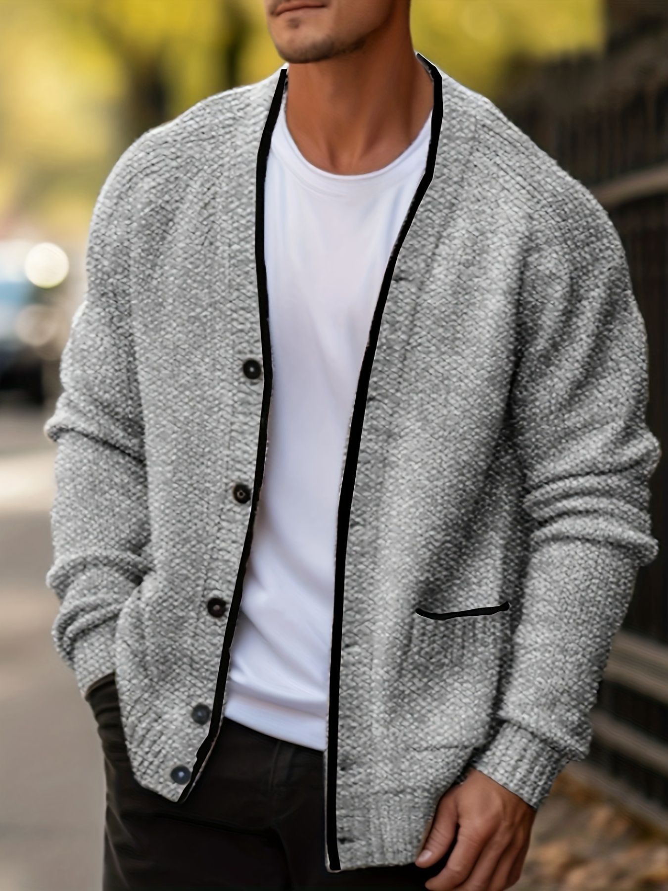 2024 Spring New Trendy Men’s Sweater, Round Neck Loose Fit Student Pullover Drop Shoulder Knit Sweater, Color Block Gray Personality Top