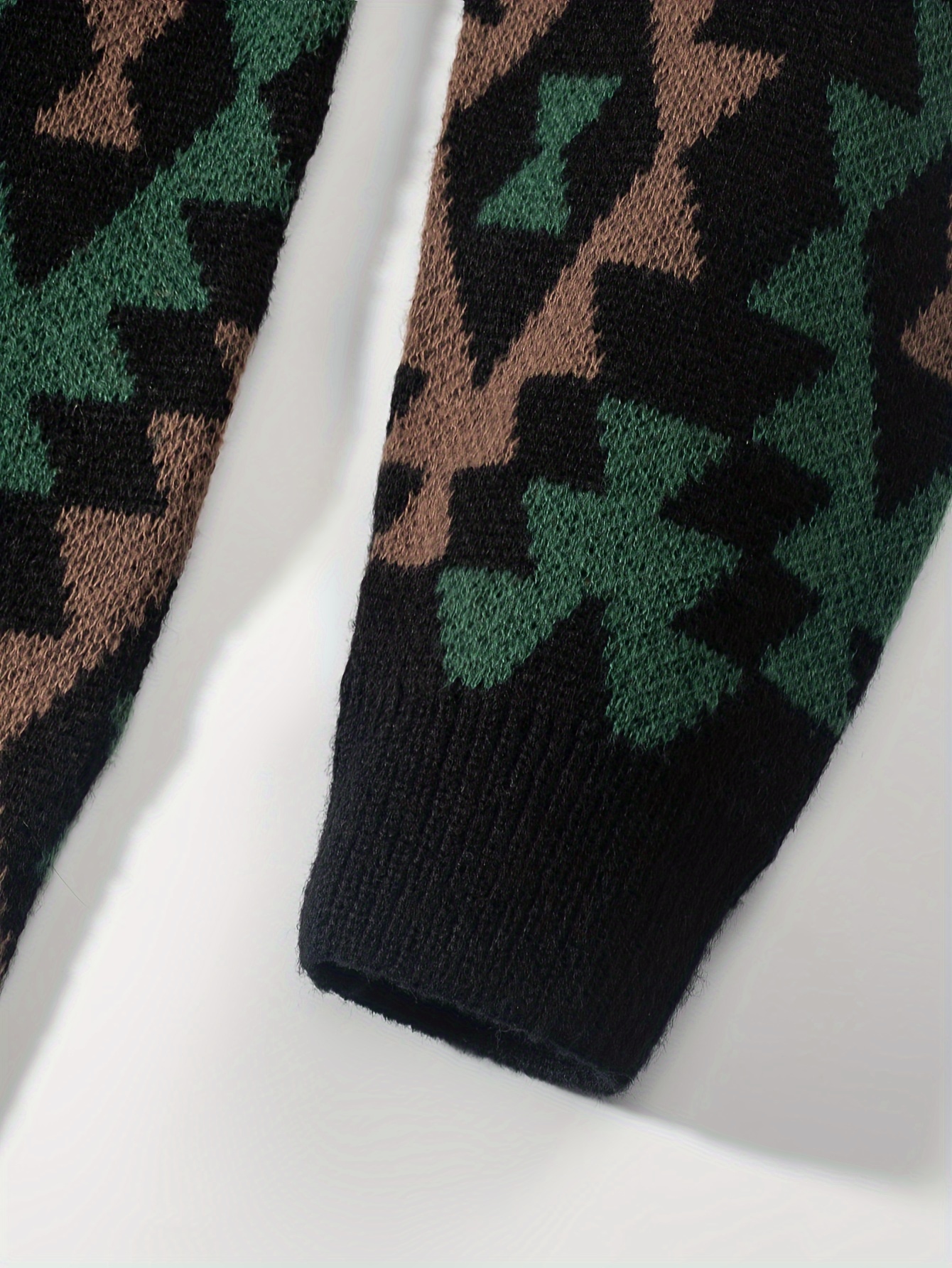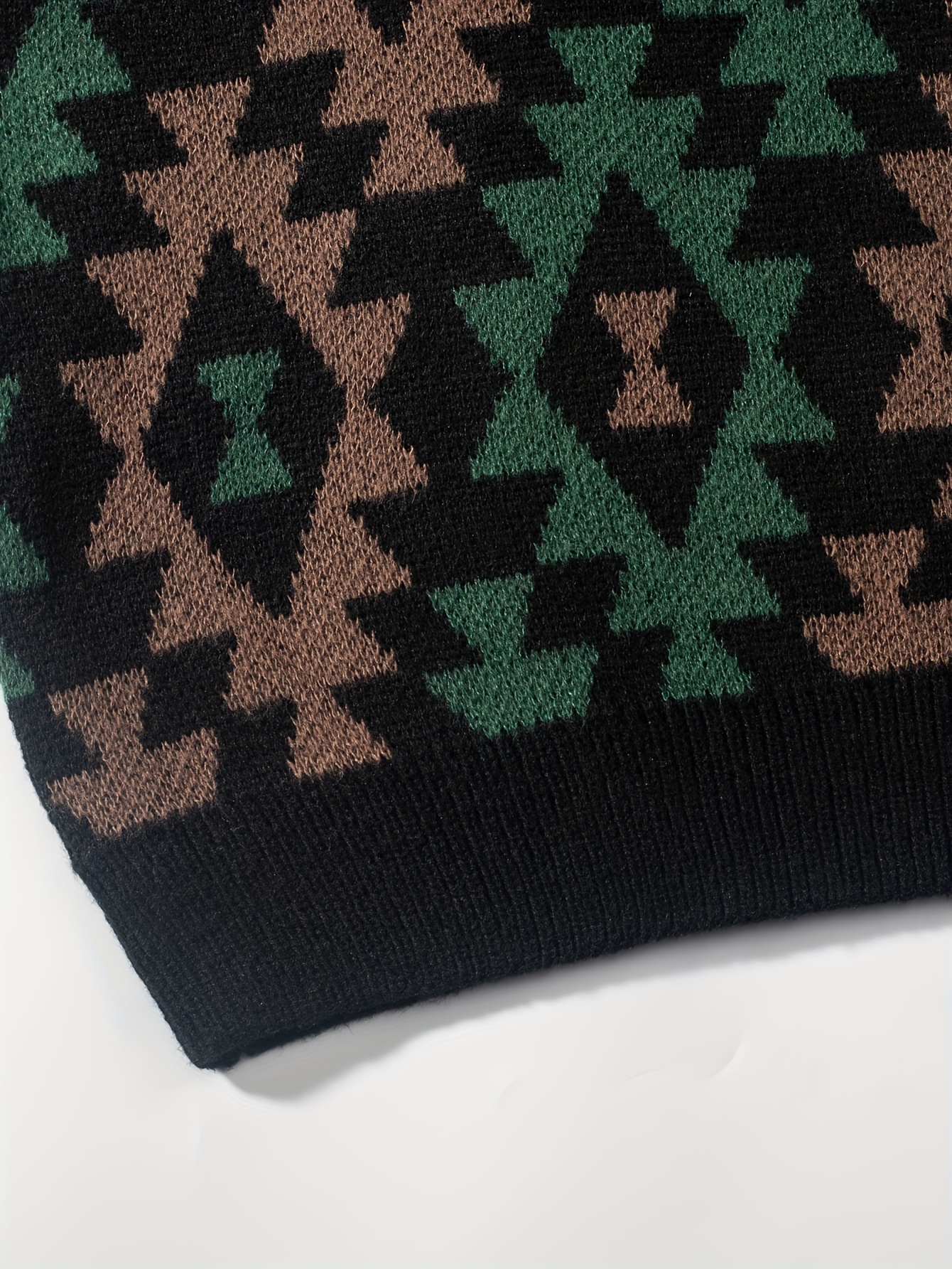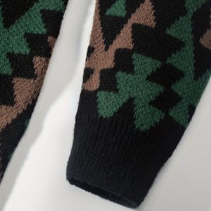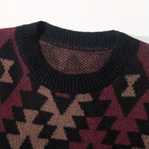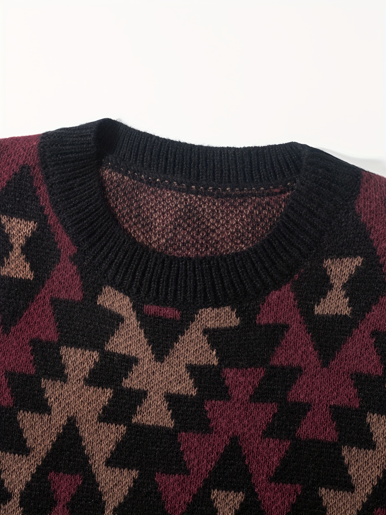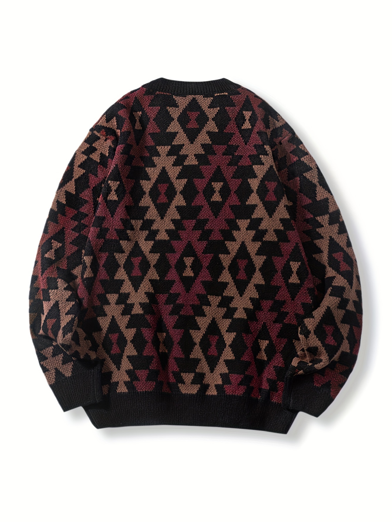 Geometric Pattern Design Men’s Casual Crew Neck Long Sleeve Knitted Pullover Sweater For Outdoor Casual, Autumn And Winter