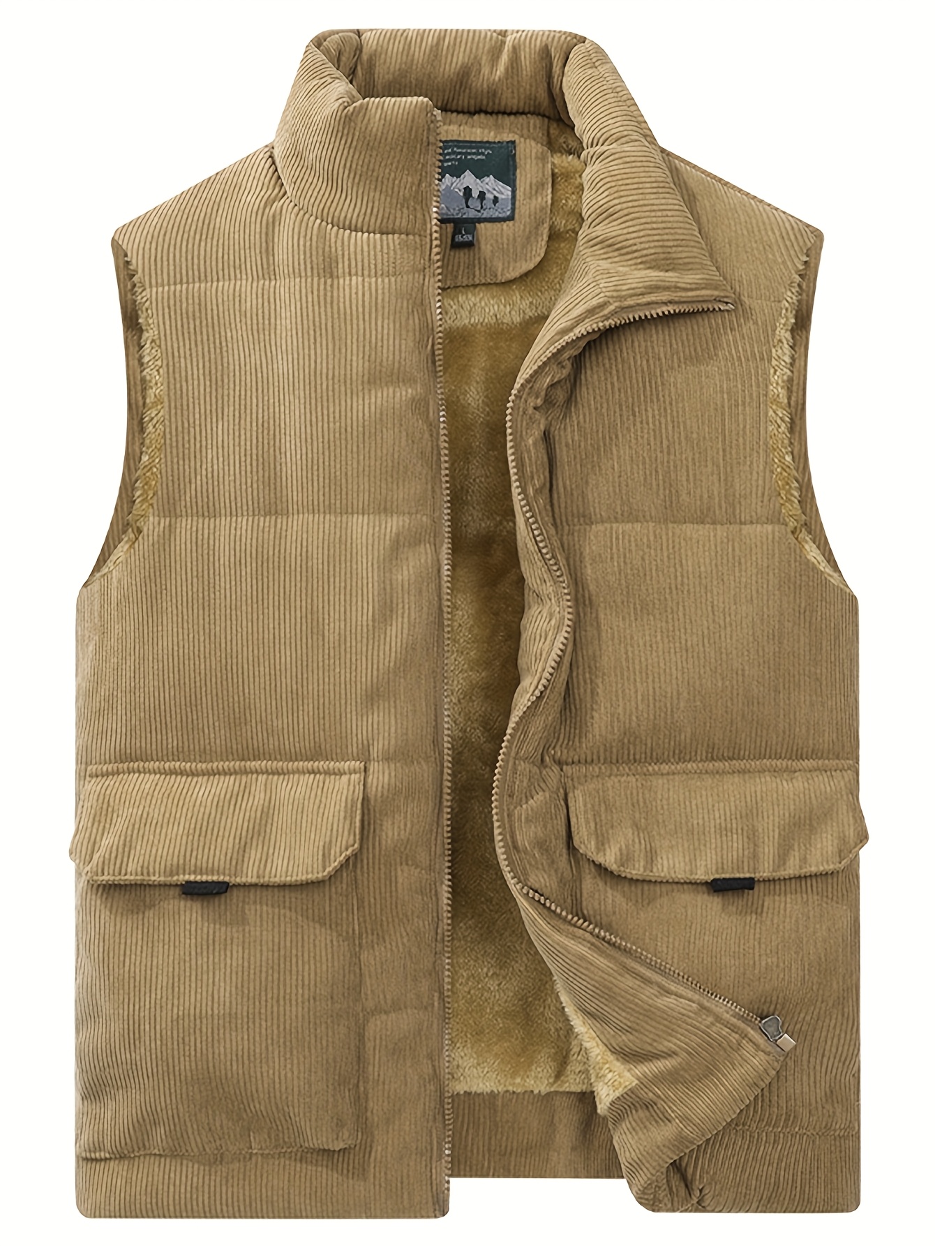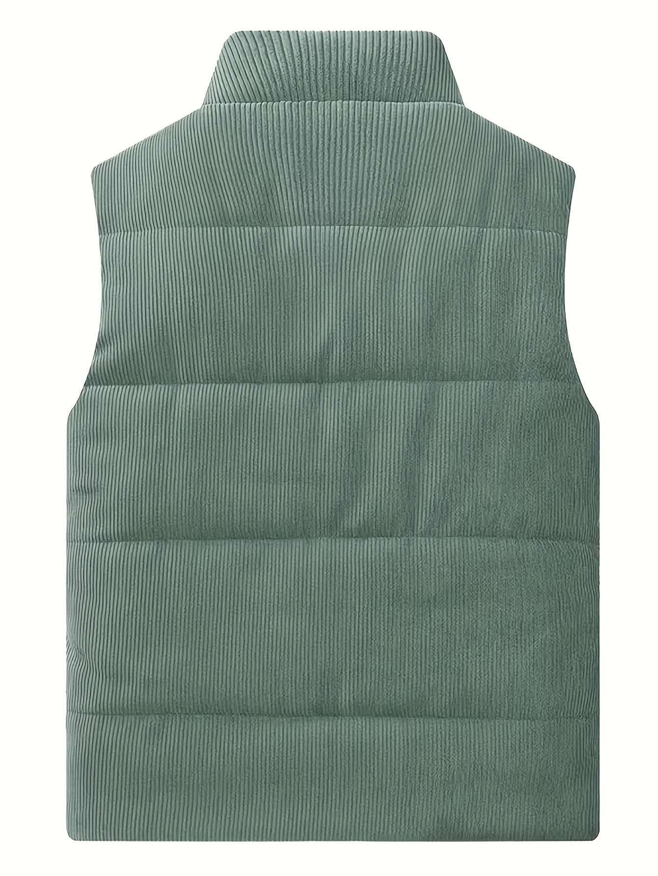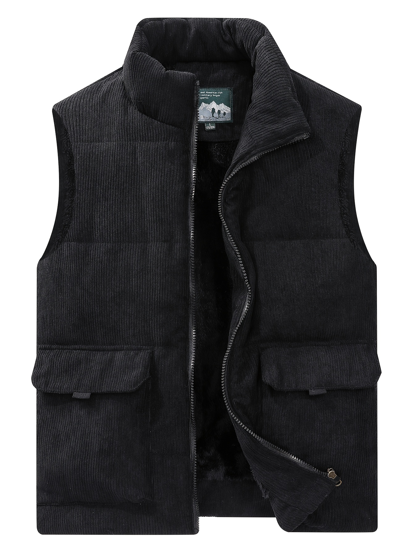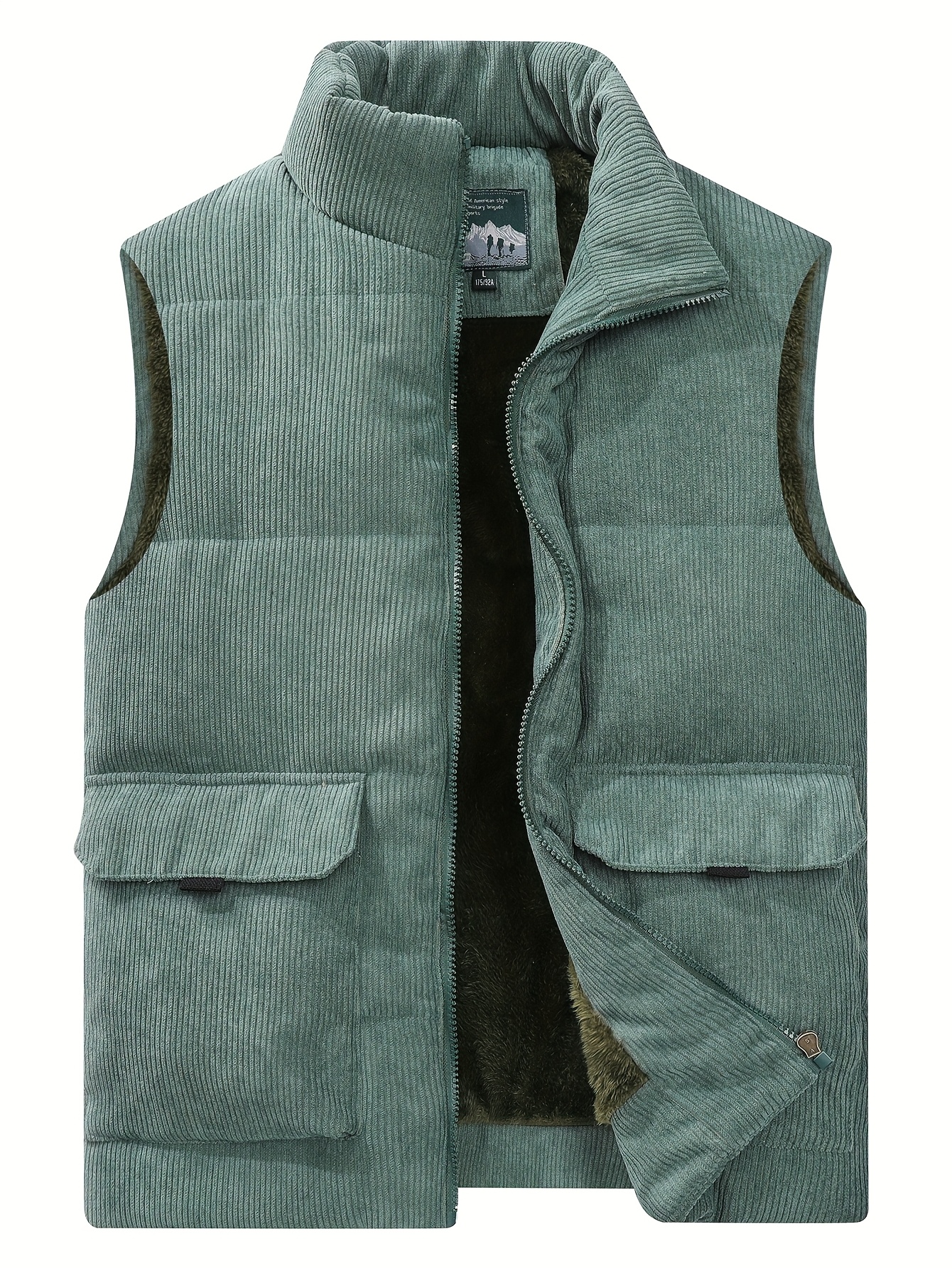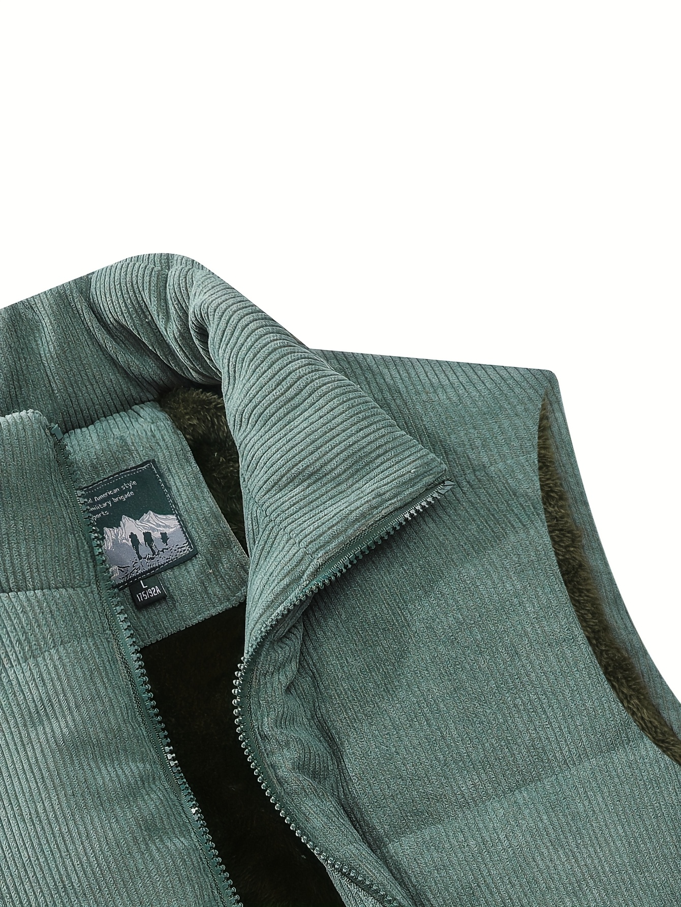 Green Fleece Vest Warm Green Fleece-Lined Men’s Stand Collar Vest | Multiple Pockets, Casual Winter Jacket for Fall and Winter | Polyester Filler, Thick