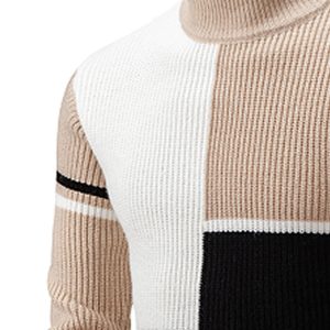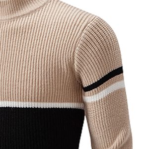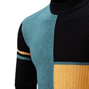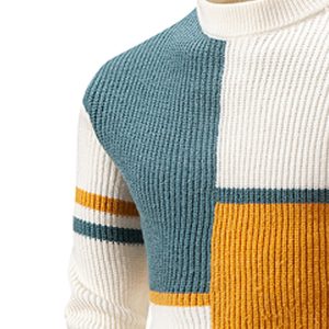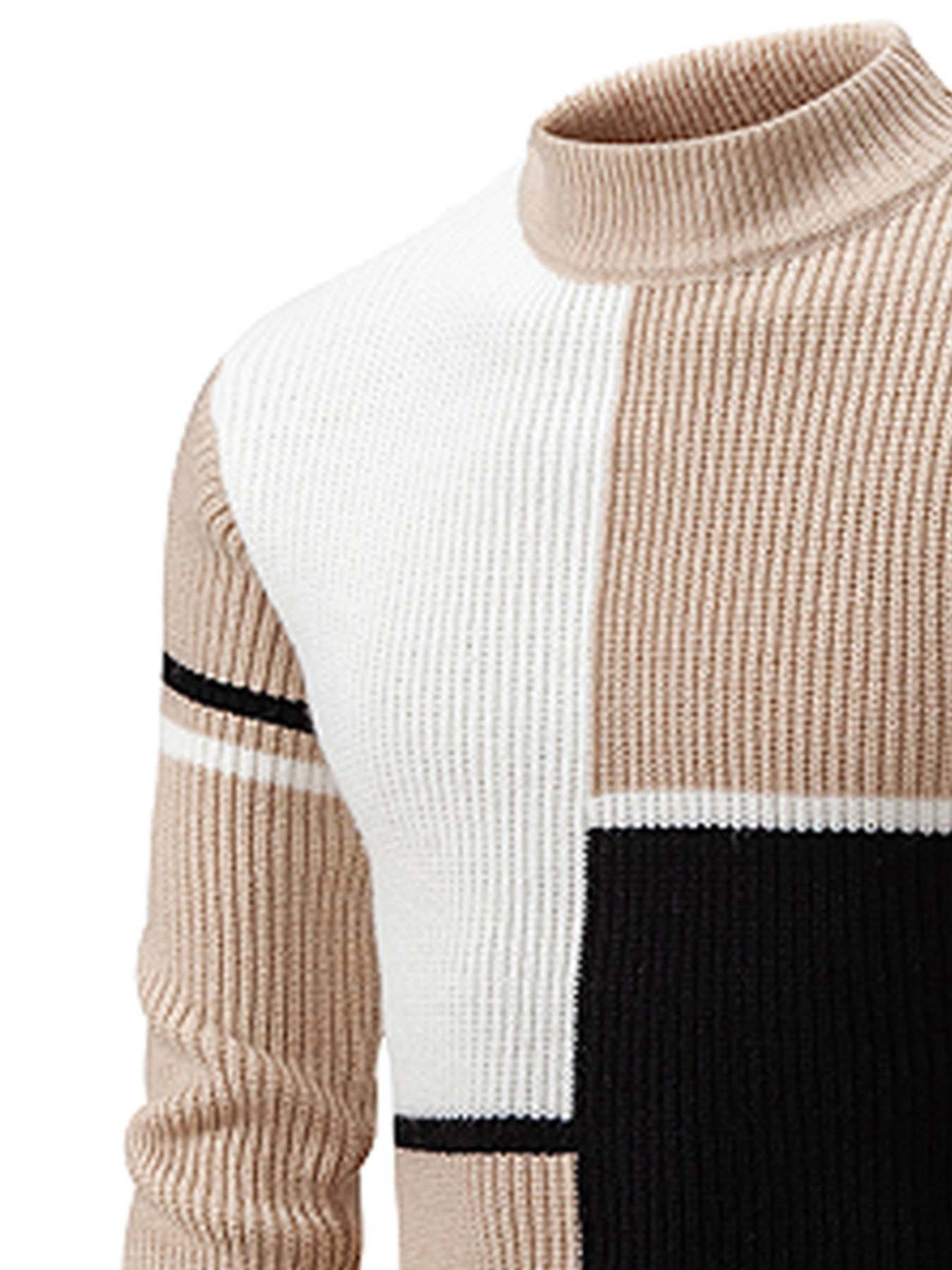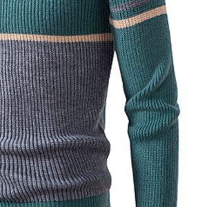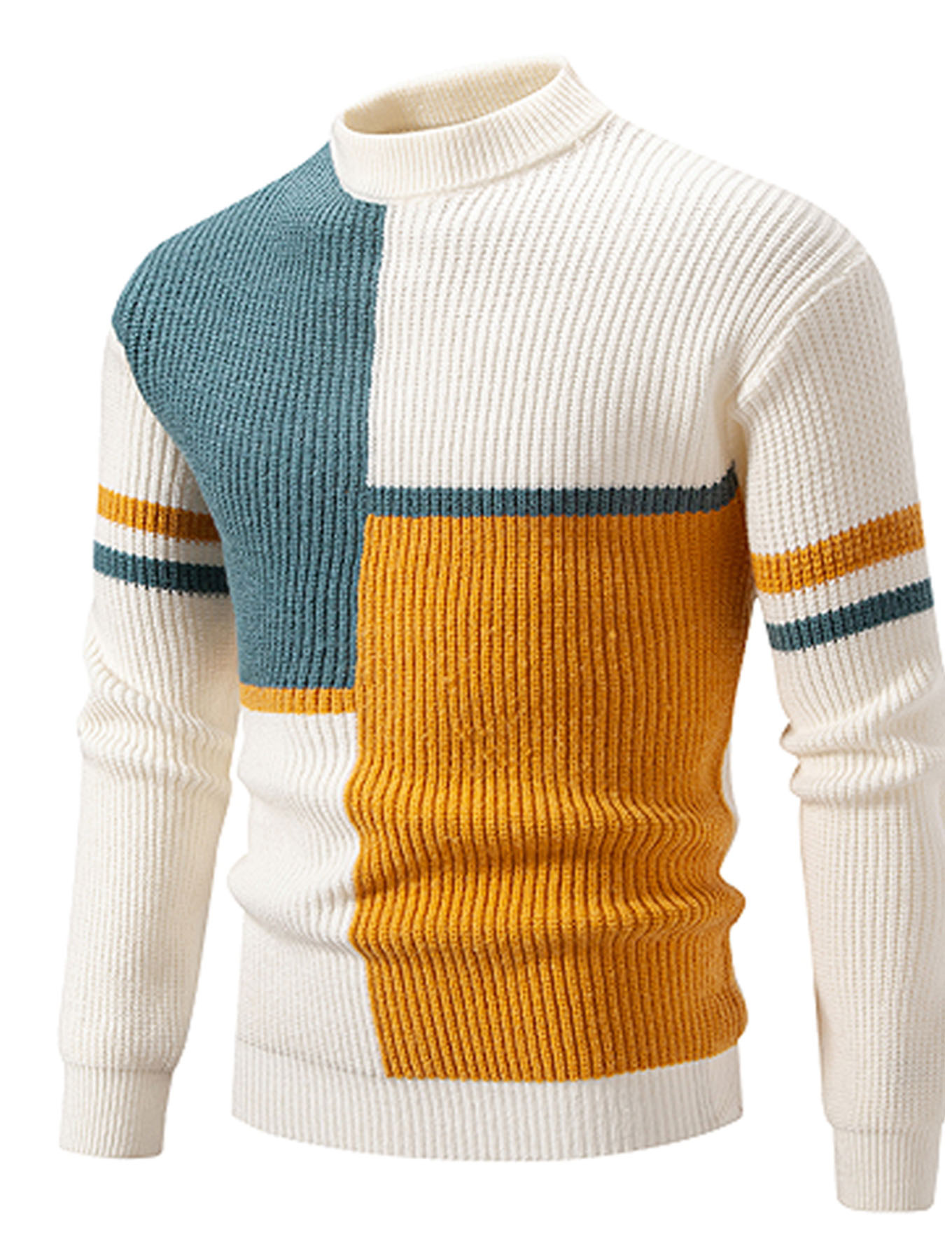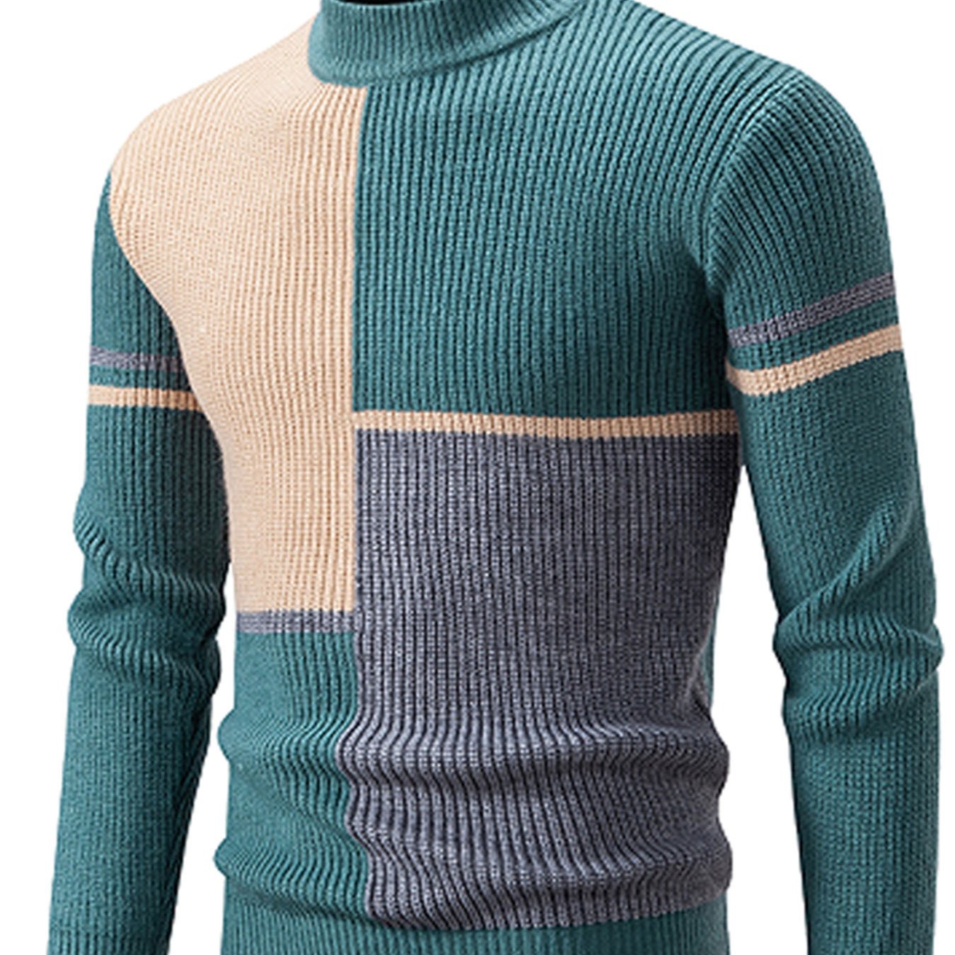 Men’S Autumn Winter New Round Neck Sweater | Color Block Design, Casual Versatile Top, Crew Neck, Acrylic Fabric, Slight Stretch