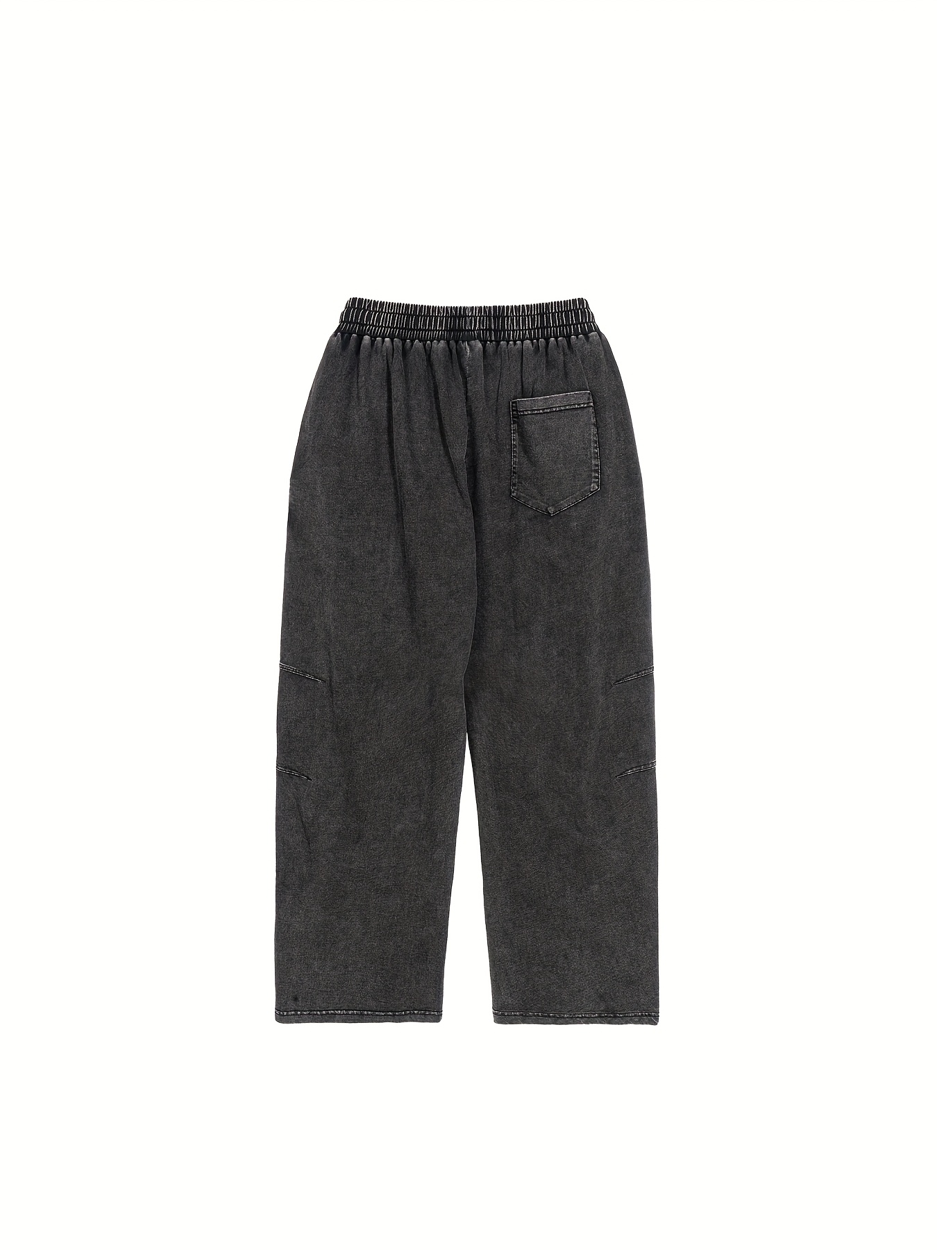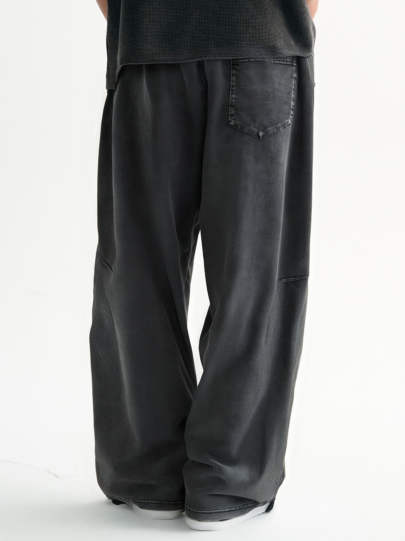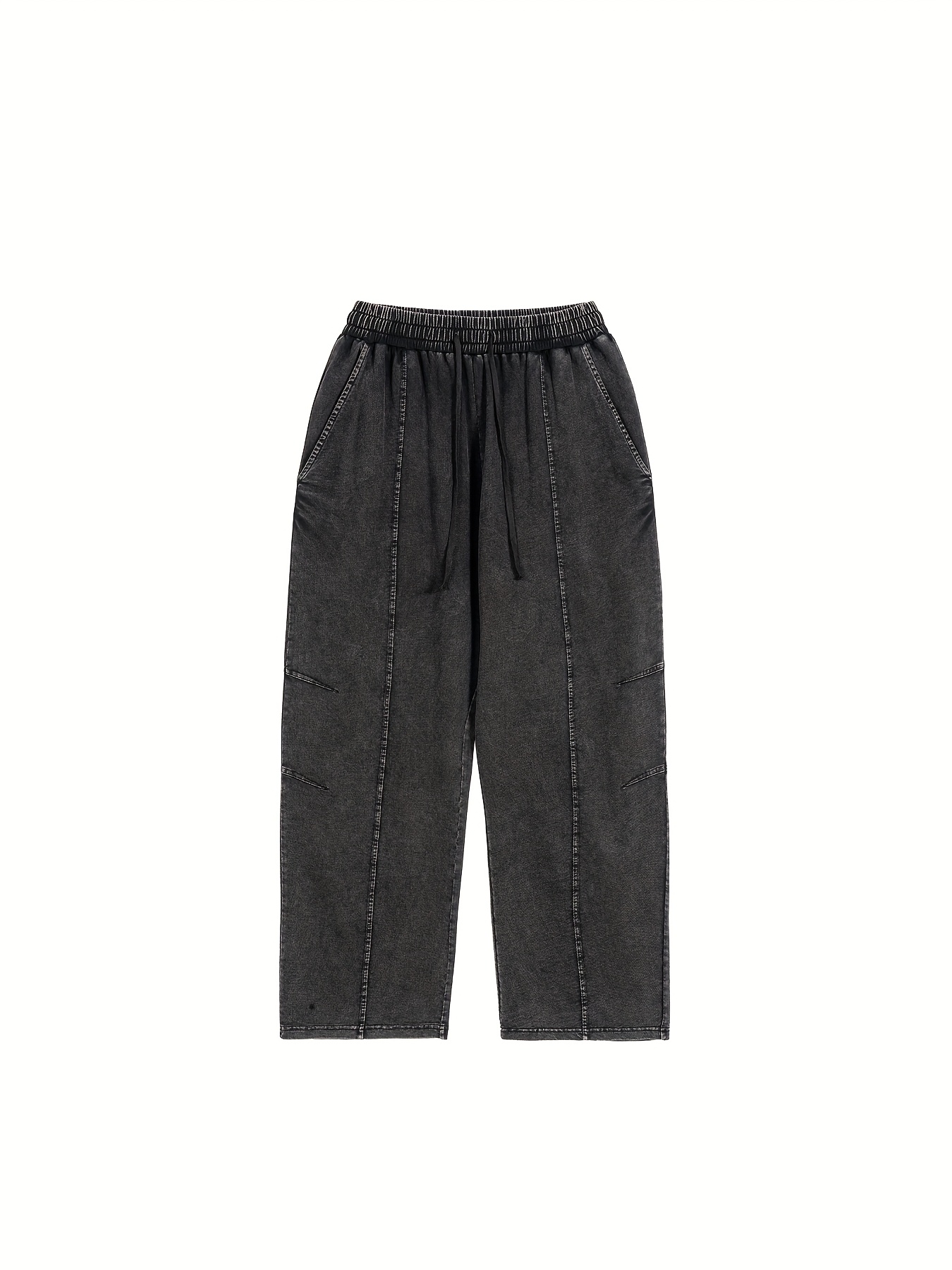 Men’S Baggy Fit Curved Sweatpants Made from 100%, Perfect for Autumn Outdoor Casual Wear. These Long Trousers Feature a Vintage Acid-Washed Look And Sewn Patchwork, Showcasing a Unique Hip-Hop Streetwear Design with a Drawstring