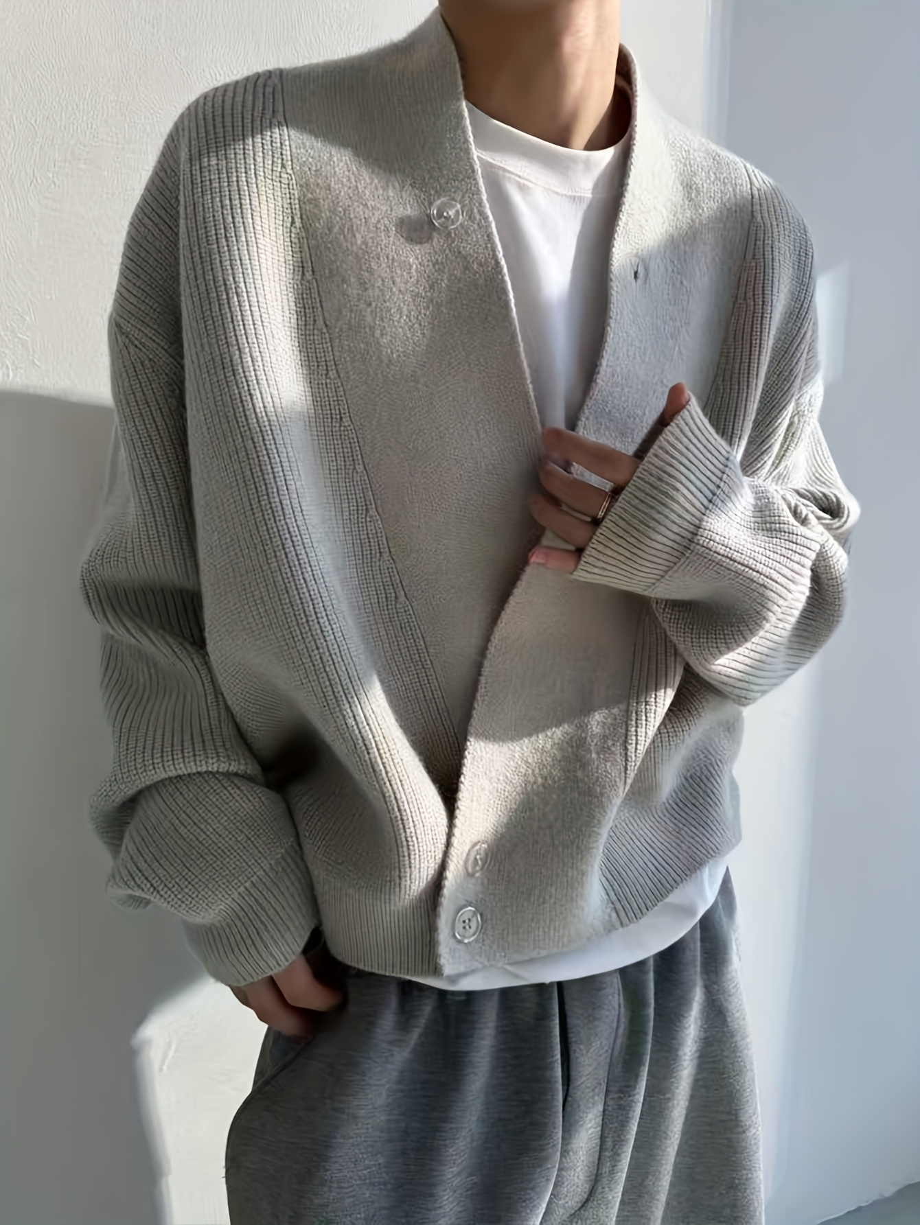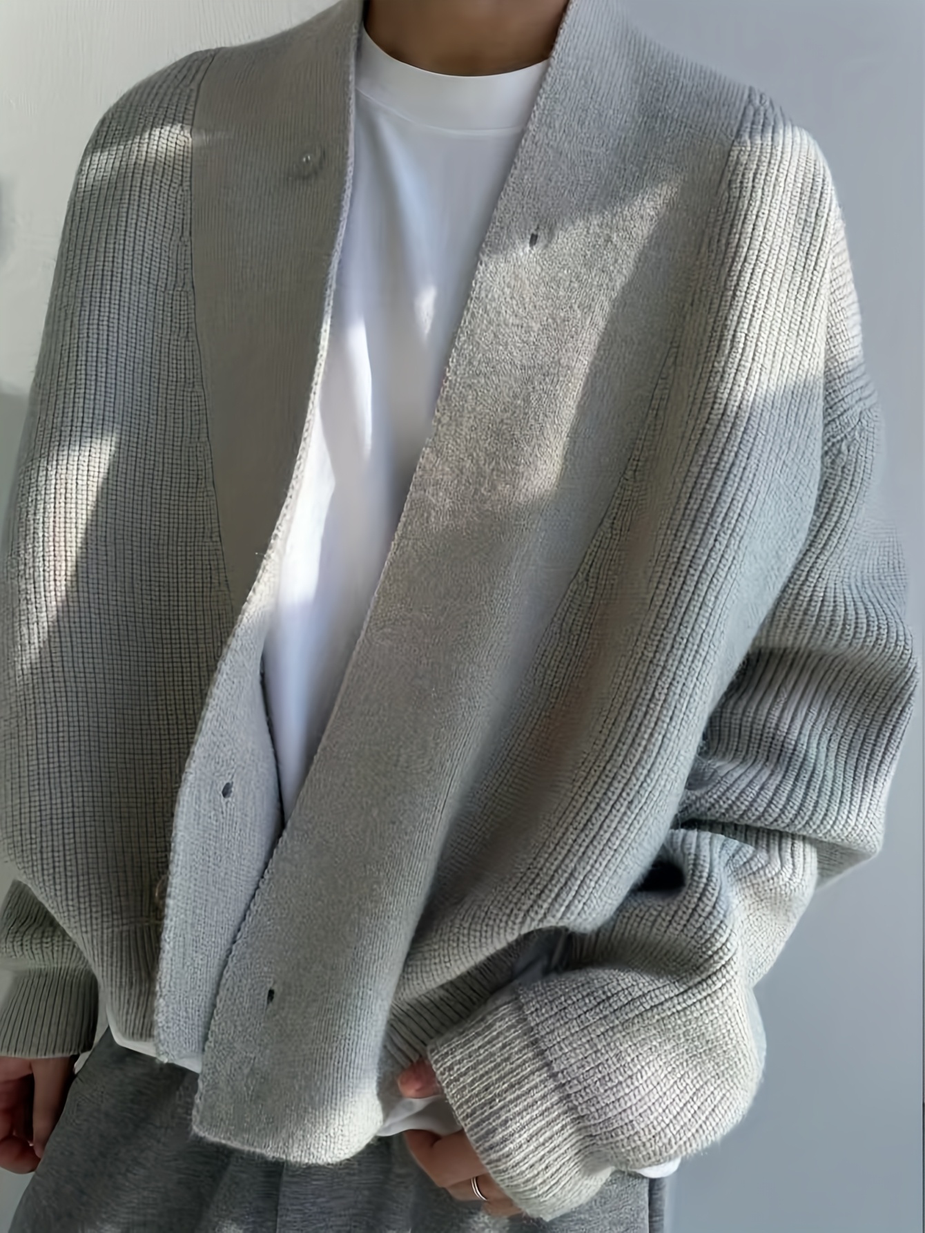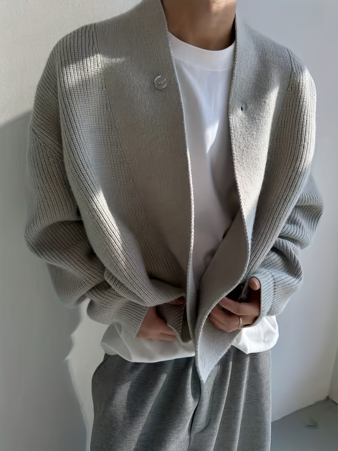 Men’S Cardigan Sweater in a Vintage Design, Featuring a Luxurious And Relaxed Knit Style in Light Gray
