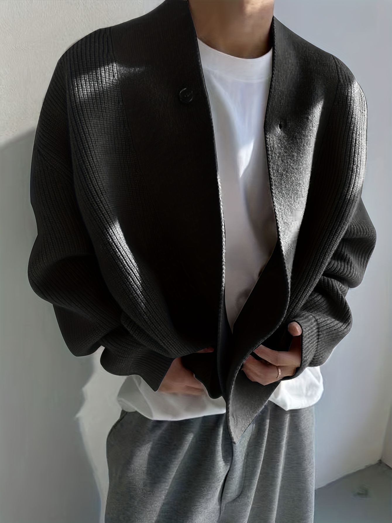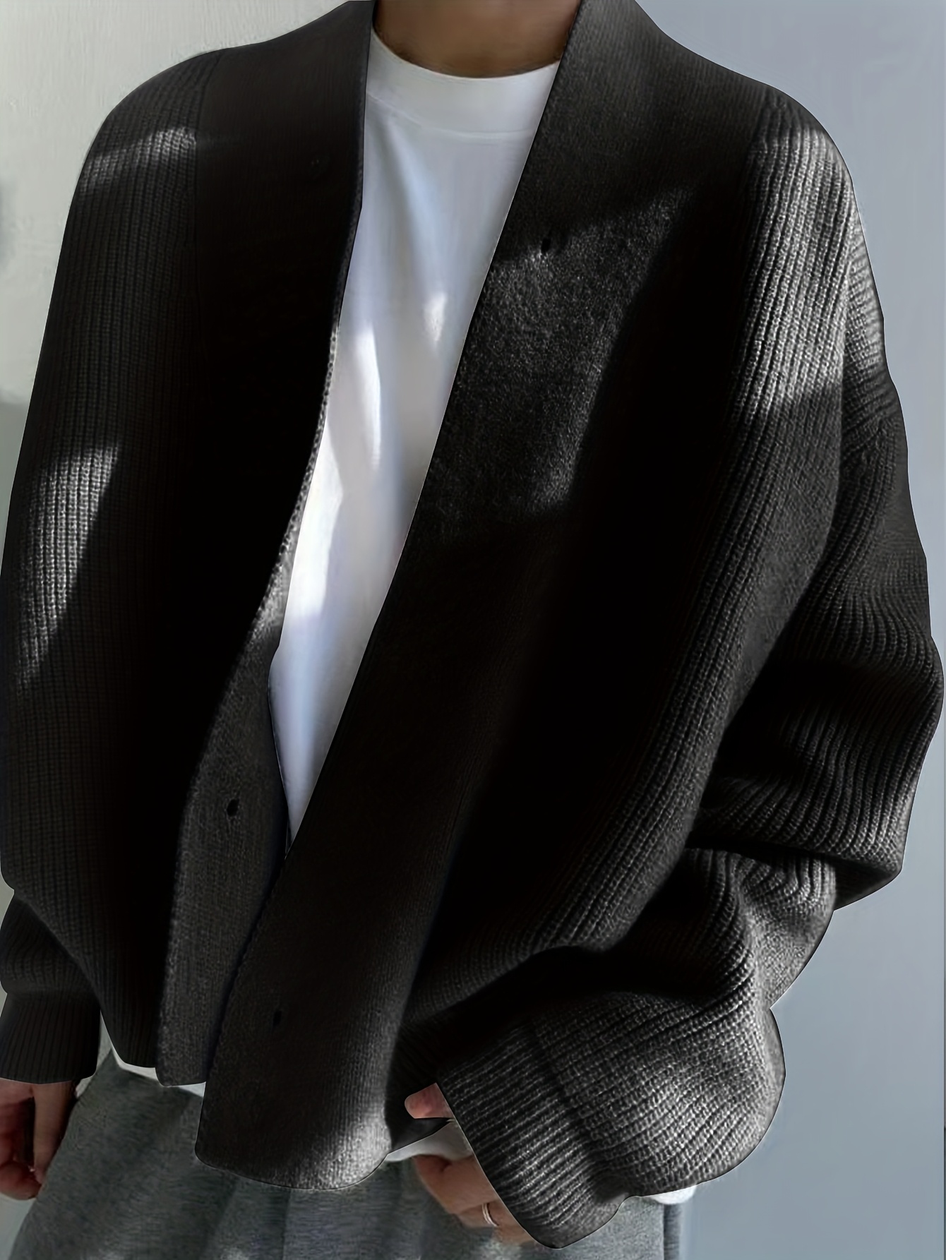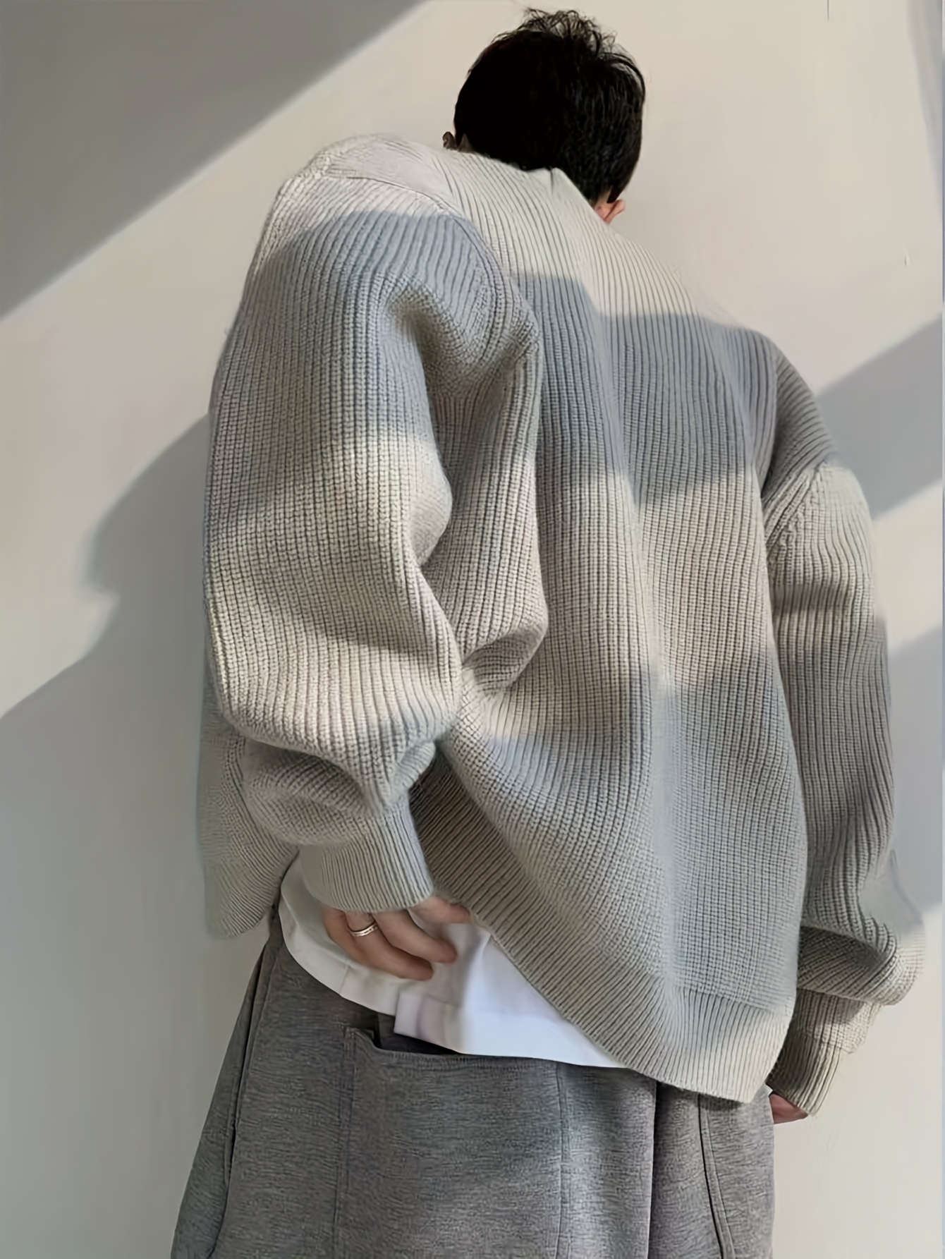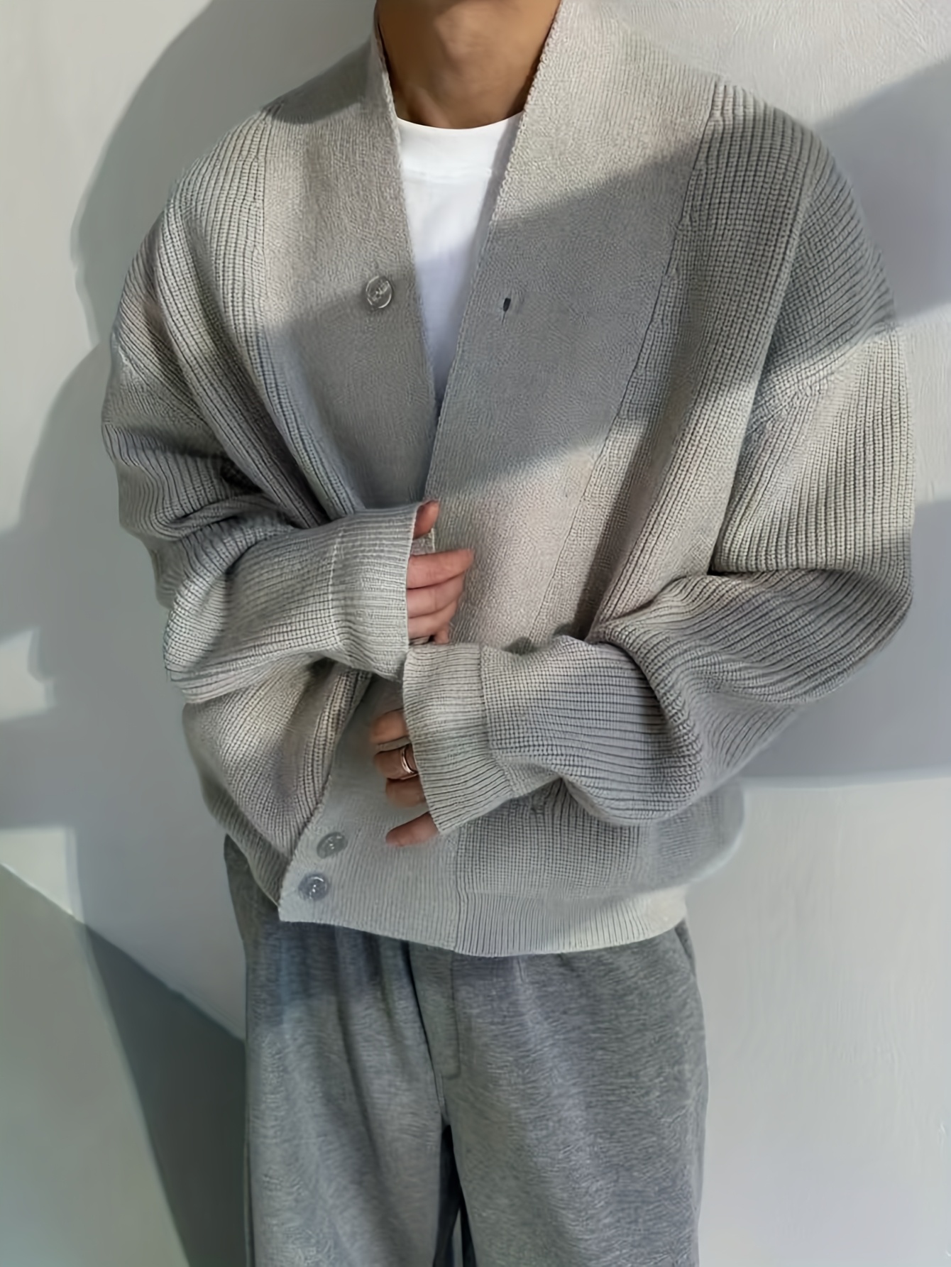 Men’S Cardigan Sweater in a Vintage Design, Featuring a Luxurious And Relaxed Knit Style in Light Gray