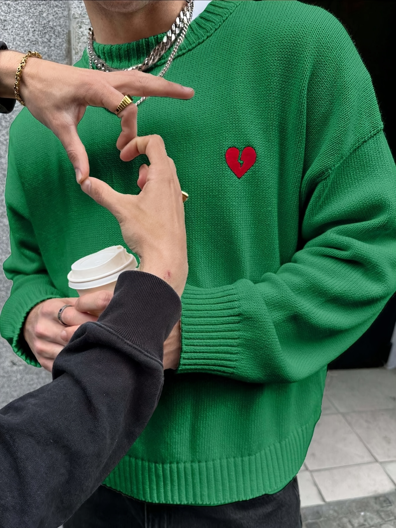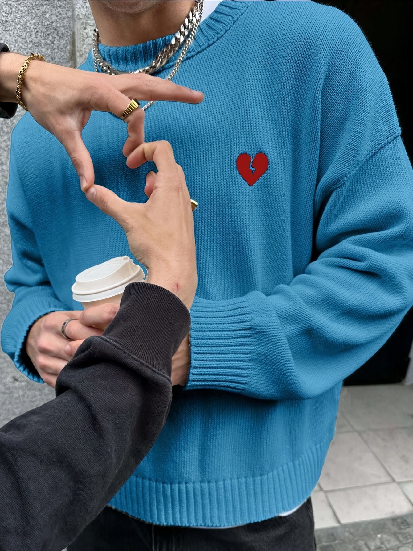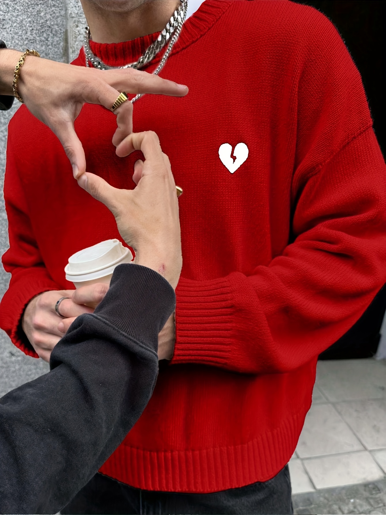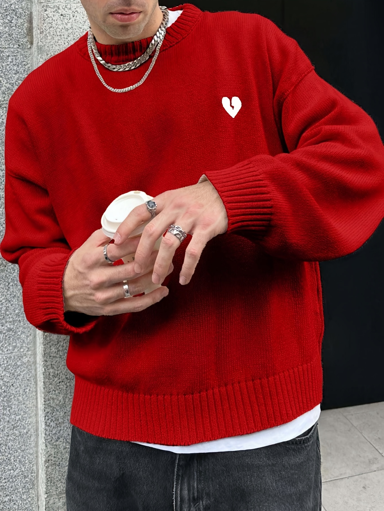 Men’S Casual Acrylic Heart Pattern Crew Neck Long Sleeve Loose Knit Sweater | Fallu002FWinter Fashionable Versatile Pullover