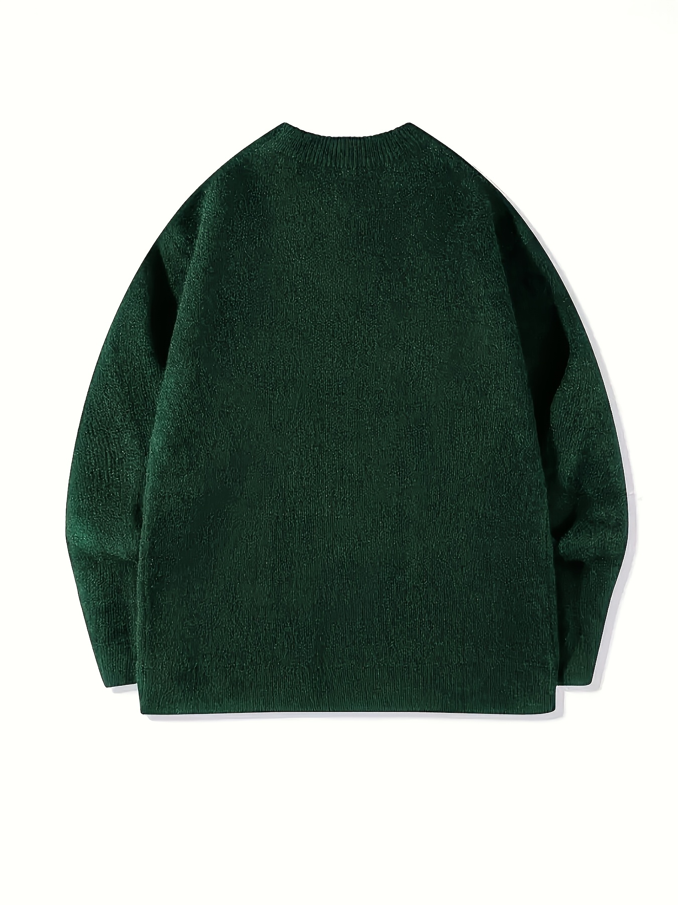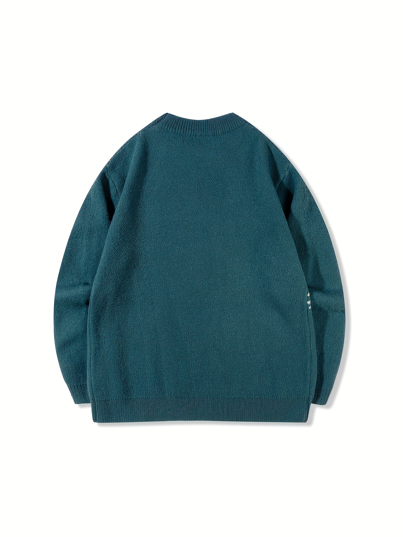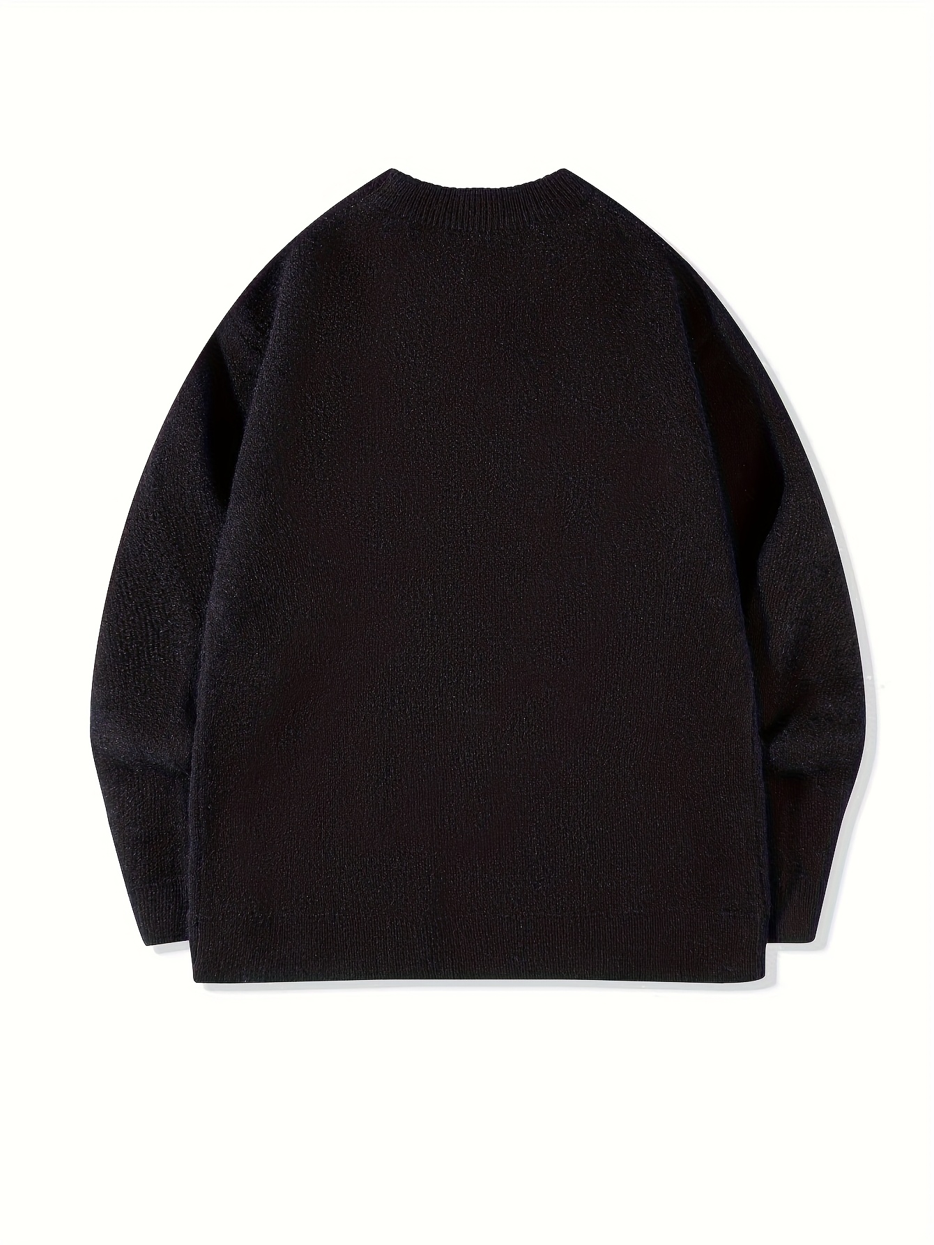 Men’s Crew Neck Long Sleeve Sweater, Animal Pattern, Casual Style Medium Stretch Fabric Loose Fit, for Fallu002FWinter