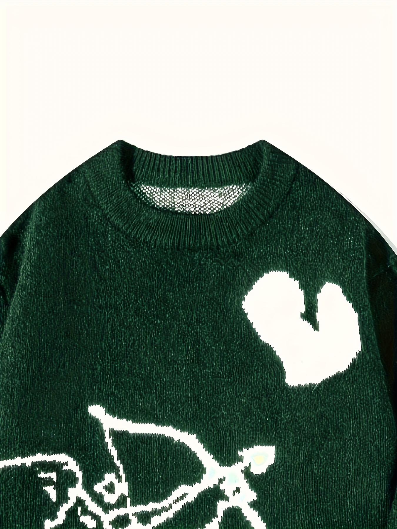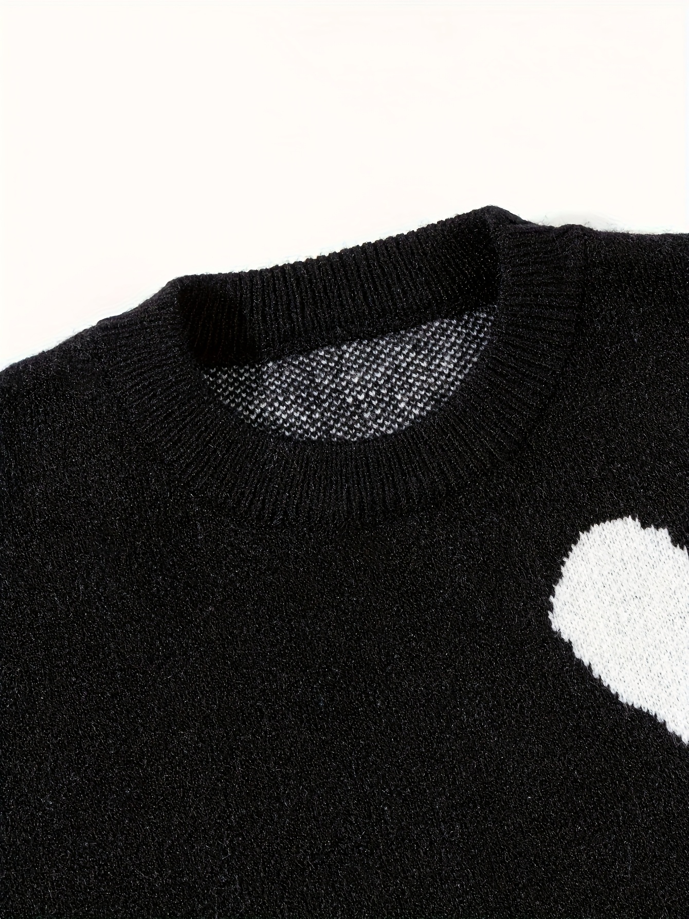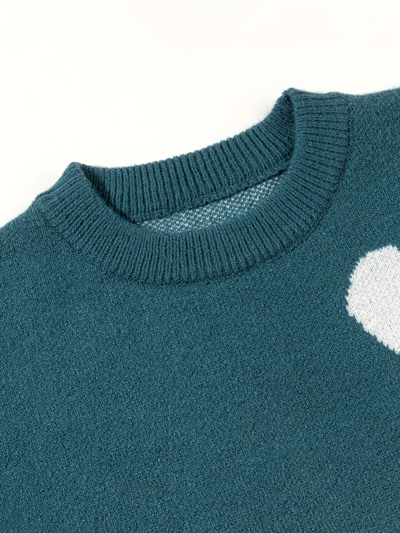 Men’S Casual Acrylic Heart Pattern Crew Neck Long Sleeve Loose Knit Sweater | Fallu002FWinter Fashionable Versatile Pullover