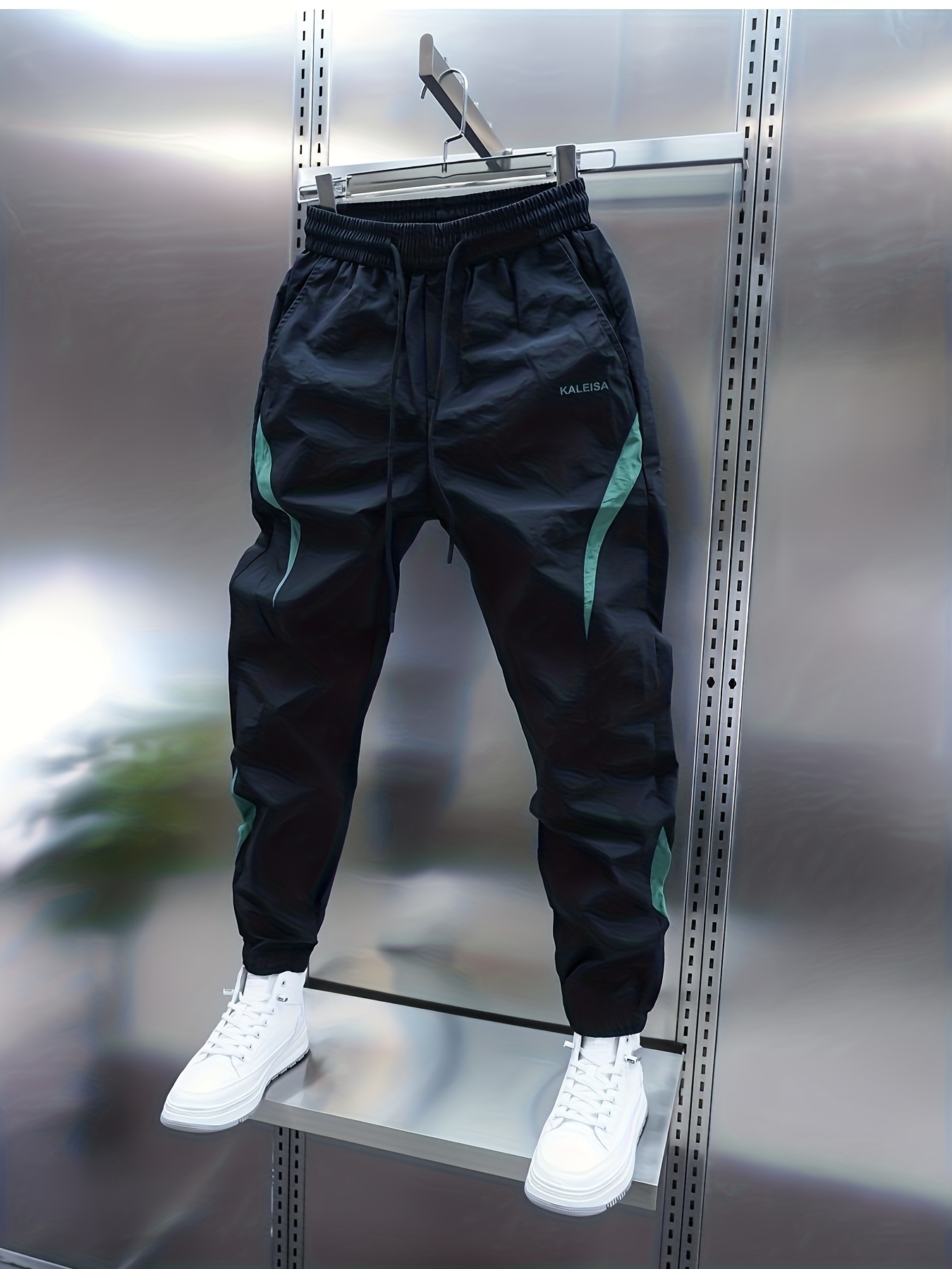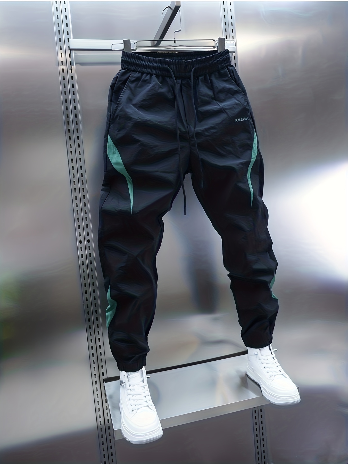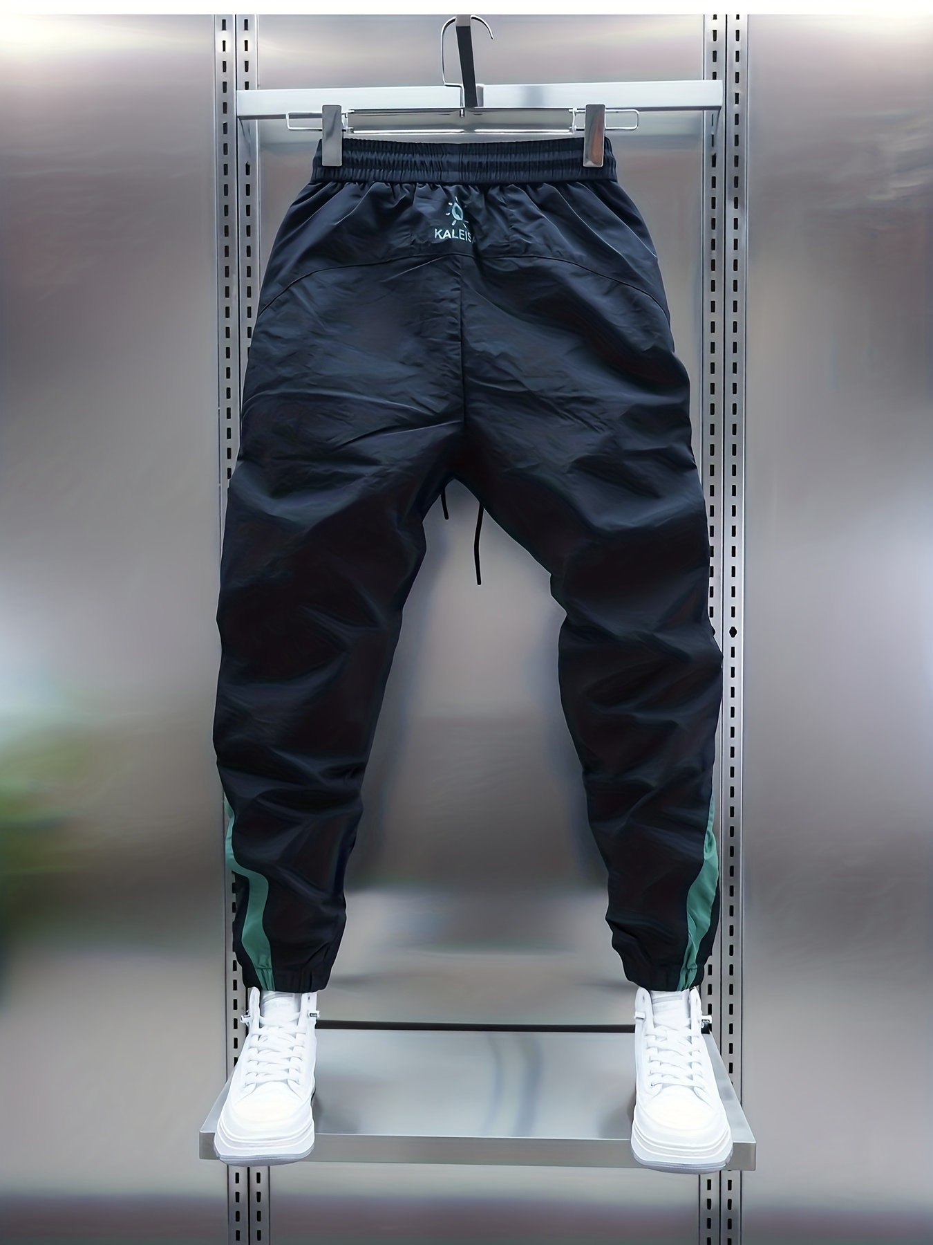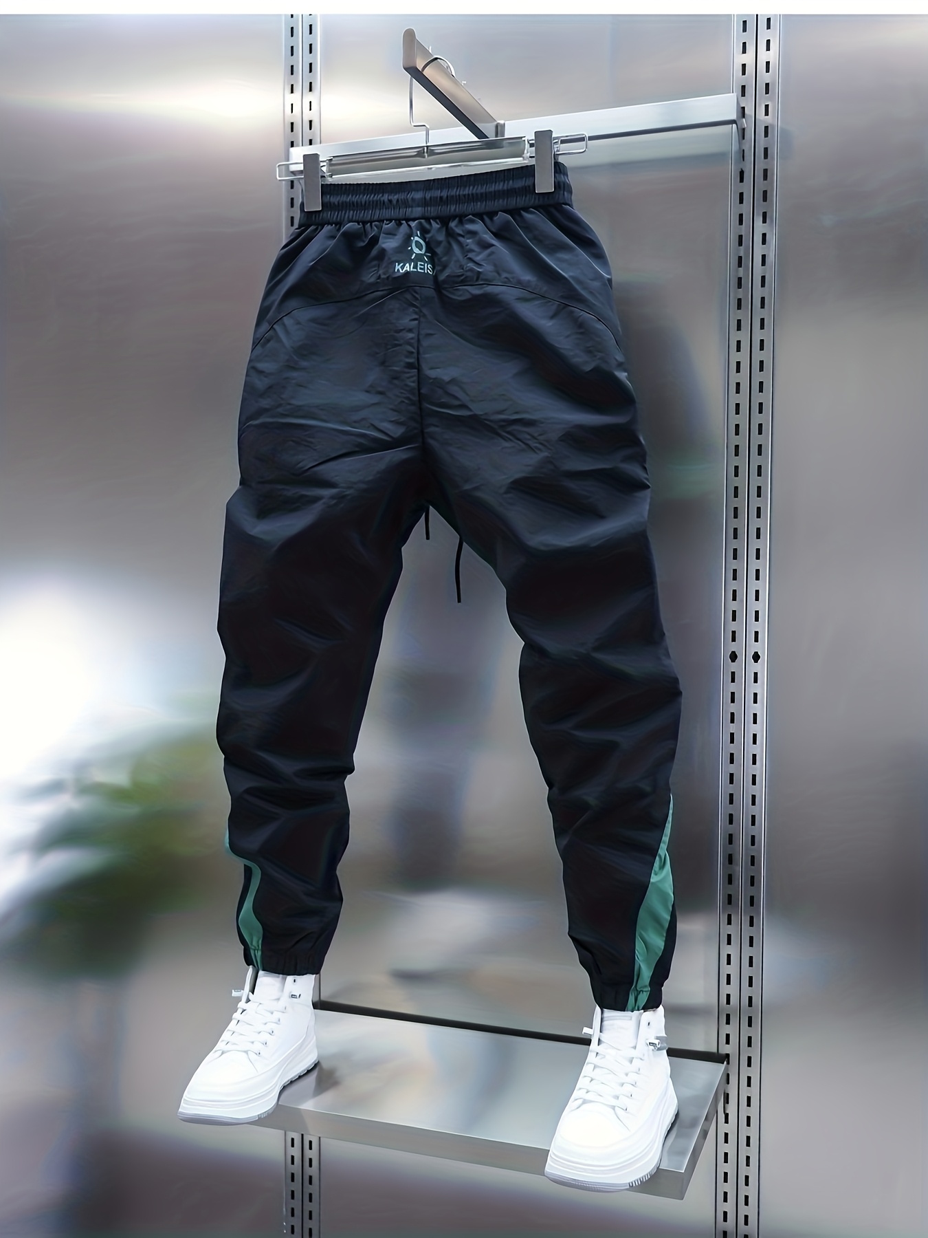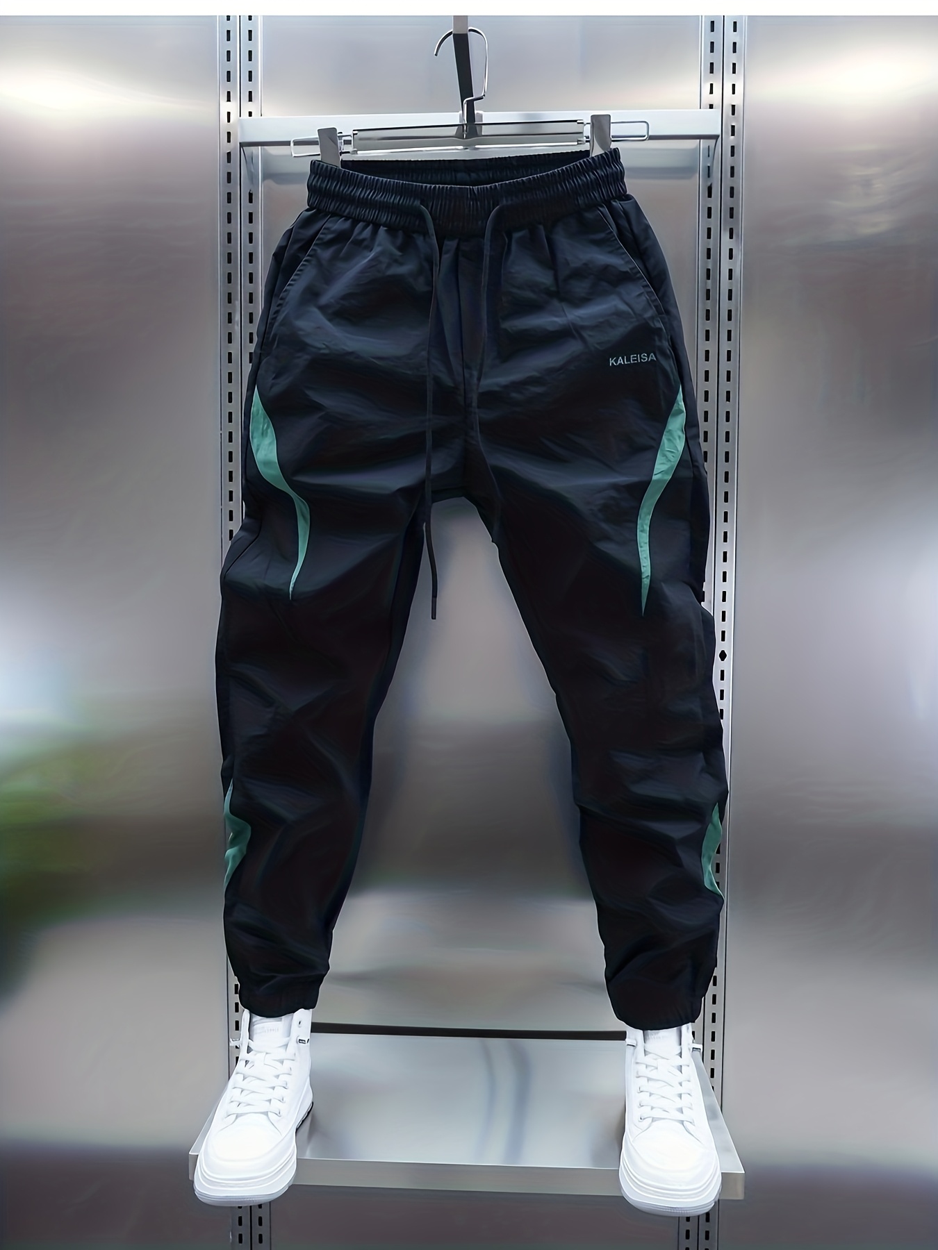 Men’s Long Pants And Casual Trousers – Feature an Elastic Waistband with a Drawstring – for Easy Adjustment. The Main Color Is Black – Complemented by Green Color-Blocking – for a Stylish And Modern Look. Suitable for Various Occasions Such As Daily Wear A