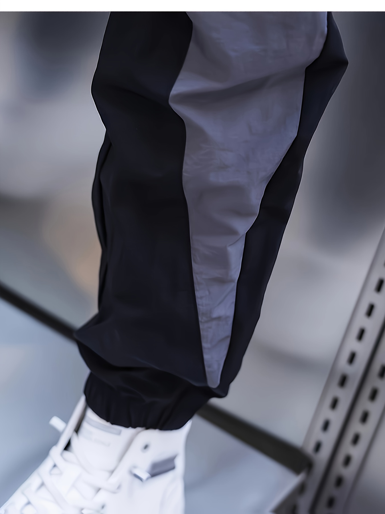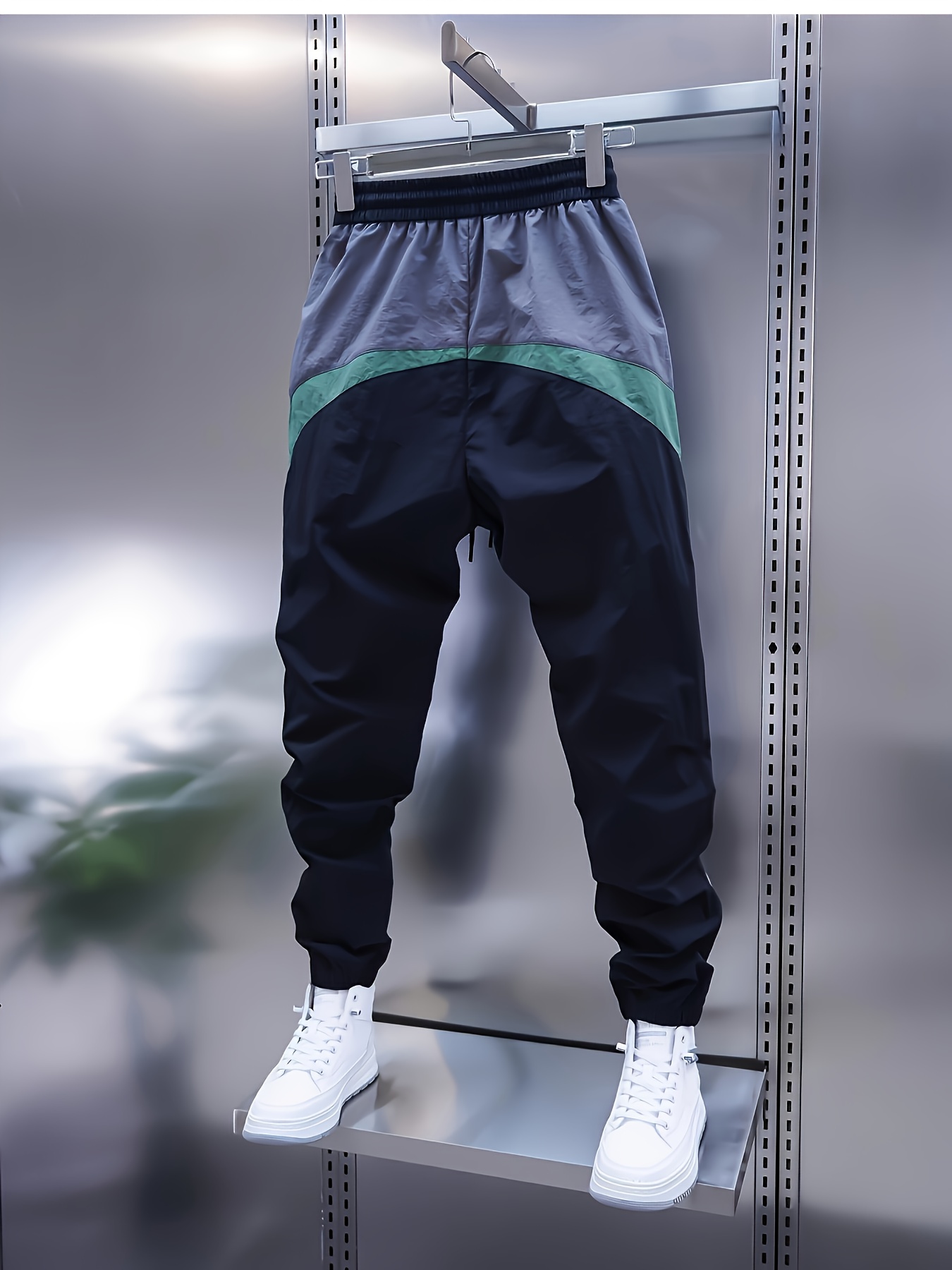 Men’S Long Pants, Casual Pants, Sports Pants, And Trendy Jogger Pants in Black, Gray, And Green Color-Blocking, Featuring a Bold And Unique Design. The Elastic Waistband with Drawstring Allows for Easy Wear And Removal, While The Tapered Fit Gives a