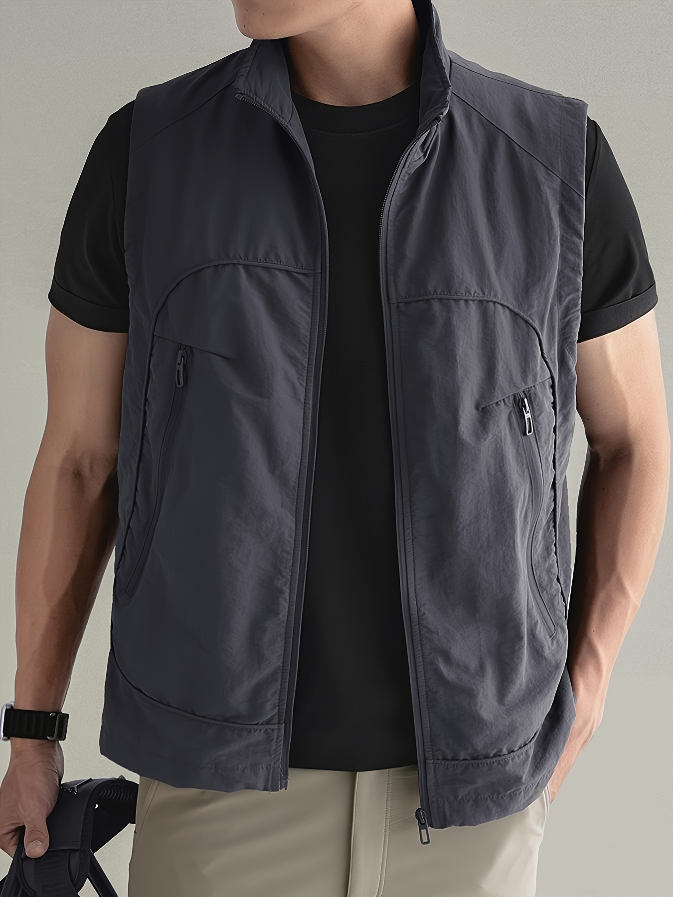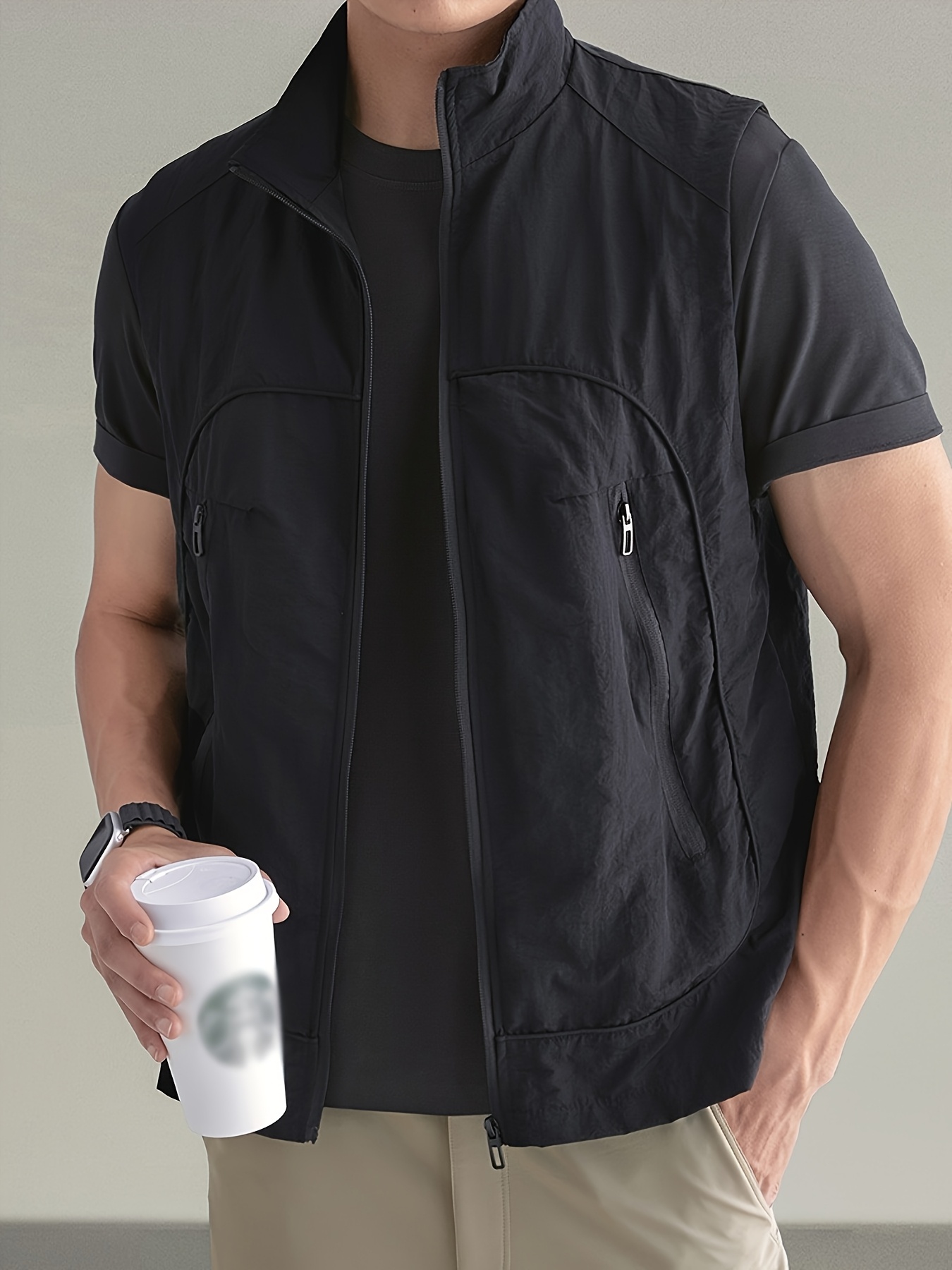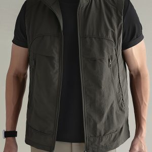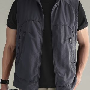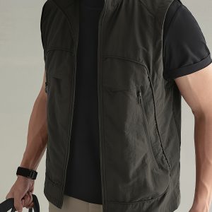 Men’s Outdoor Sports Cargo Jacket – Stand Collar Vest – New Autumn-Winter – Suitable for Running Fishing Hiking and Other Activities