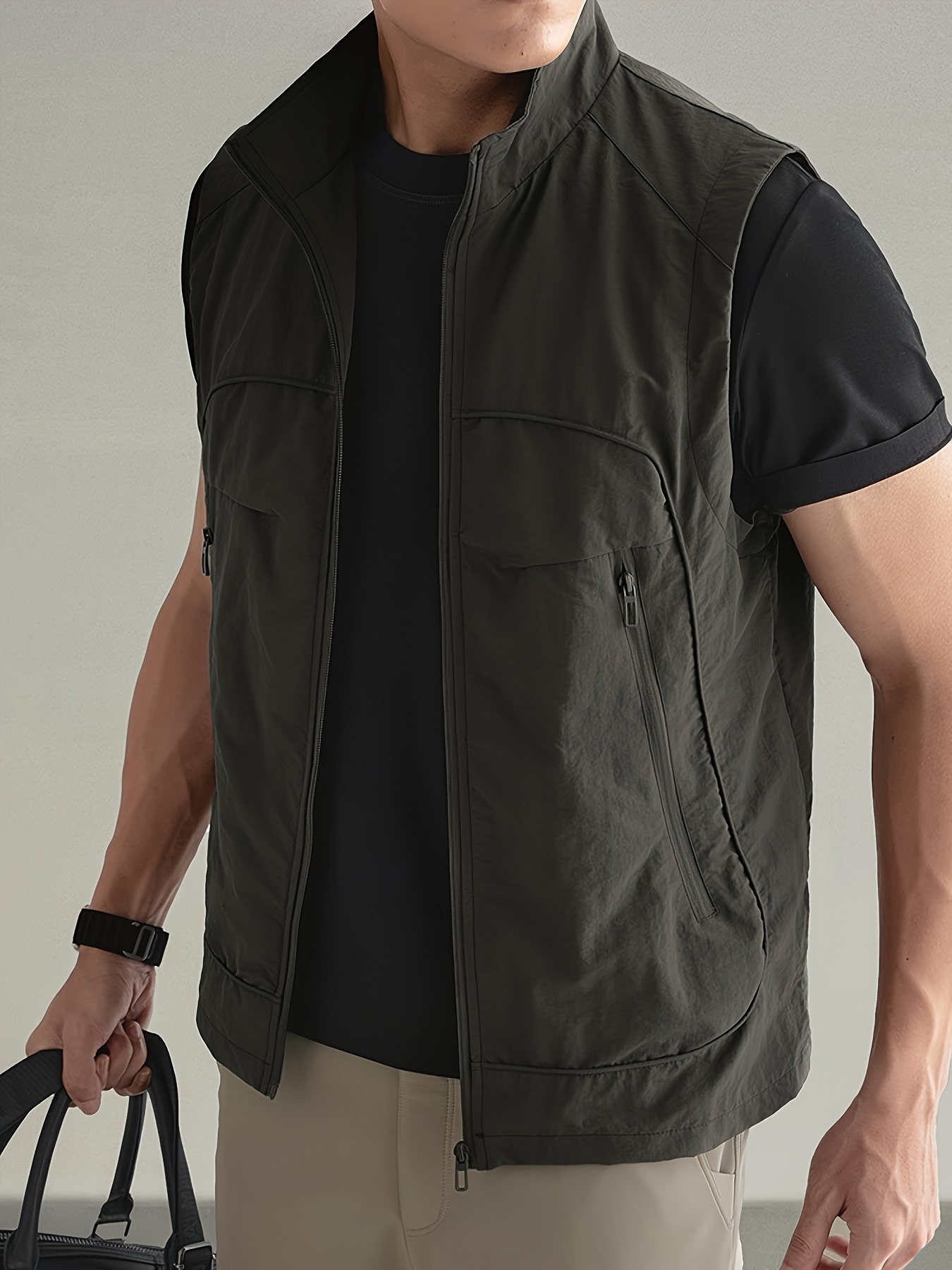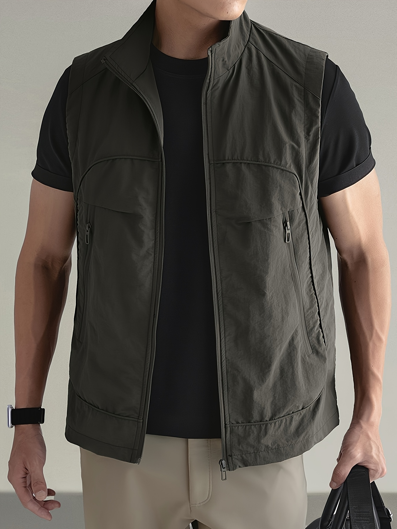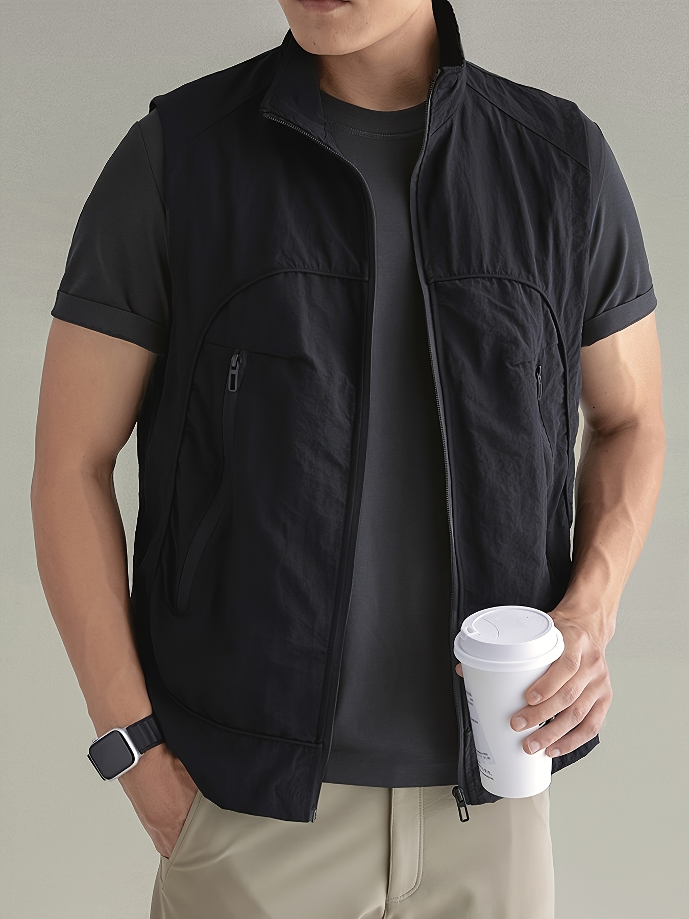 Men’s Outdoor Sports Cargo Jacket – Stand Collar Vest – New Autumn-Winter – Suitable for Running Fishing Hiking and Other Activities