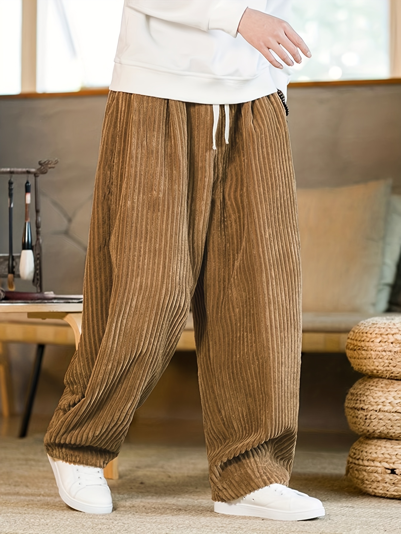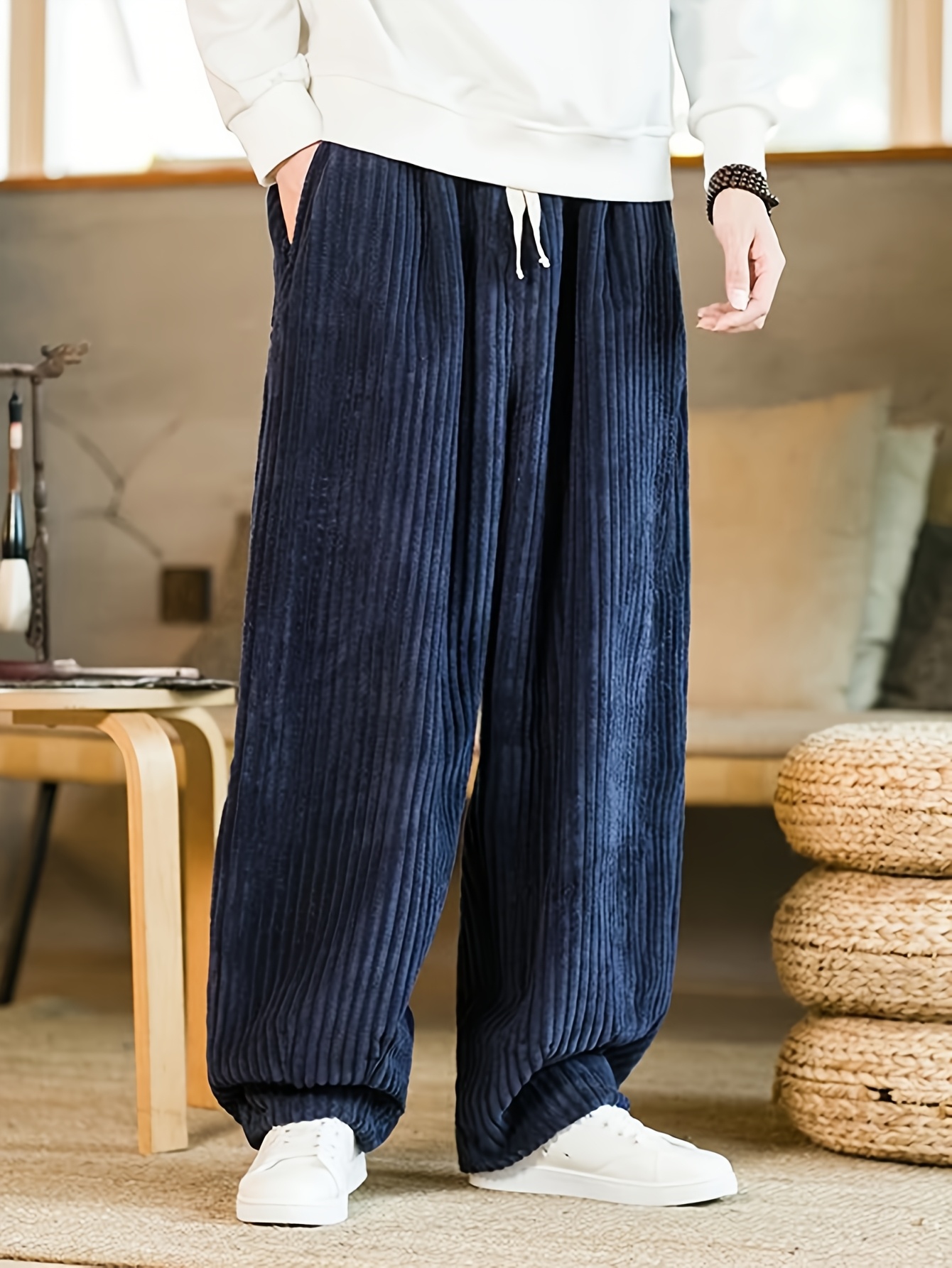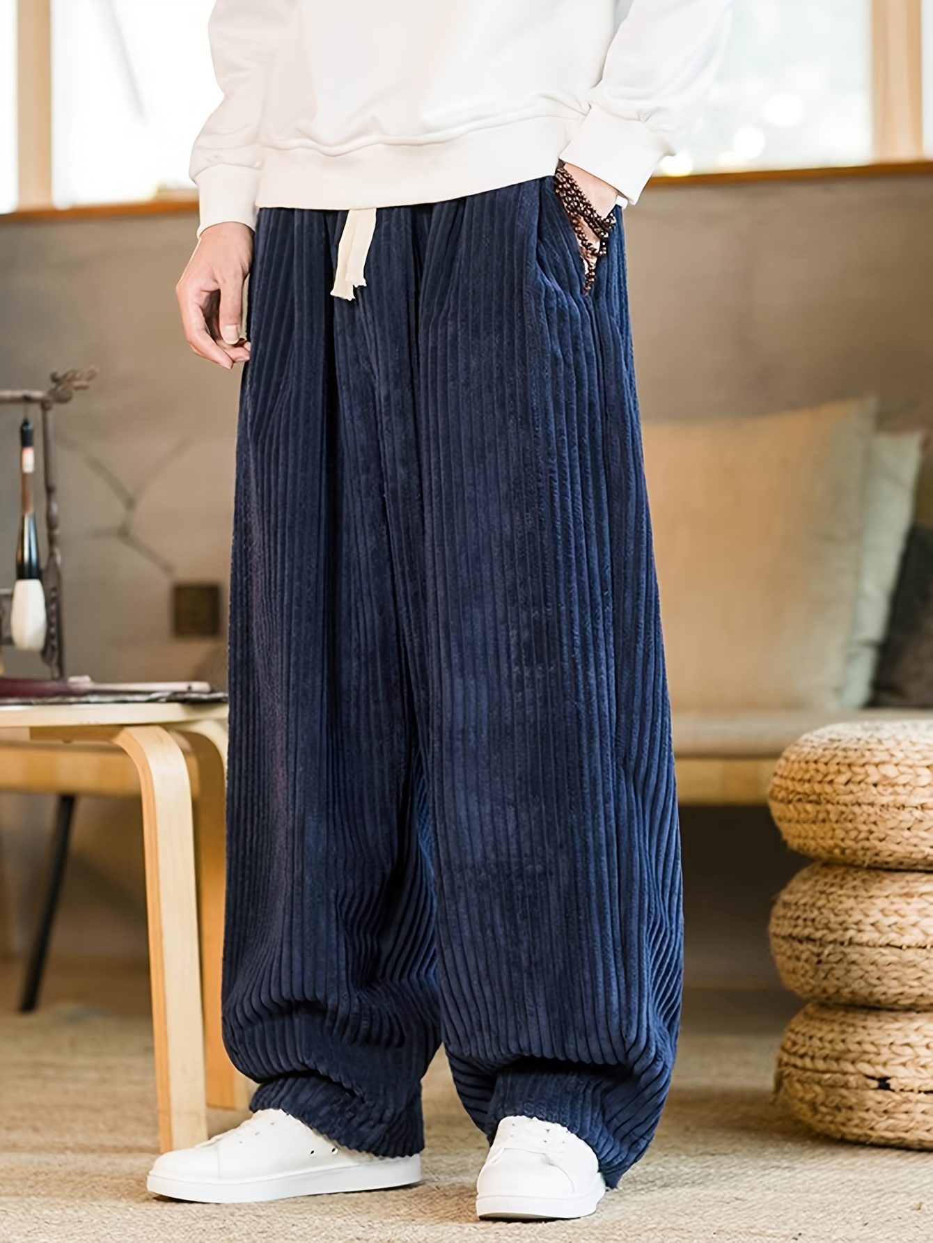 Men’s Oversized Wide-Leg Corduroy Lounge Pants, Autumn and Winter Loose Straight Leg Casual Trousers