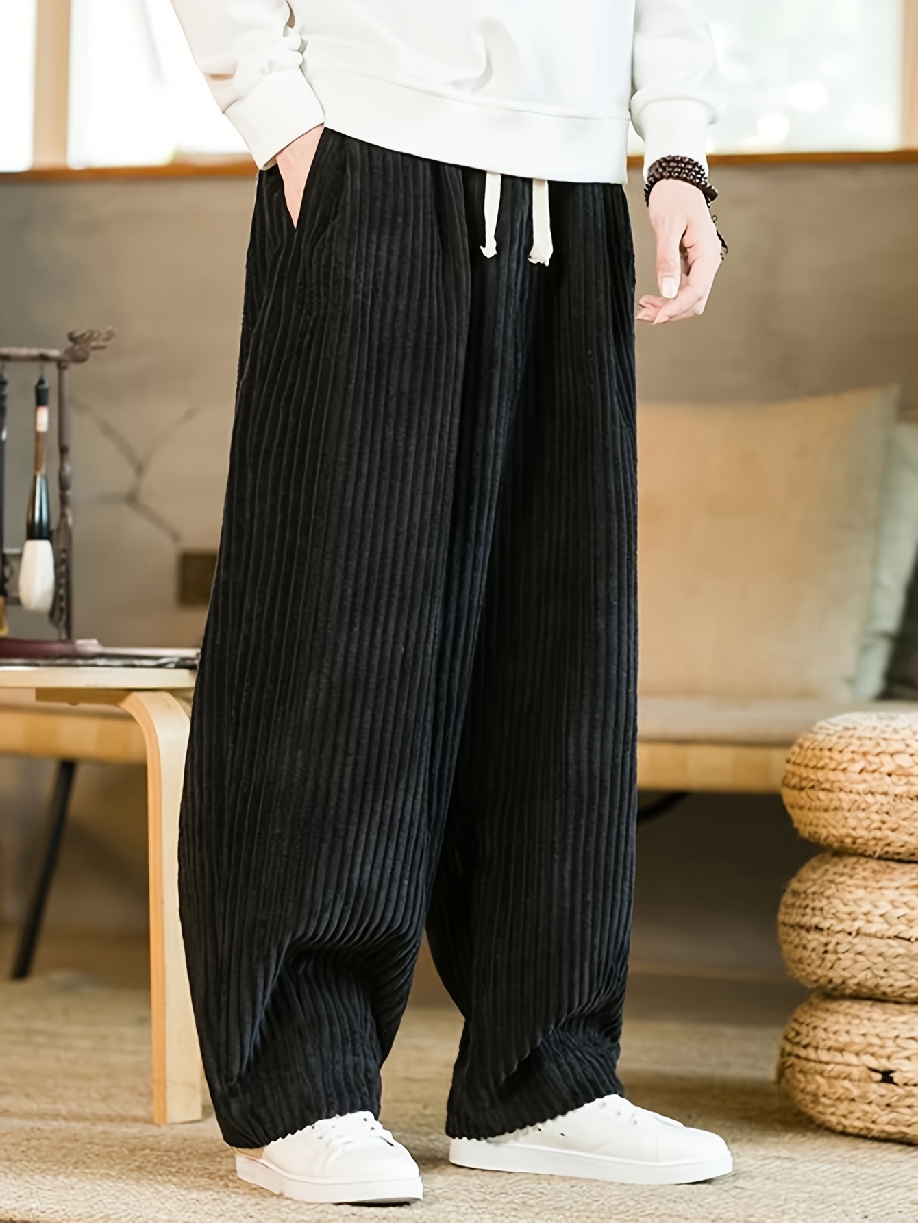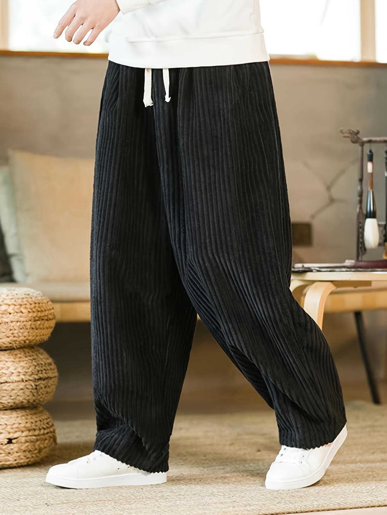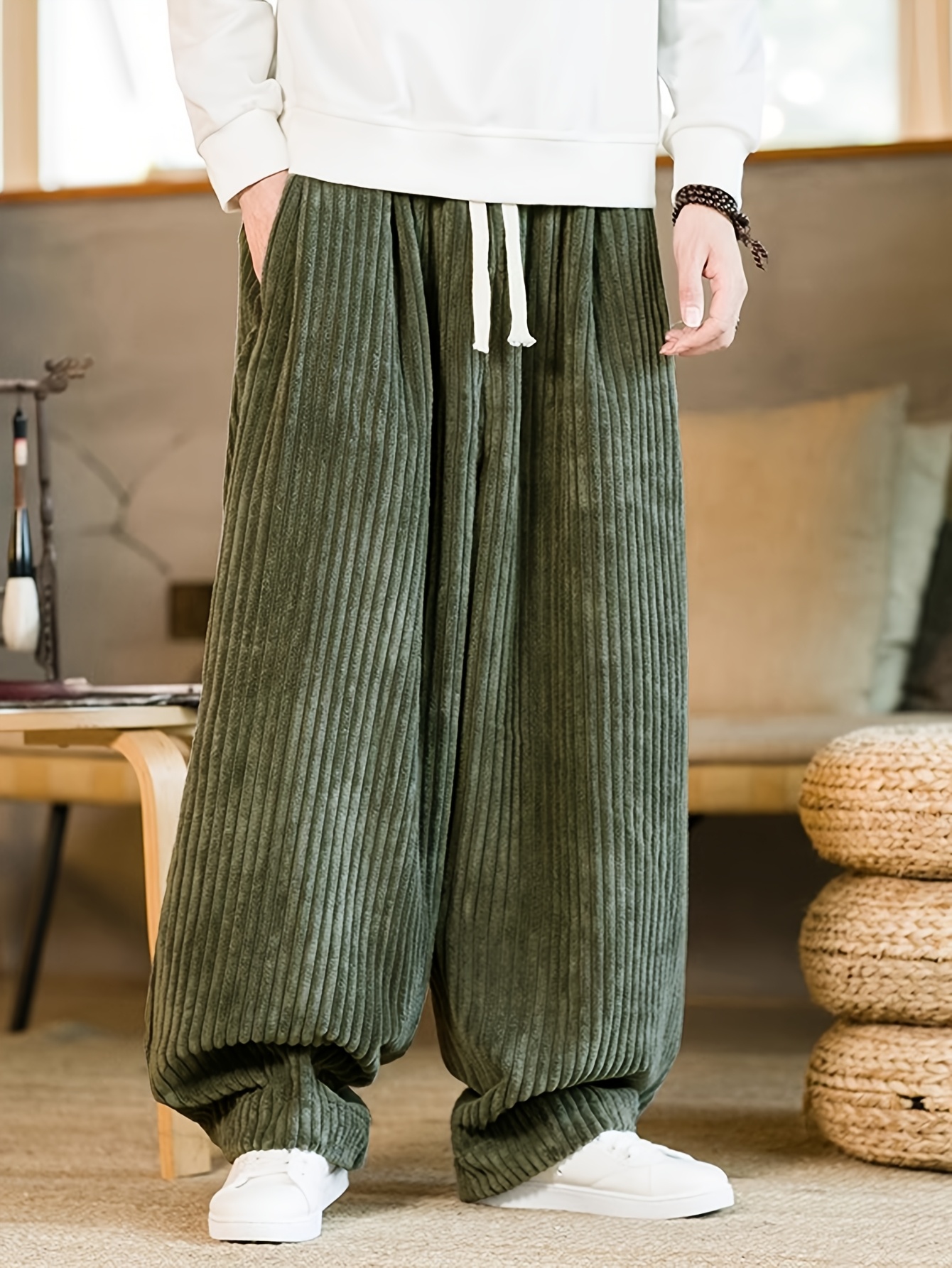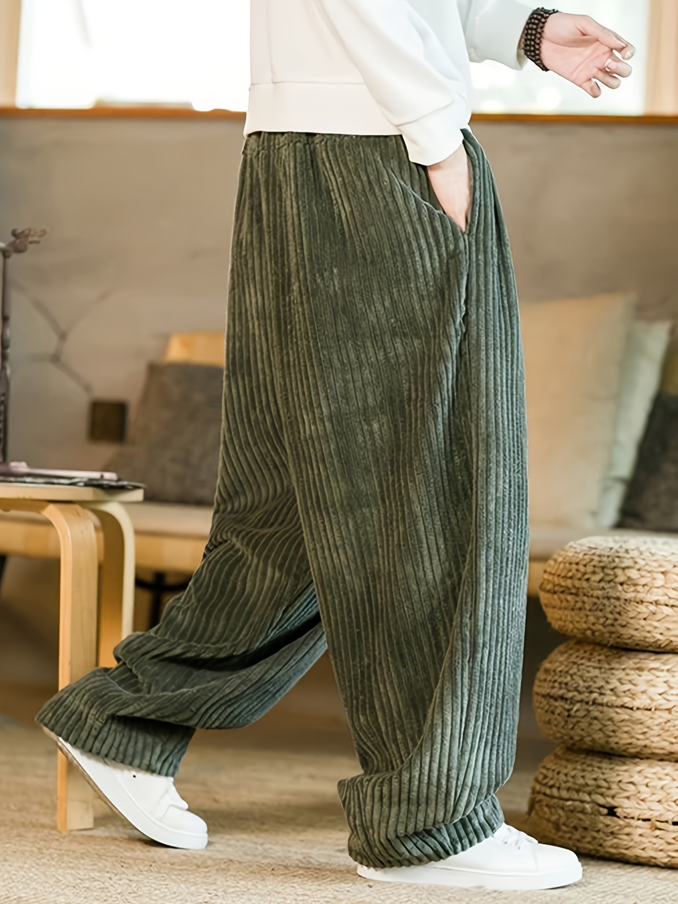 Men’s Oversized Wide-Leg Corduroy Lounge Pants, Autumn and Winter Loose Straight Leg Casual Trousers