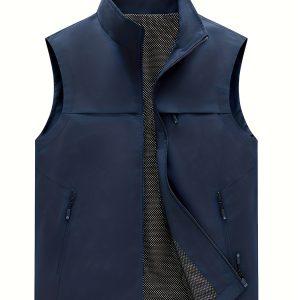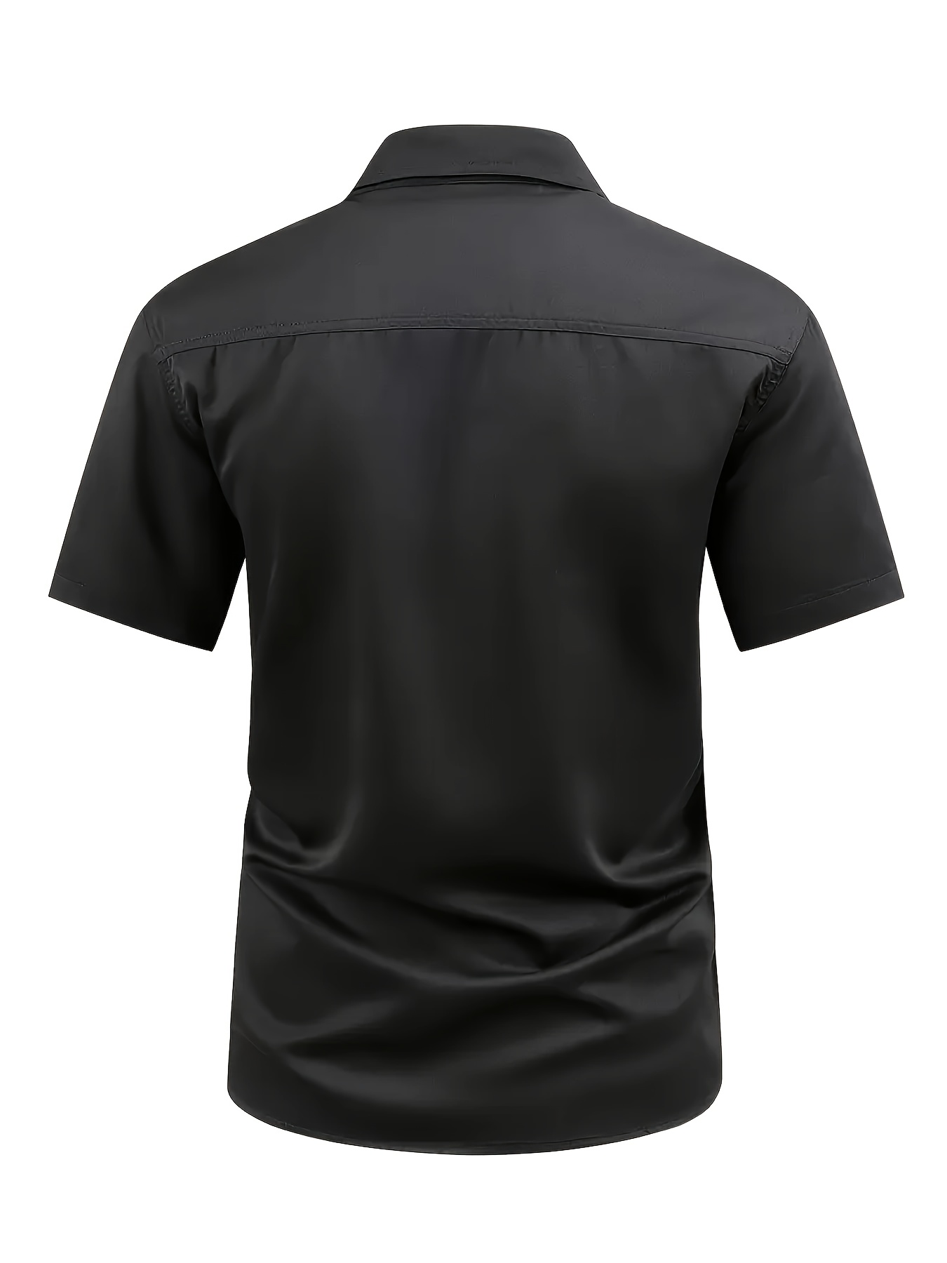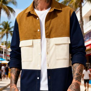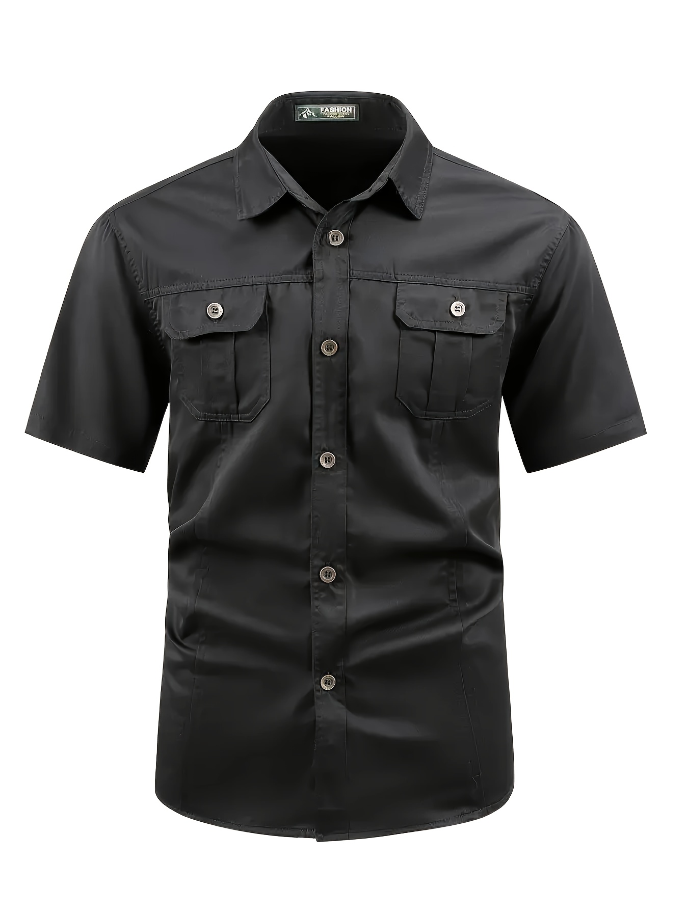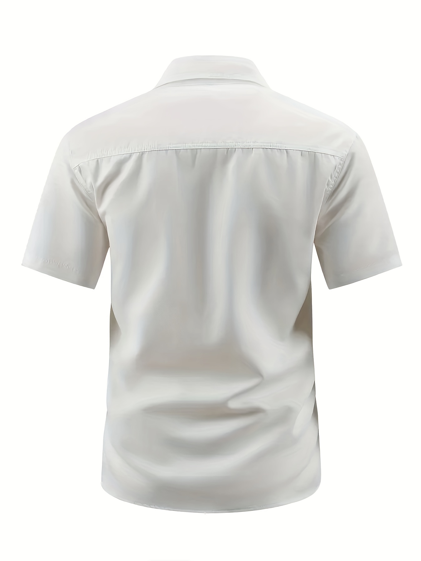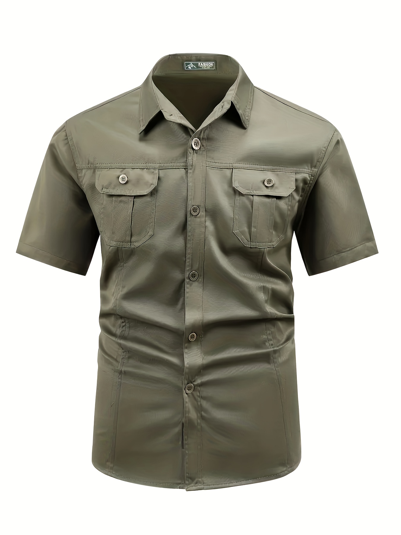 Men’S Solid Color Short-Sleeve Work Shirt Jacket with Button Pockets for Casual Outdoor Wear