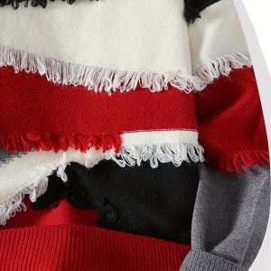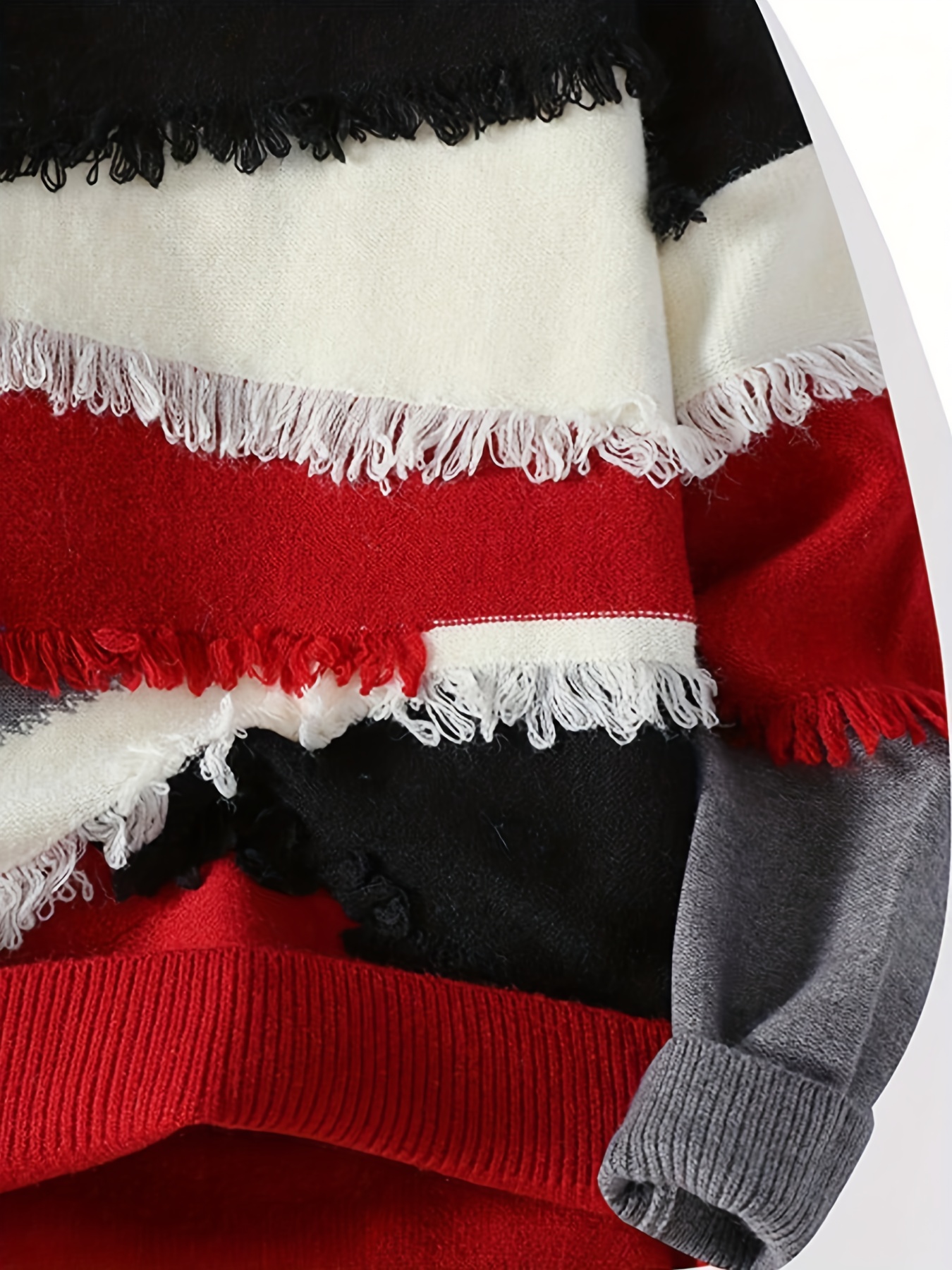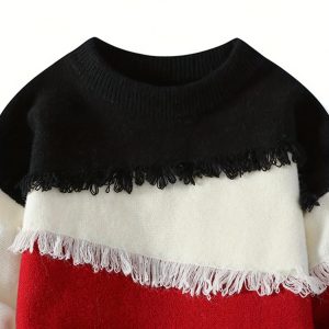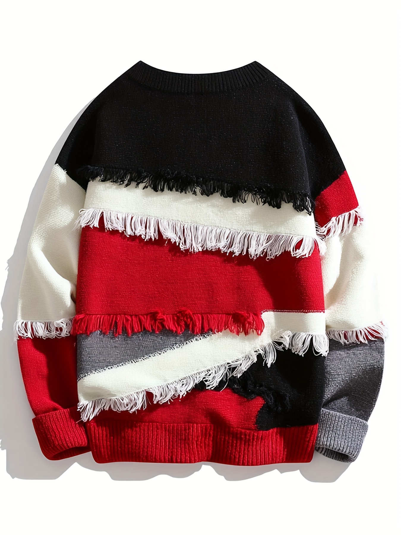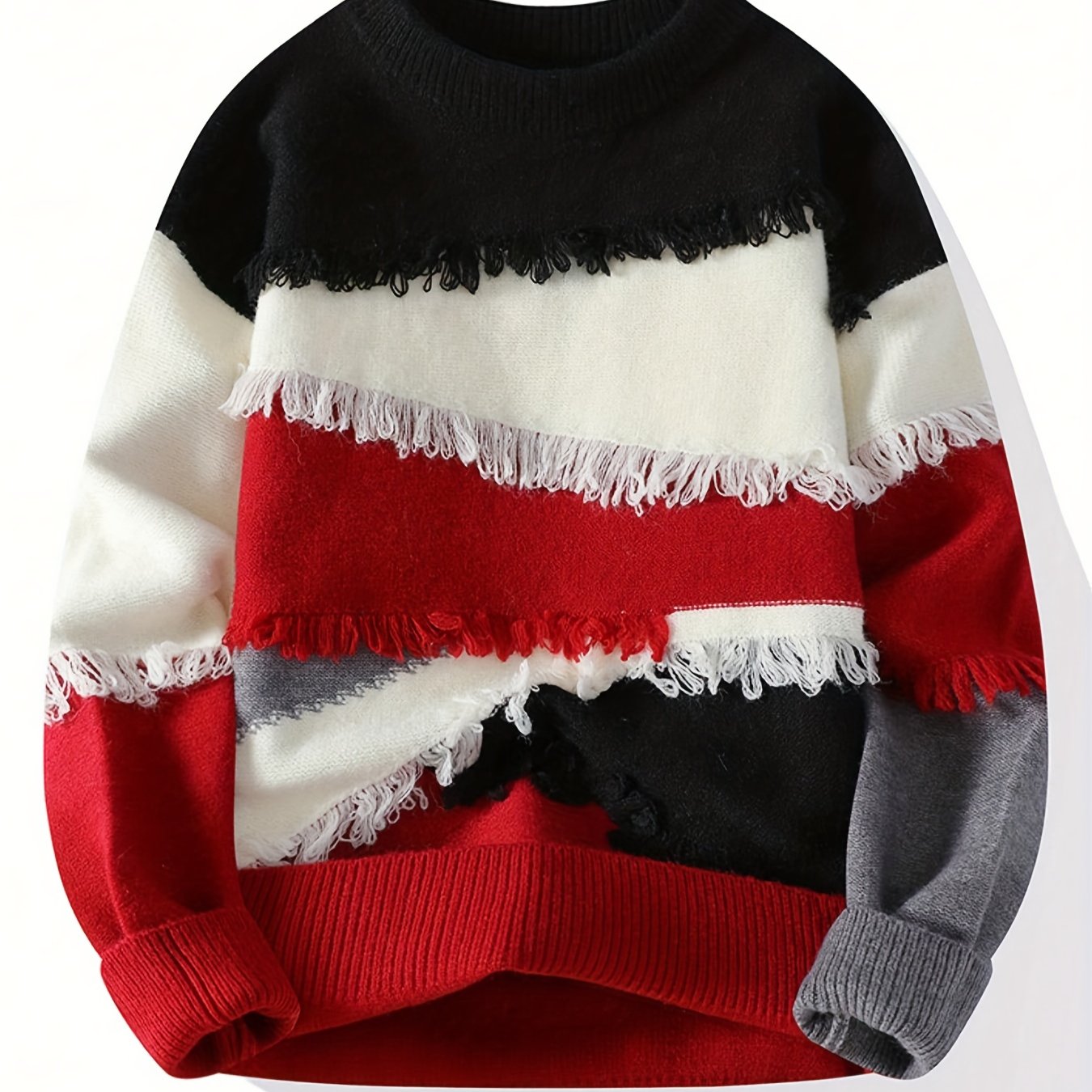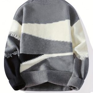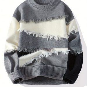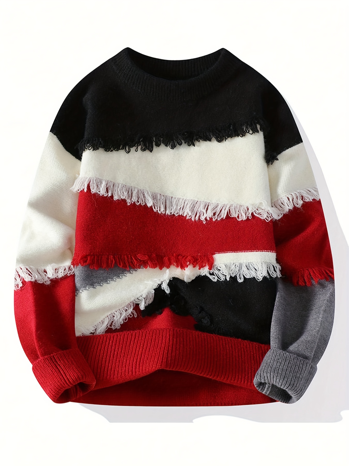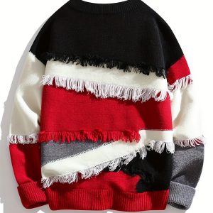 Men’S Streetwear Sweater – Thick Winter Pullover Sweater with Redu002FBlacku002FWhiteu002FGray Color Block, Loose Fit Long Sleeve Sweater for Urban Fashion, Fallu002FWinter Casual Outfits – Easy Care Knit Sweater for Everyday & Formal Events, Sweater, Fall Winter Apparel, Frayed Hem Design, Durable Knitwear, Fall Fashion, Street Style, Cozy Material, Streetwear Lovers, Men’S Clothing, Heavycity Knit Coat, Men Knit, Scashknit, Winter Clothe For Men, Men Winter Pullover, Men Pullover, Men Clothe