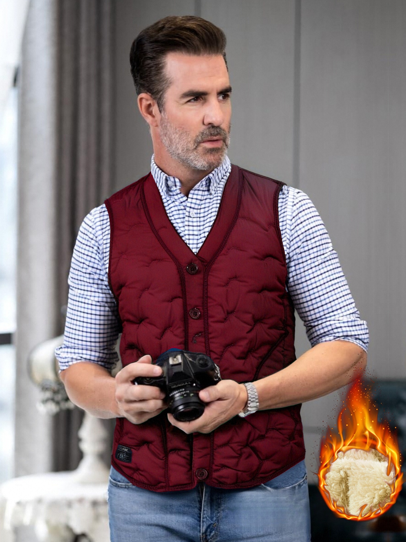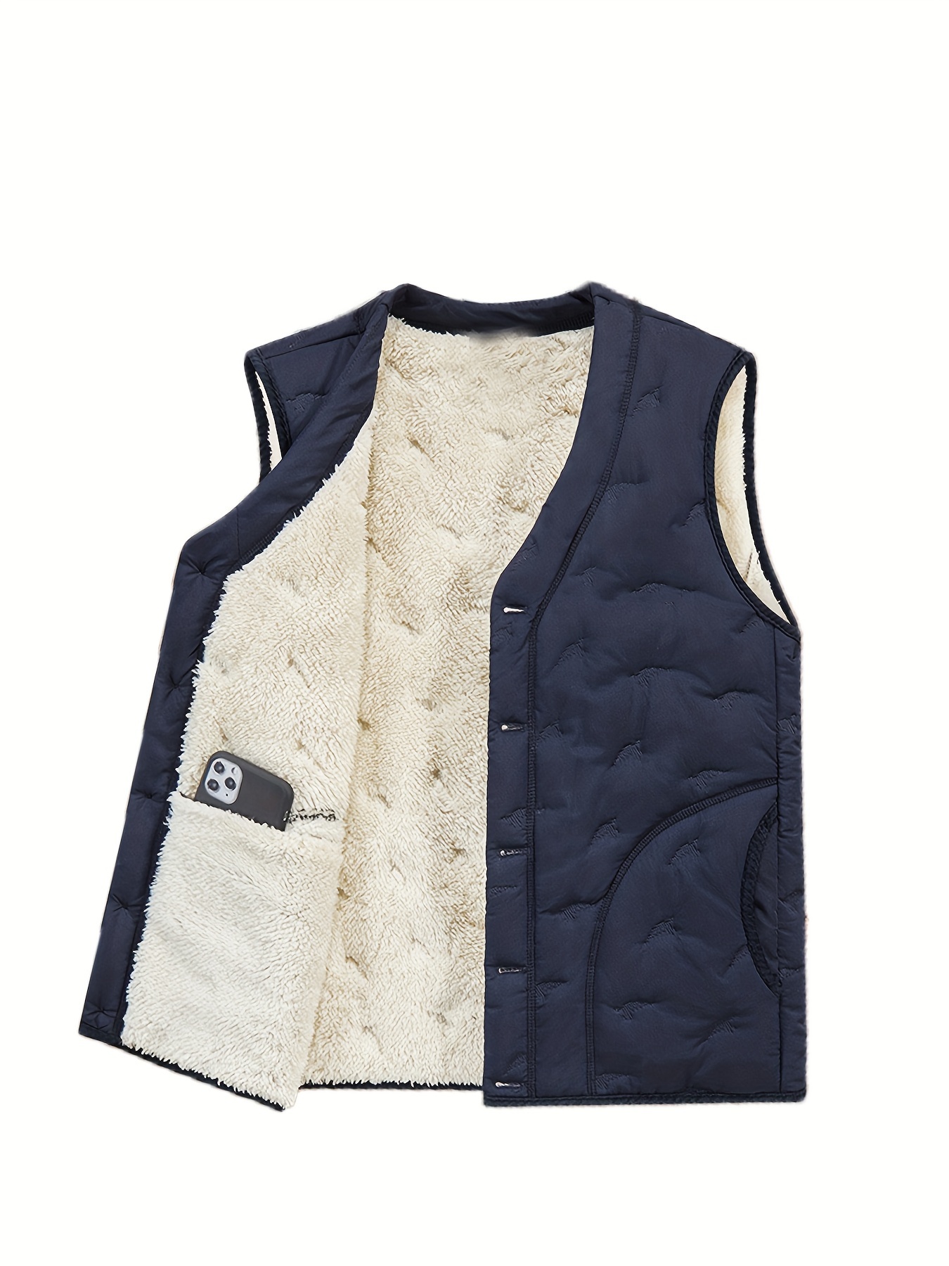 Men’s Warm Fleece-Lined Vest – Casual V-Neck, Sleeveless Jacket for Fall & Winter