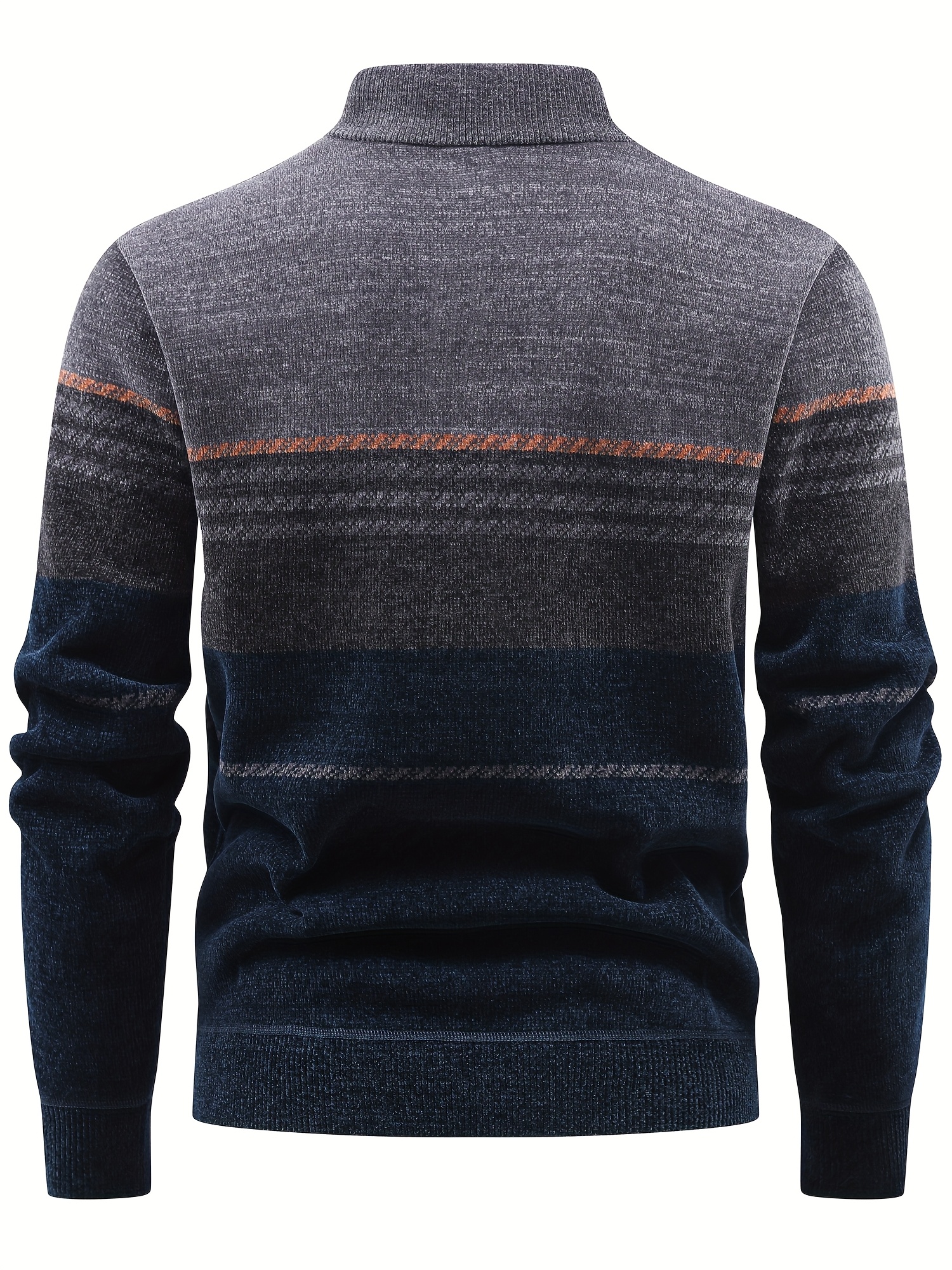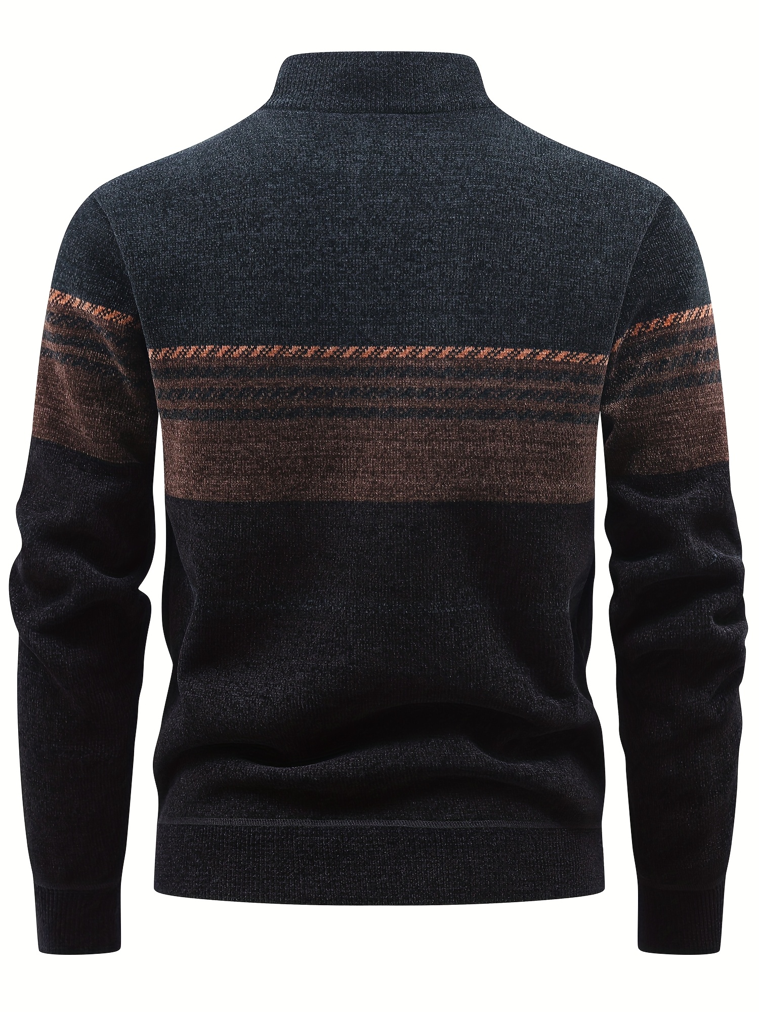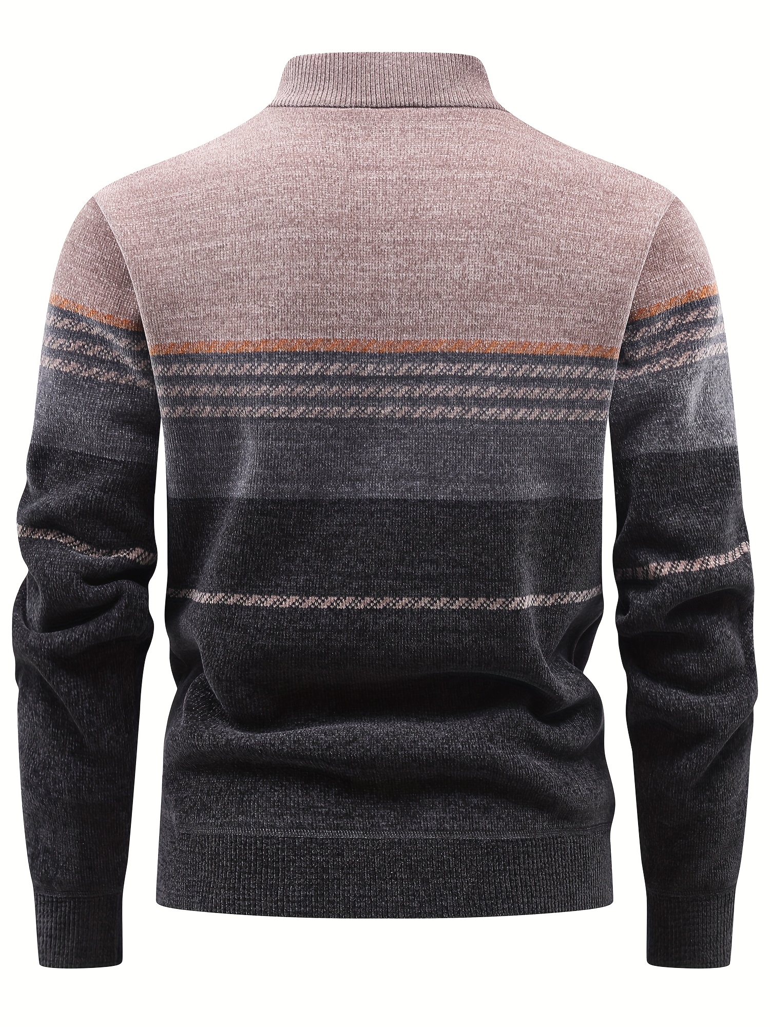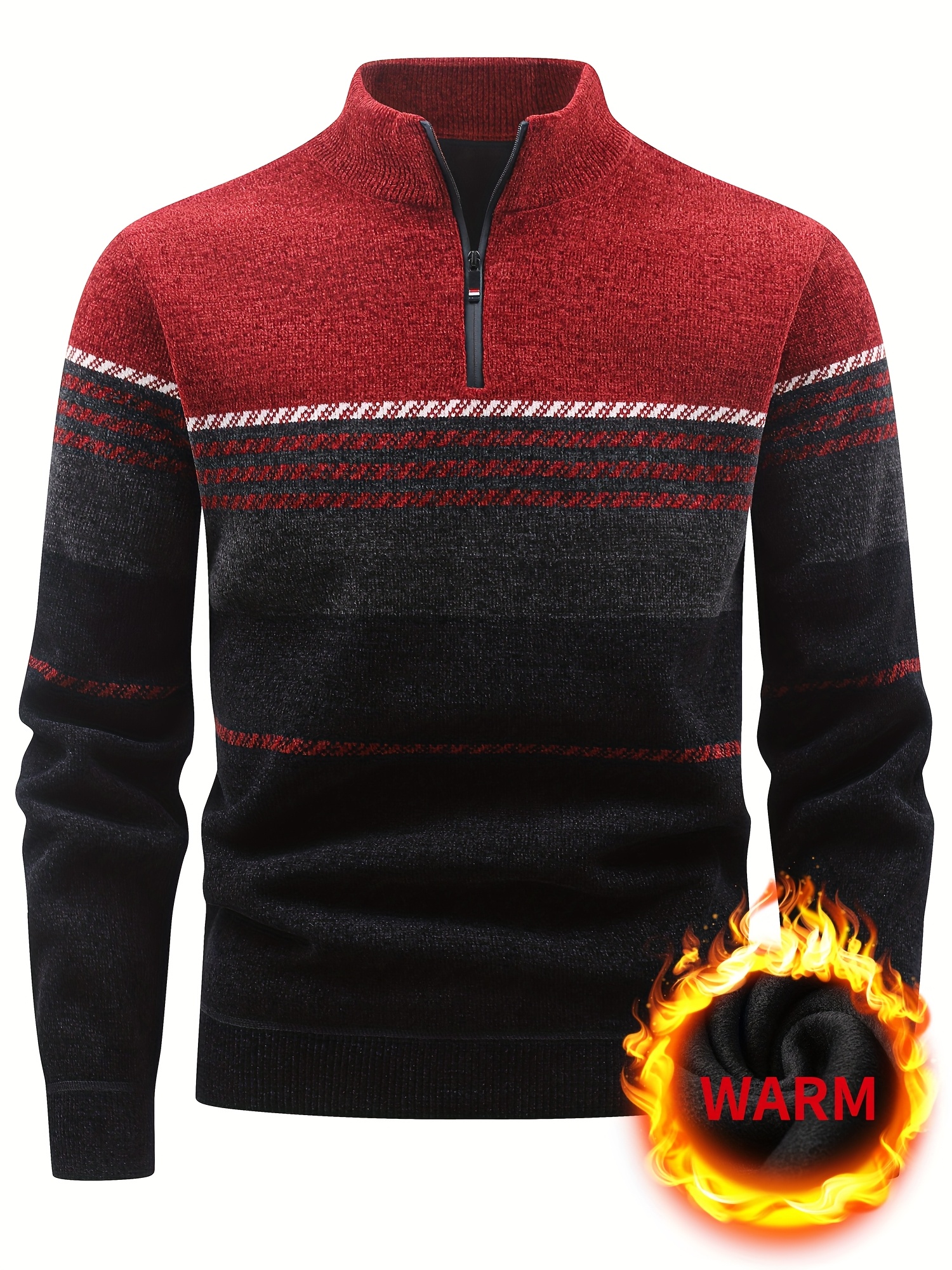 Men’S Winter Knitted Pullover with a Warm Fleece-Lined Zip Collar, Featuring Contrasting Stripes, Perfect for Casual Outings.