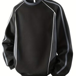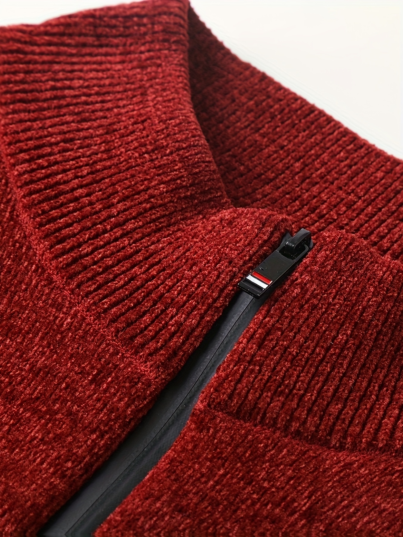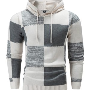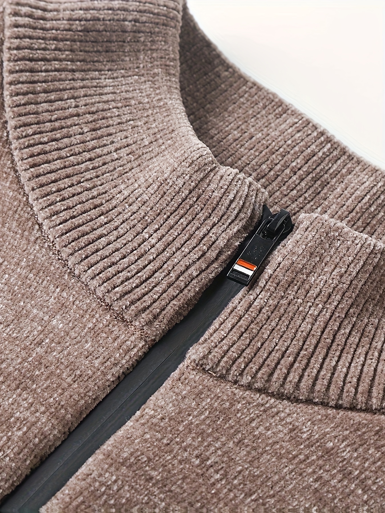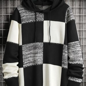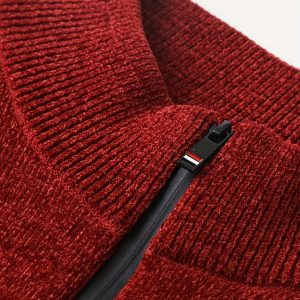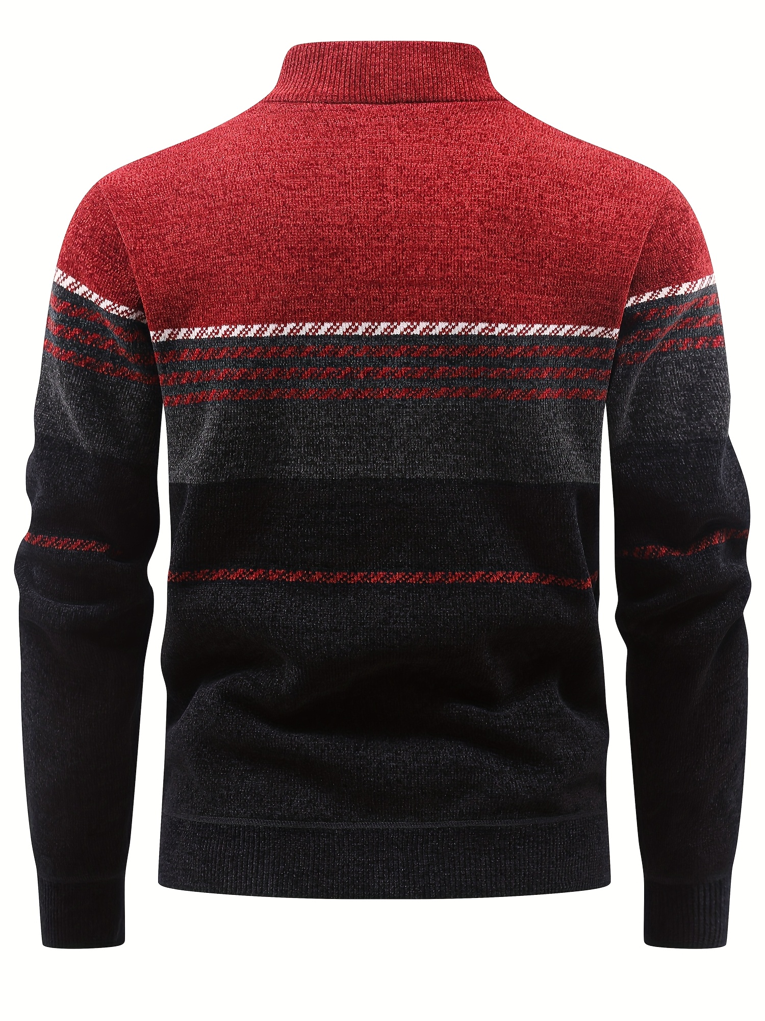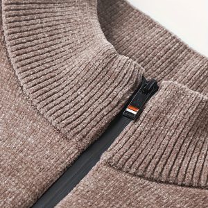 Men’S Winter Knitted Pullover with a Warm Fleece-Lined Zip Collar, Featuring Contrasting Stripes, Perfect for Casual Outings.