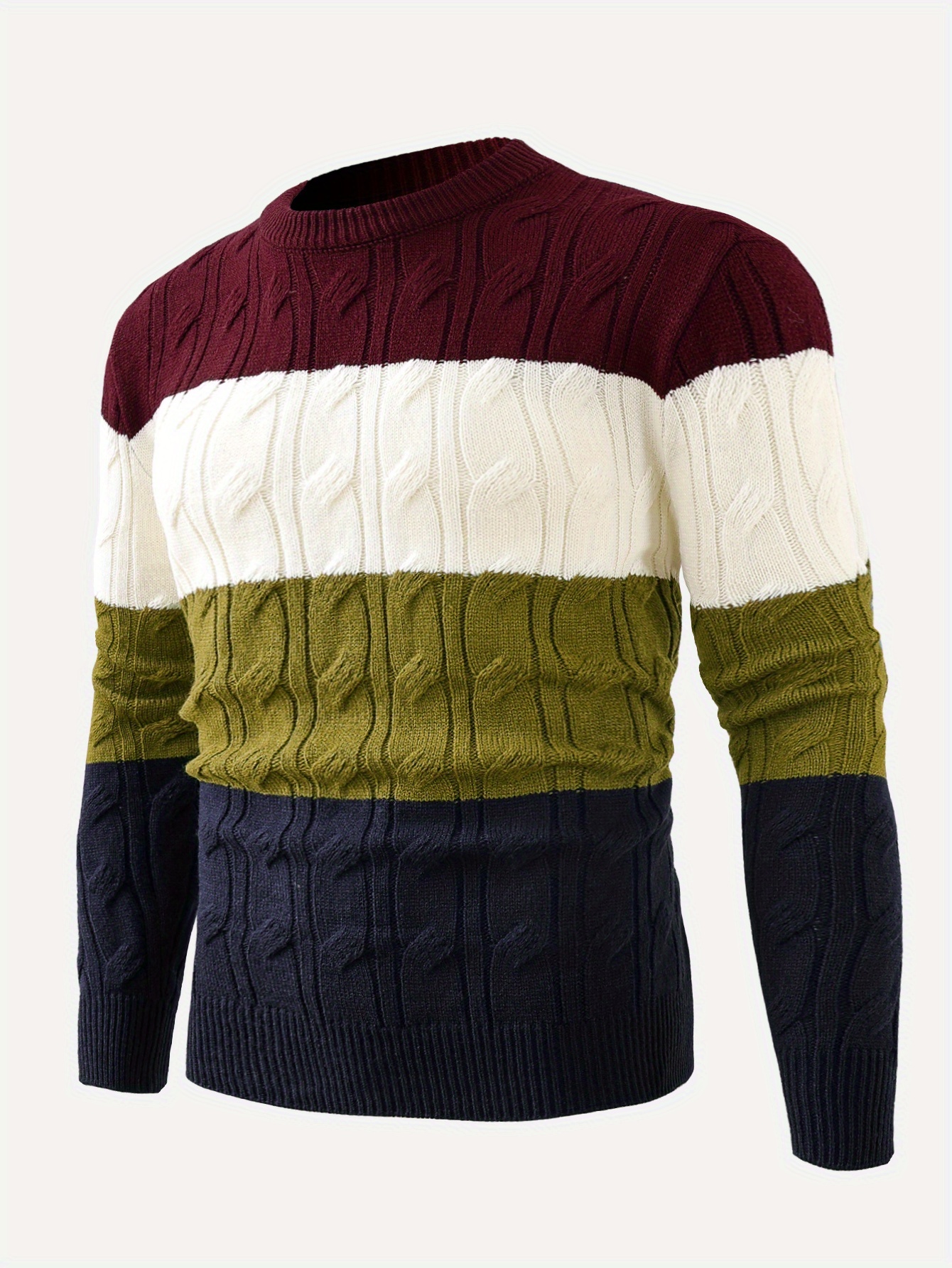 - Men’s Winter Round Neck Knit Sweater – Color-Blocking (u002F) Warm Business Casual Office Wear, Machine Washable Sweaters Suitable for Fall and Winter