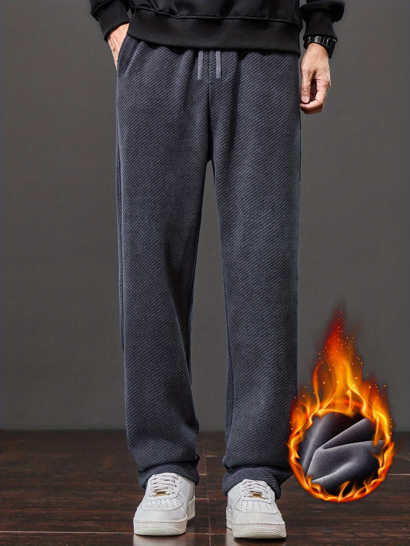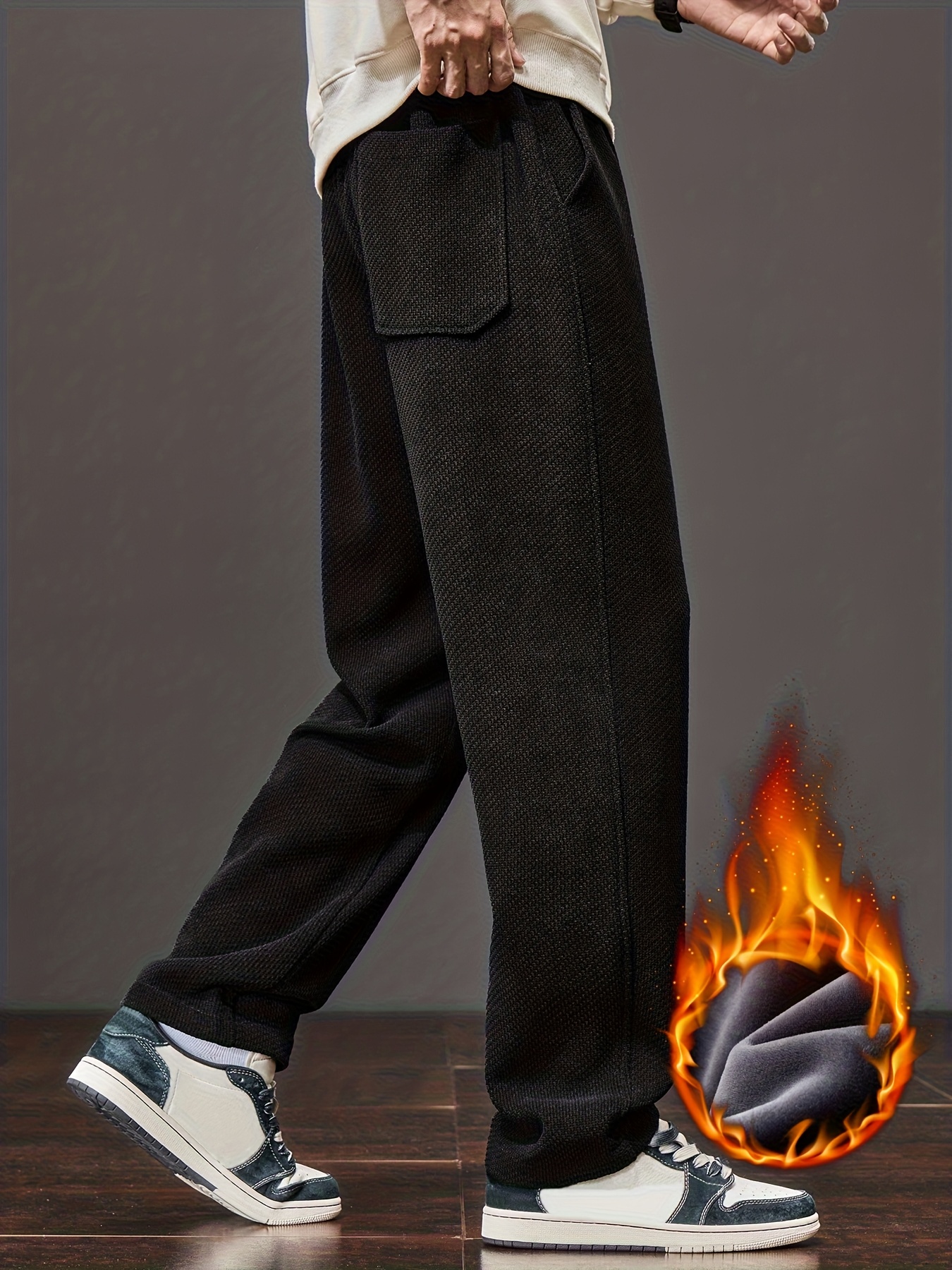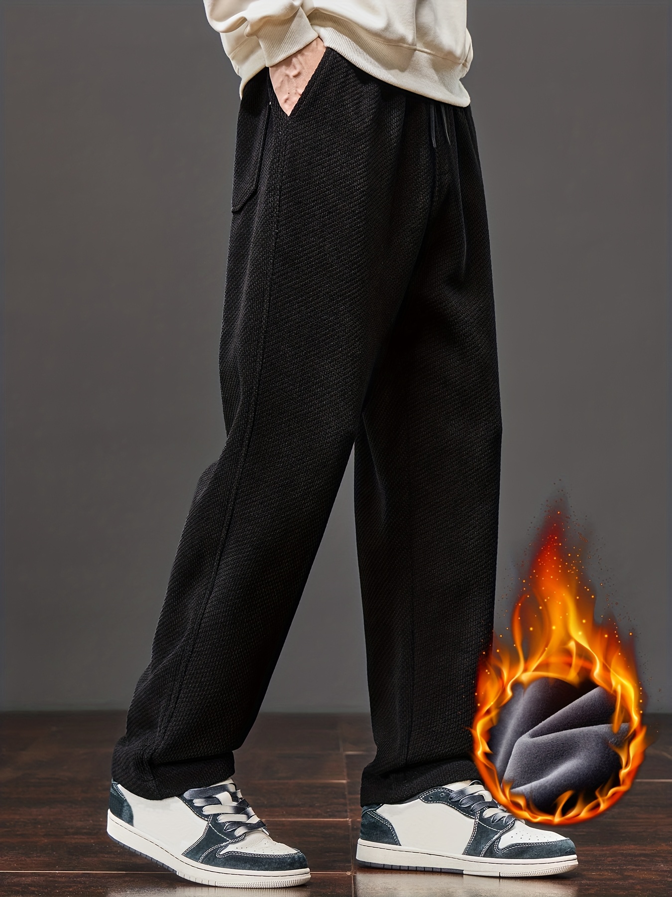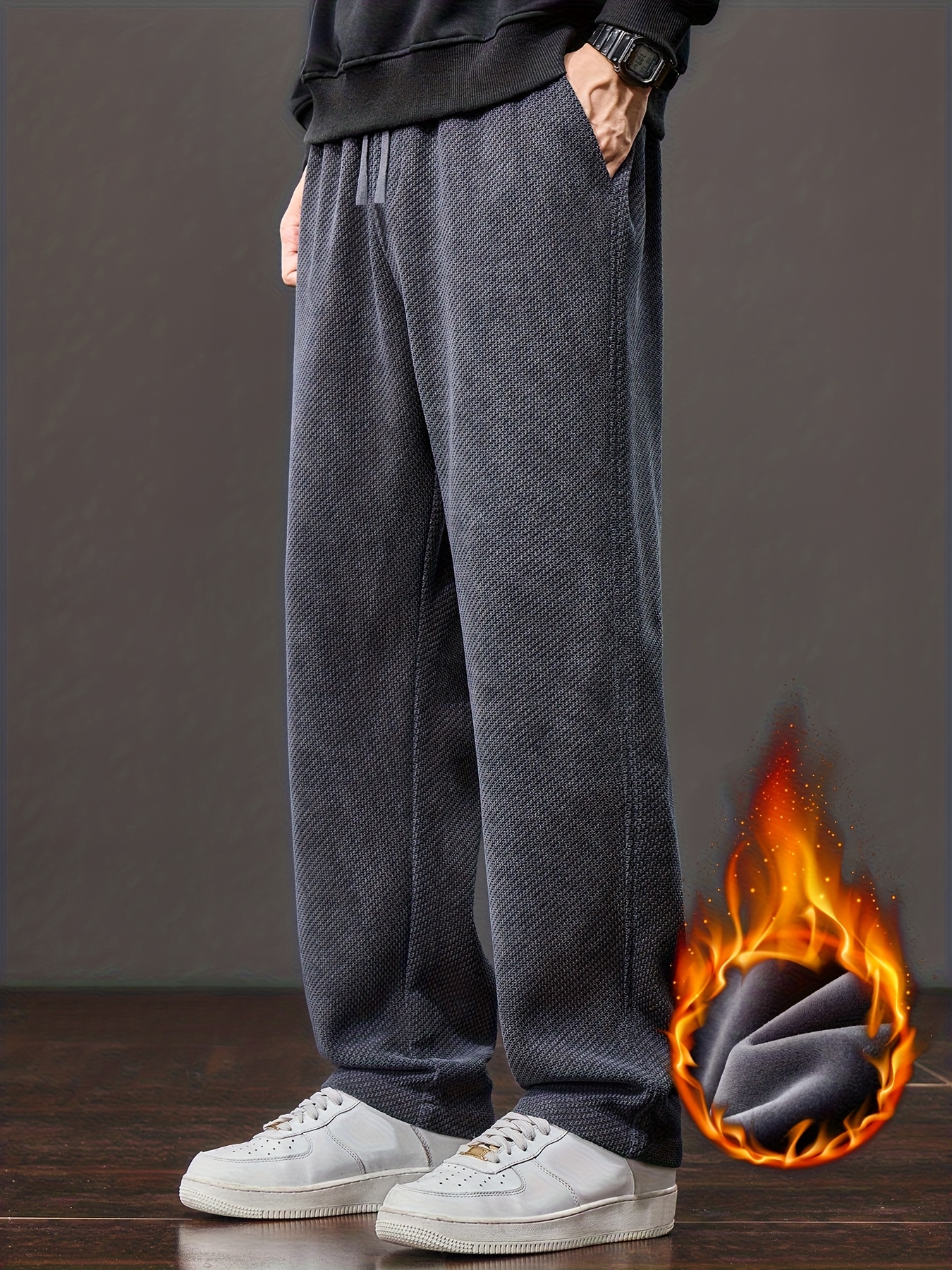 Men’s Winter Thermal Thickened Straight-Leg Pants with Pockets – Heavy-Duty Cold Weather Snow Pants, Machine Washable, Casual Athletic Wear for Skiing, Outdoor Activities & Daily Use (Mid-Rise)
