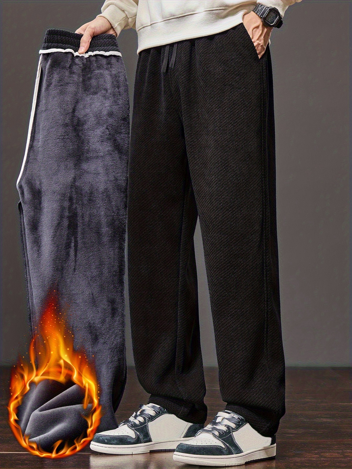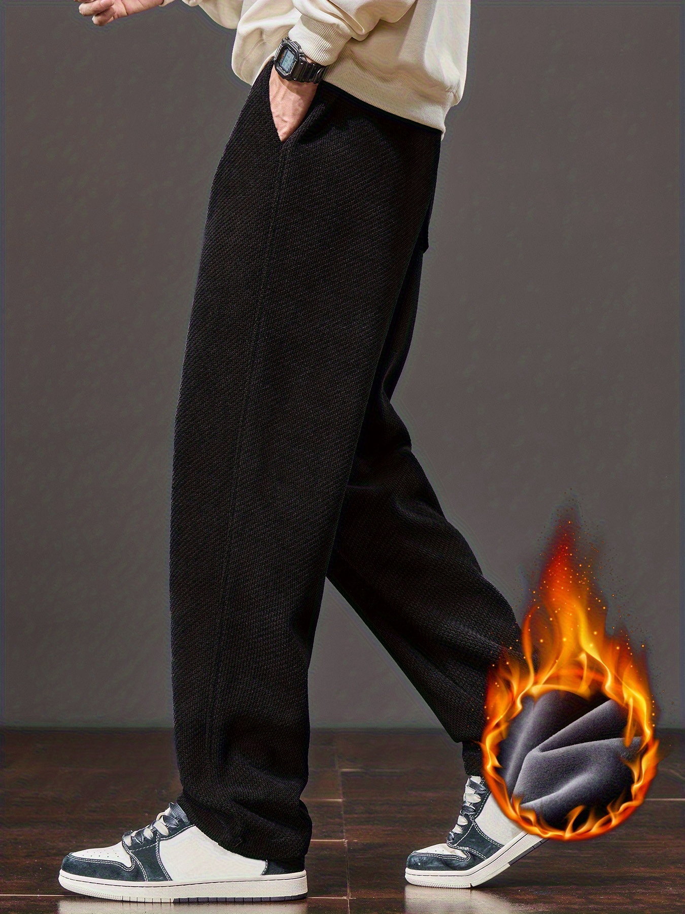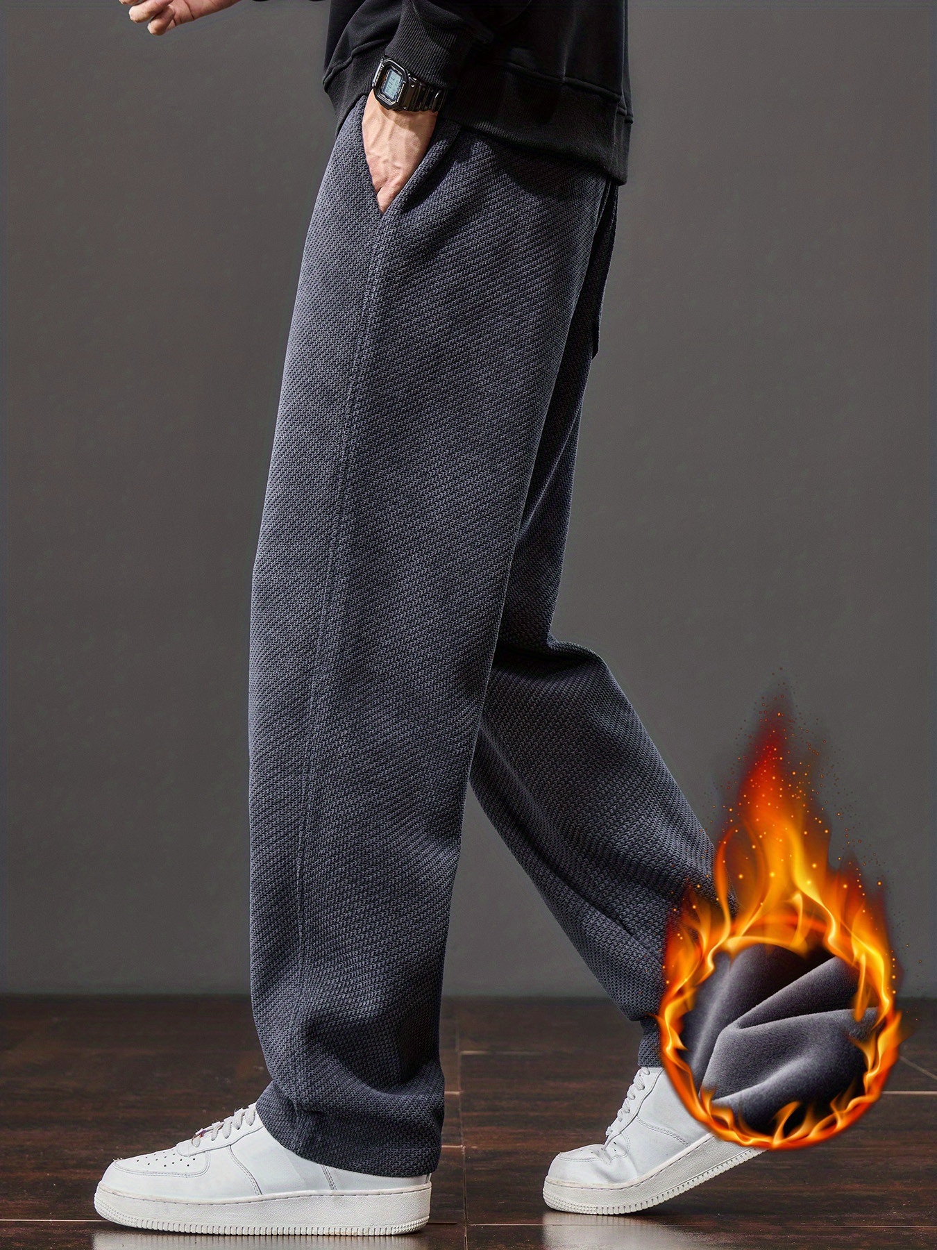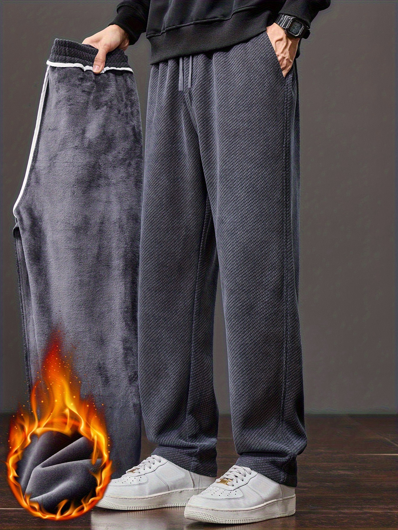 Men’s Winter Thermal Thickened Straight-Leg Pants with Pockets – Heavy-Duty Cold Weather Snow Pants, Machine Washable, Casual Athletic Wear for Skiing, Outdoor Activities & Daily Use (Mid-Rise)
