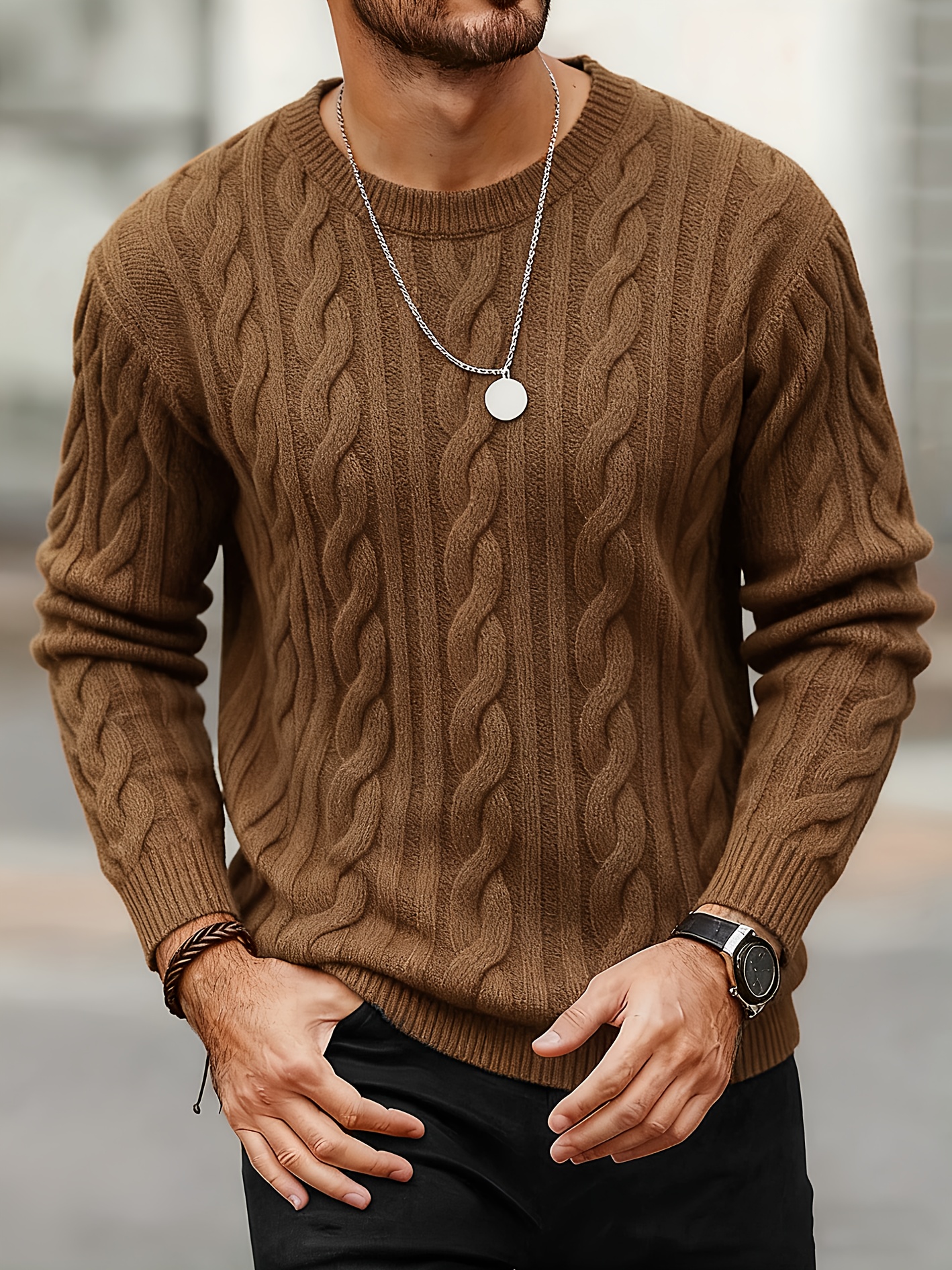 - New Autumn-Winter Men’s Casual Commuter Solid Color Crew Neck Knit Pullover