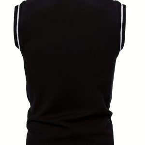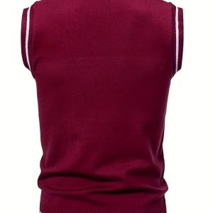 Men’s Classic Geometric Plaid Knit Sleeveless Vest – V-Neck Button Front, Asymmetrical Design, 100% Polyester Warmth for Fall Winter, Casual Layering Essential, Winter Warm Vest, Easycare Fabric