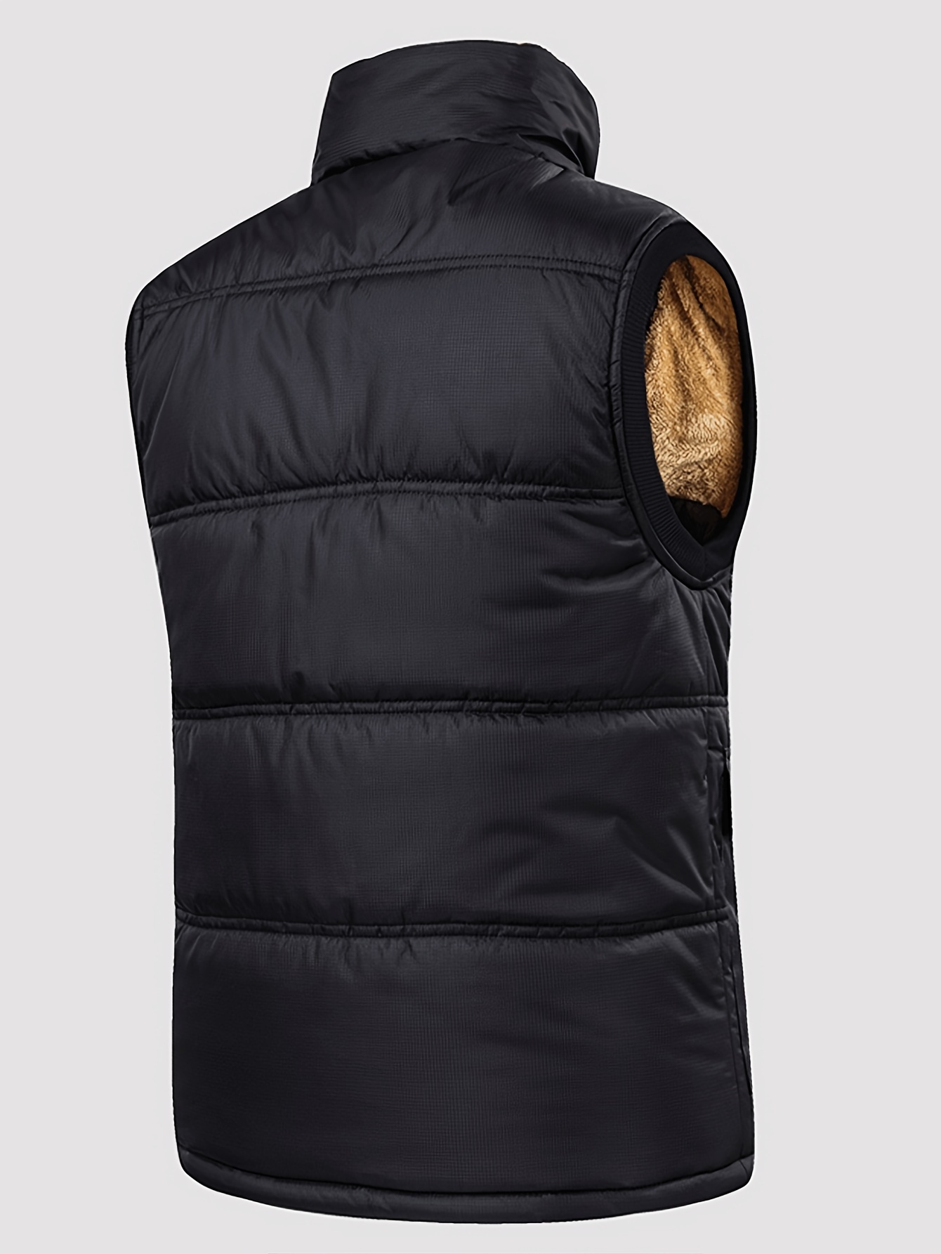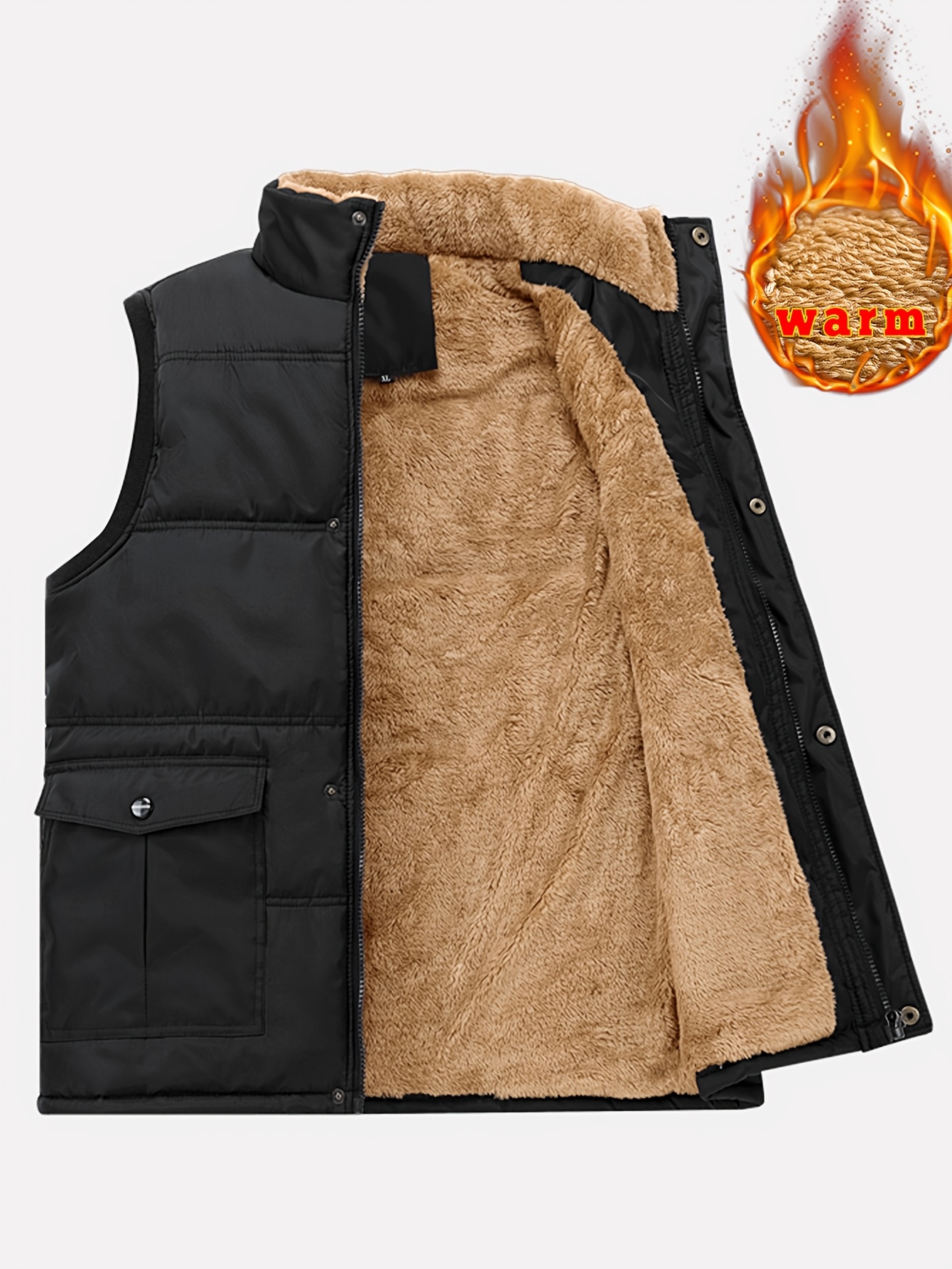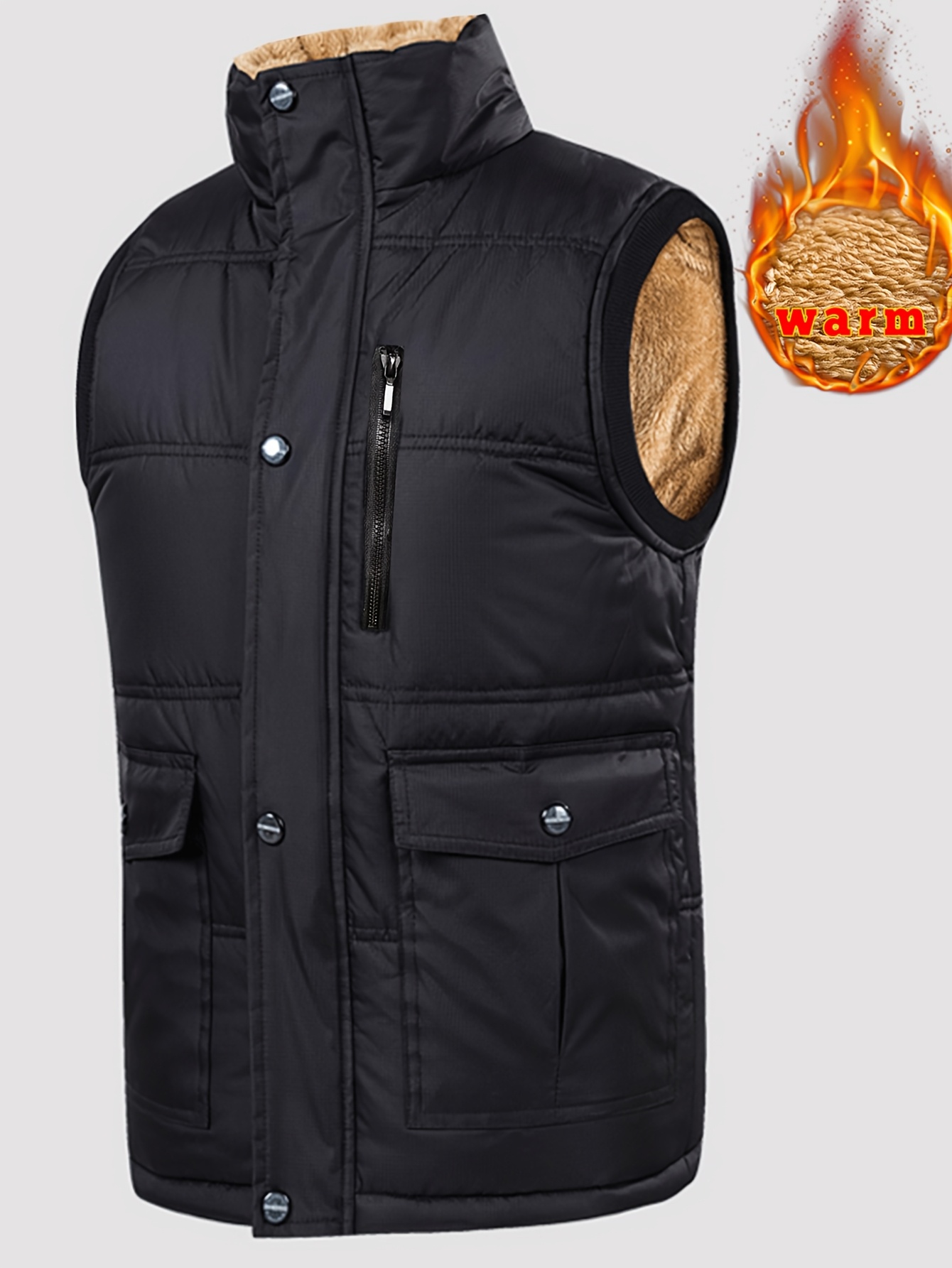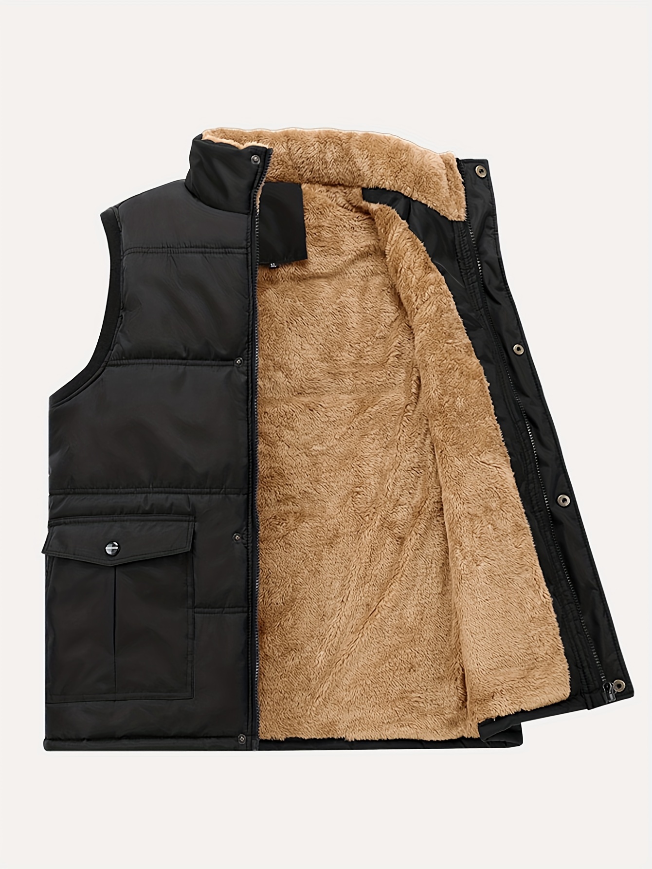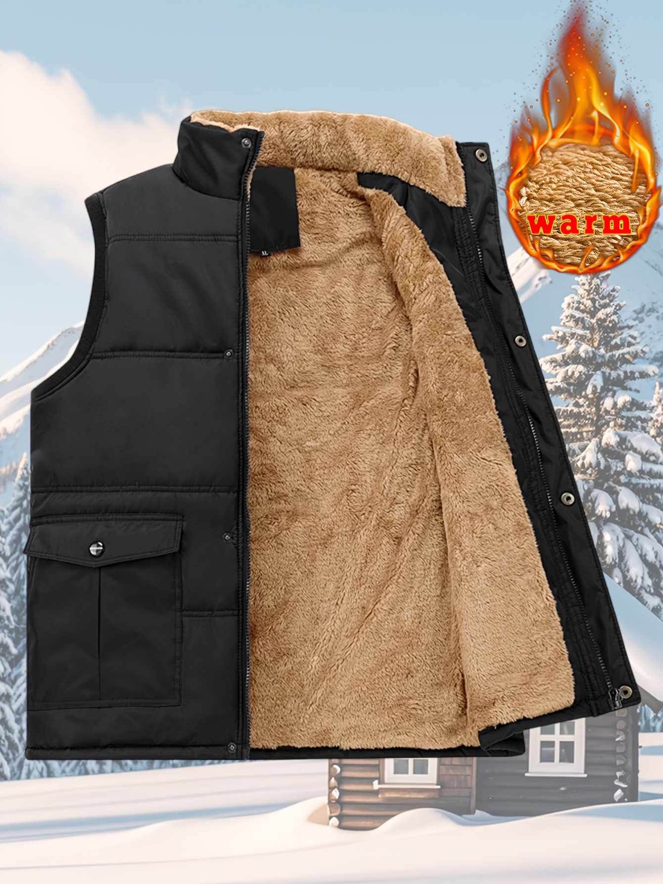 Warm & Breathable Men’s Vest – Sleek Black Fleece-Lined with Multi-Pocket Design for Fallu002FWinter