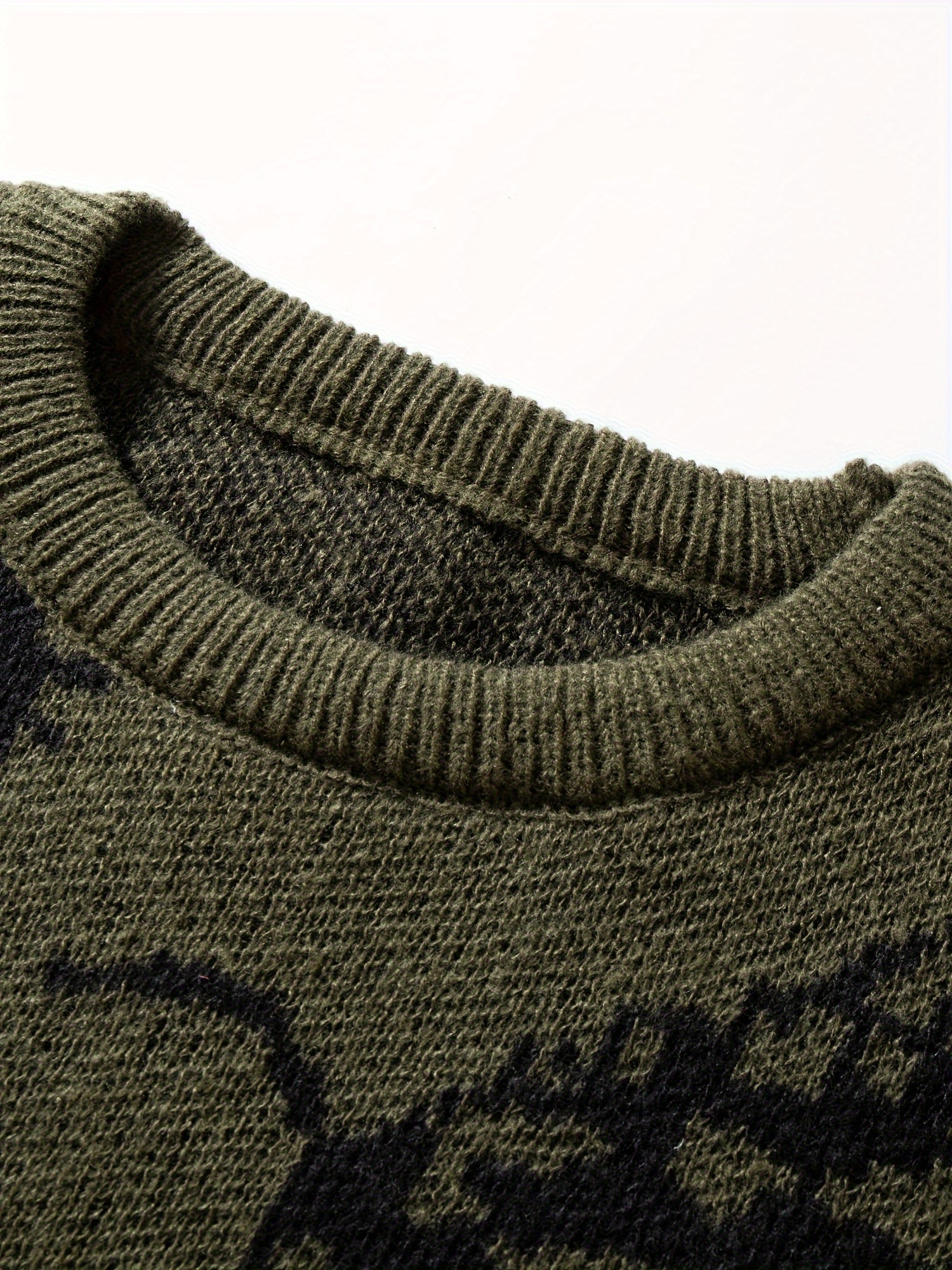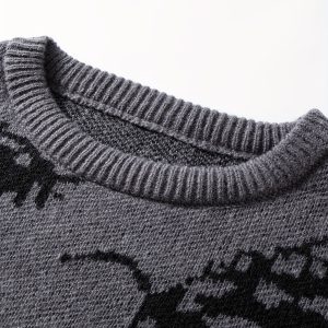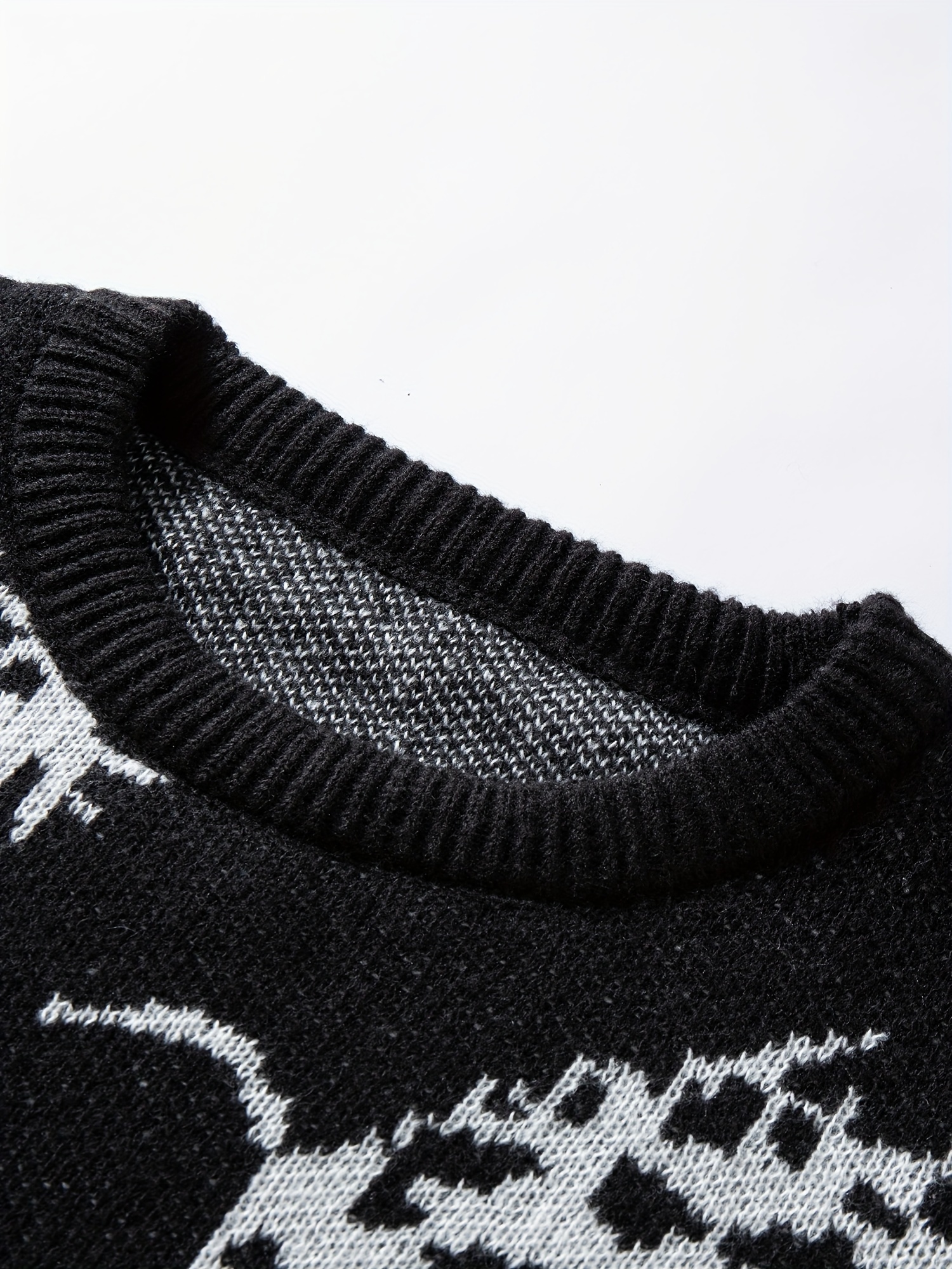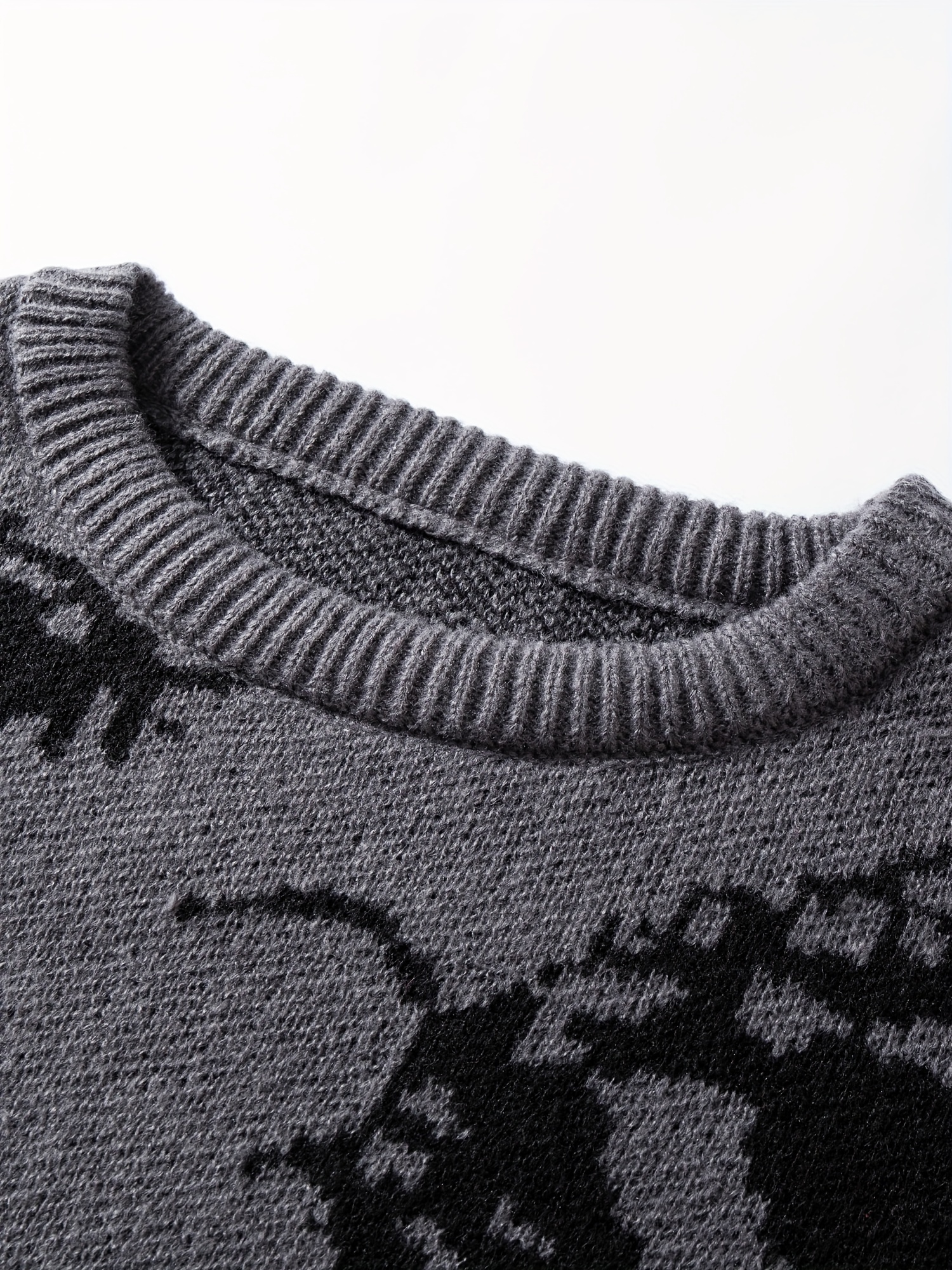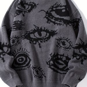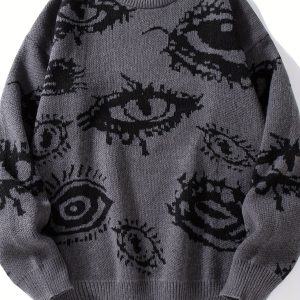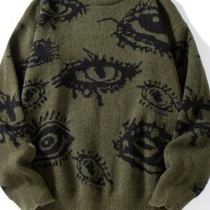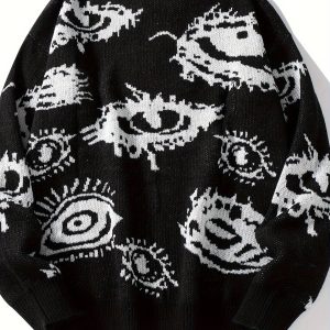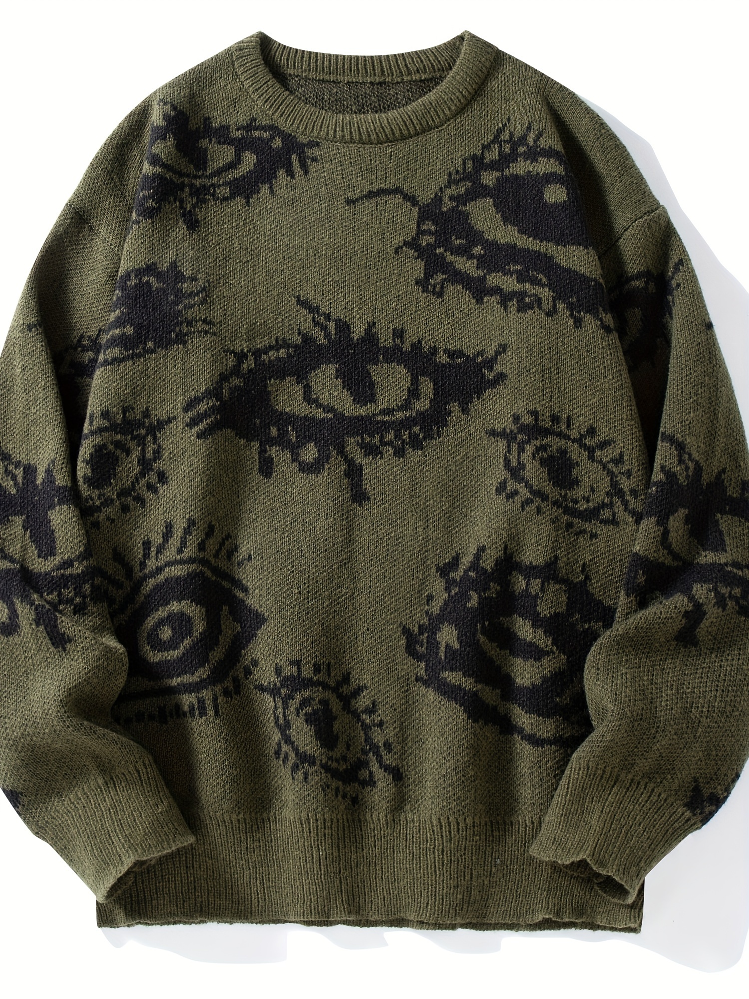 Winter Warm Knit Sweater – Loose Fit Stretchable Long Sleeve Round Neck Casual Pullover with Eye-Catching ‘eyes’ (eyebrowu002Feye Patch) Design, Solid Color Base for -casual & Weather, Non- (Hand Washu002FDry)