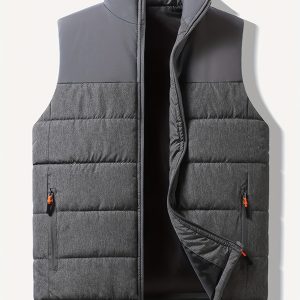 Men’s Color Blocking Sleeveless Vest – Trendy Comfy Warm Stand Collar Vest Outdoor Clothes For Autumn And Winter
