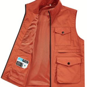New Men’s Outdoor Vest – Casual Workwear Multi-Pocket – Fishing Sleeveless Zipper Stand Collar Jacket