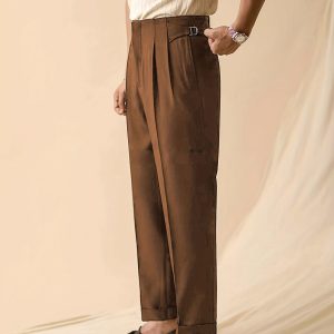 Men’s Light Business Suit Pants – Naples Button-Front Wide-Leg Trousers, Solid Color Heavy-Duty Non-Stretch Fabric, Machine Washable Fallu002FWinter Dress Pants for Office & Formal Wear, Classic Italian Style (Compatible with Blazzeru002FVest)
